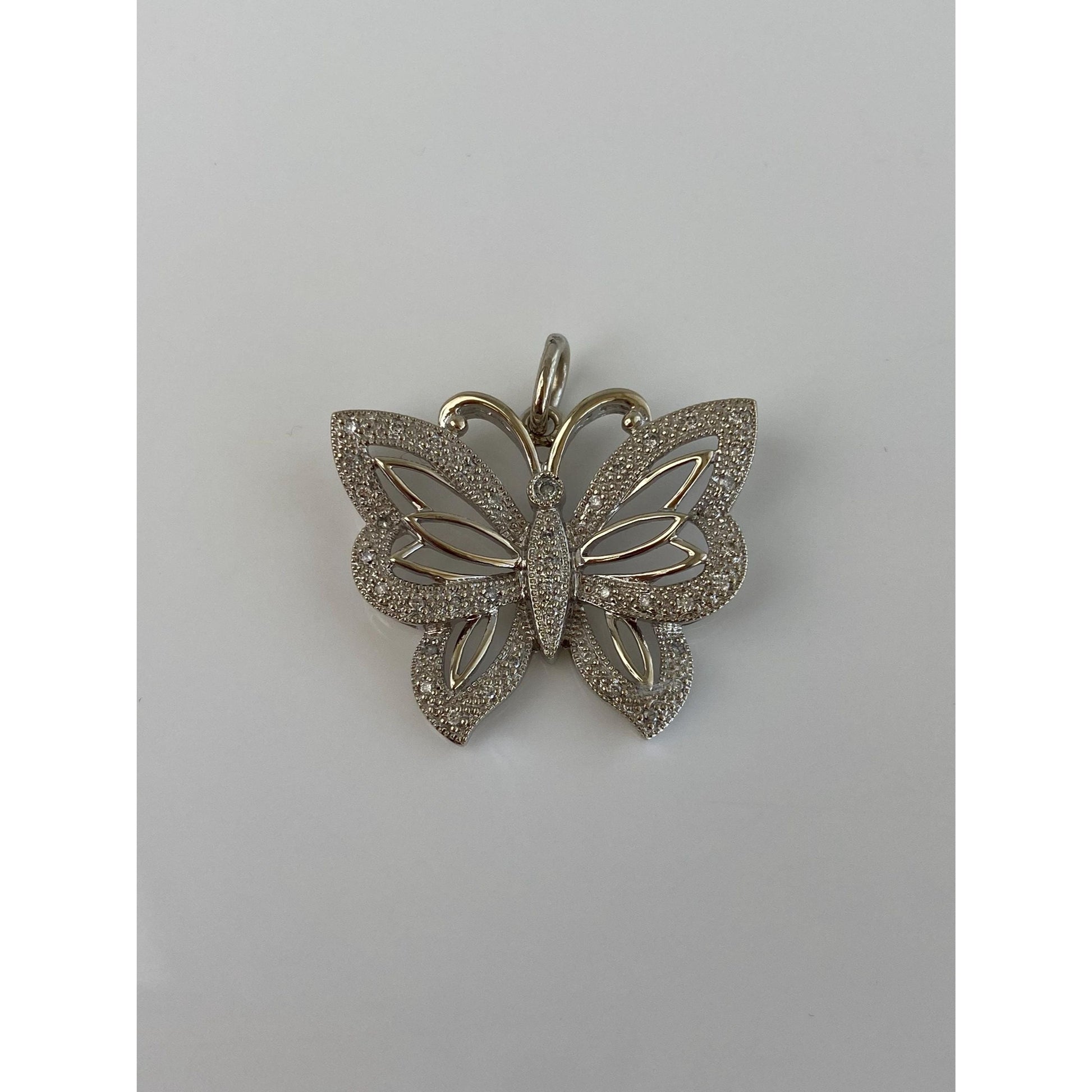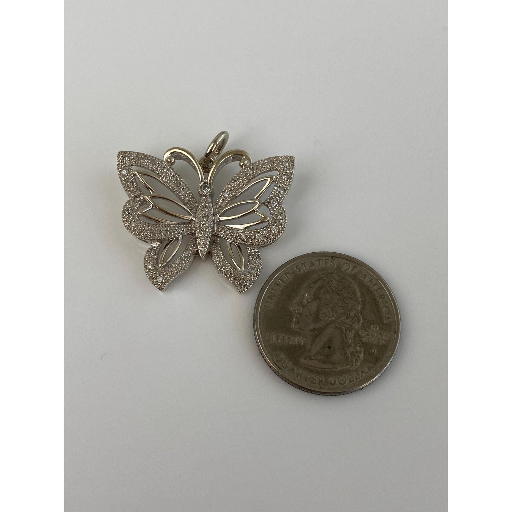 Vintage Solid 14k White Gold Diamond Butterfly Charm