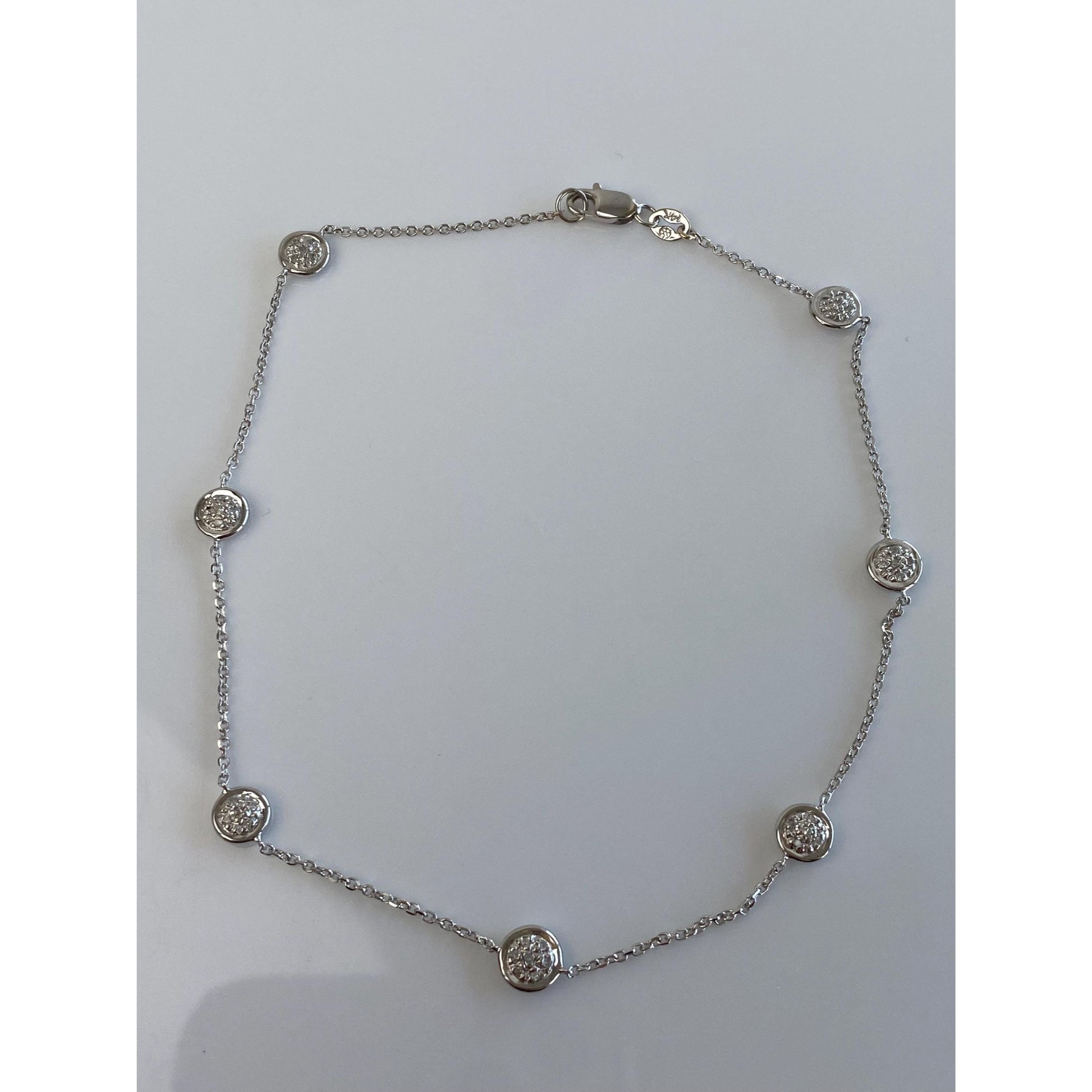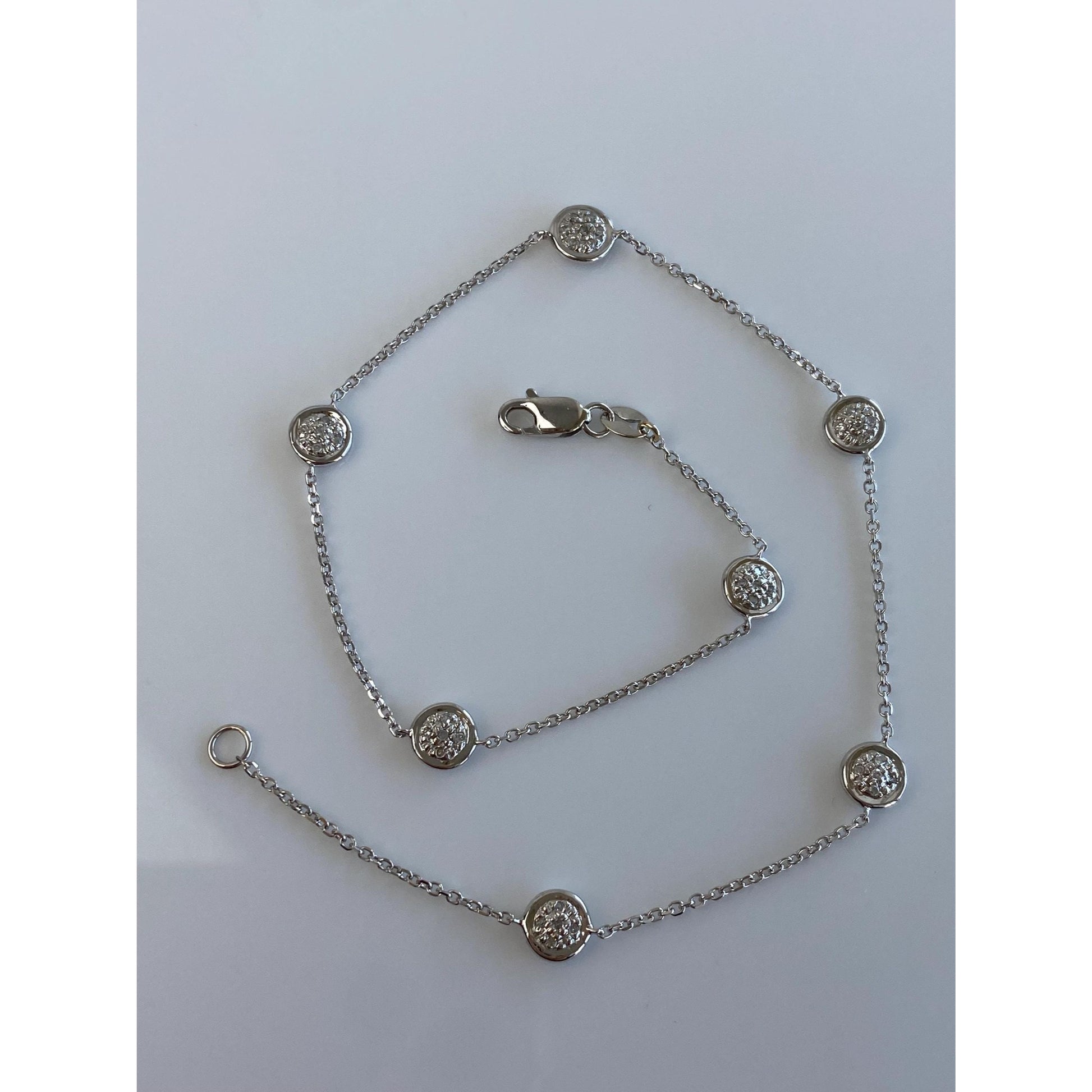 Vintage Solid 14k White Gold Diamond Cable Link Bracelet Anklet - 9.5 inches