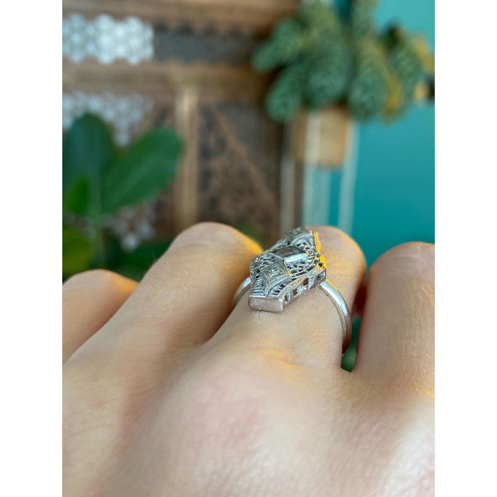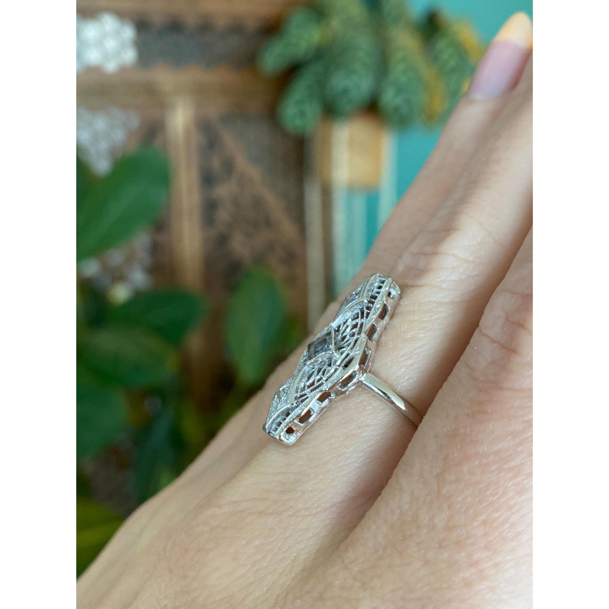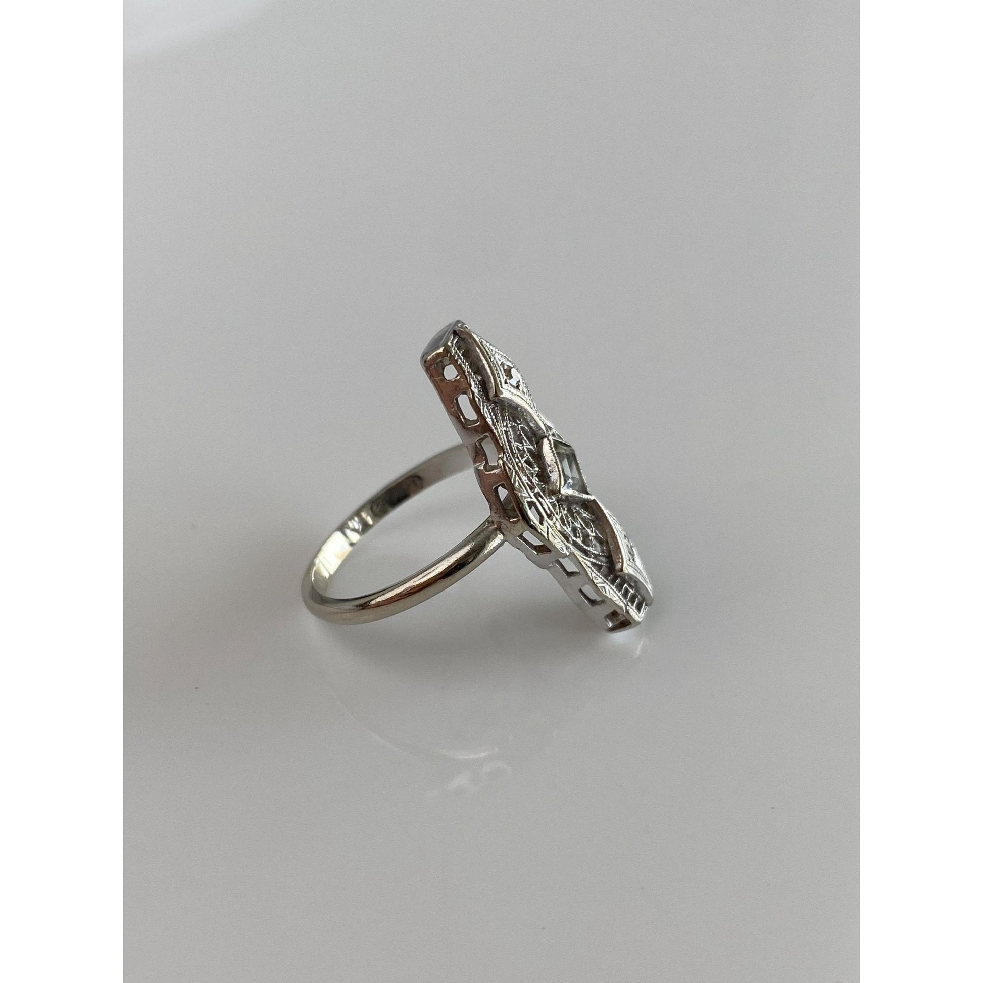 Vintage Solid 14k White Gold Diamond Clear Spinel Art Deco Ring - Size 5.25