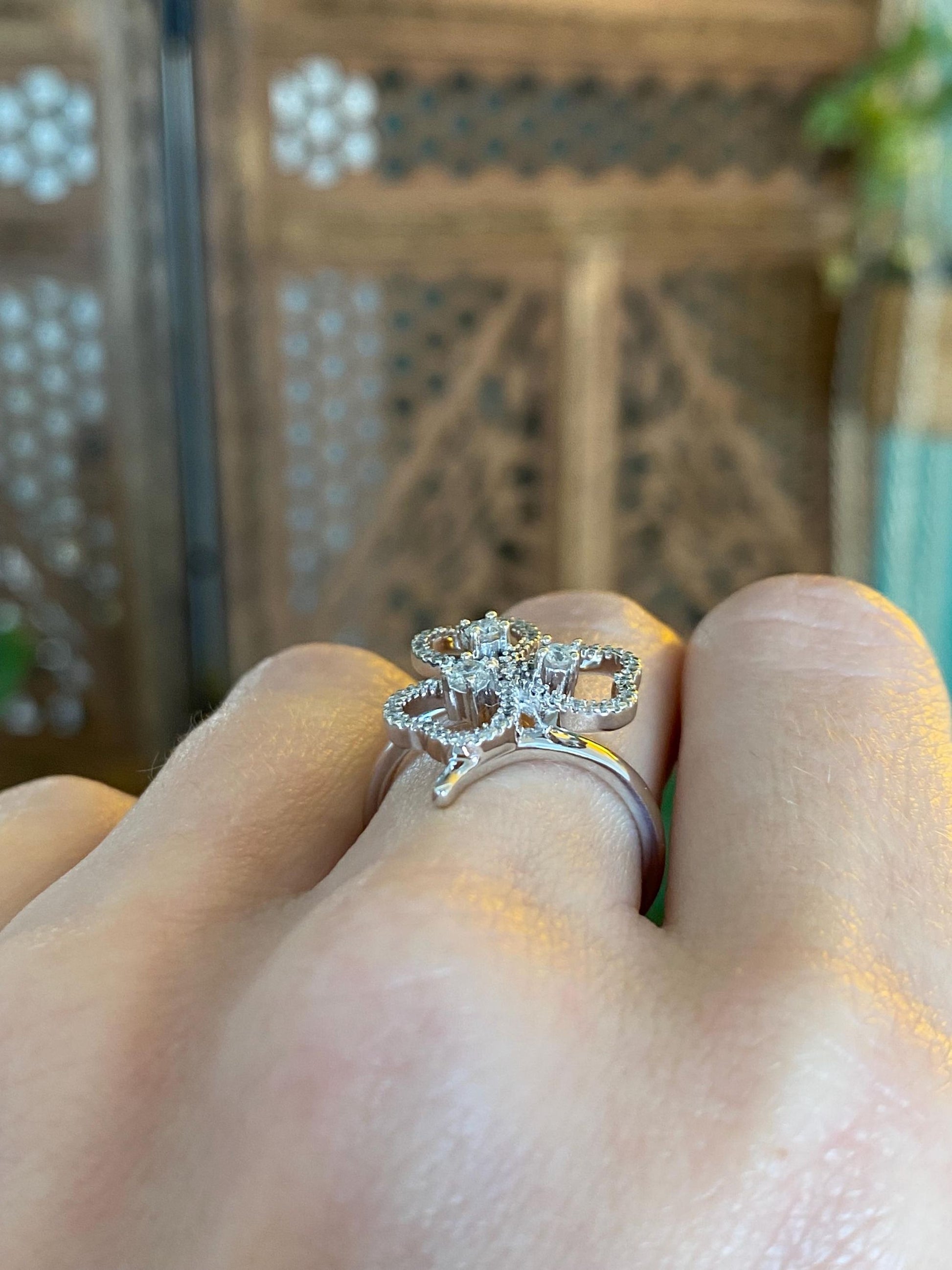 Vintage Solid 14k White Gold Diamond Clover Ring - Size 6.75