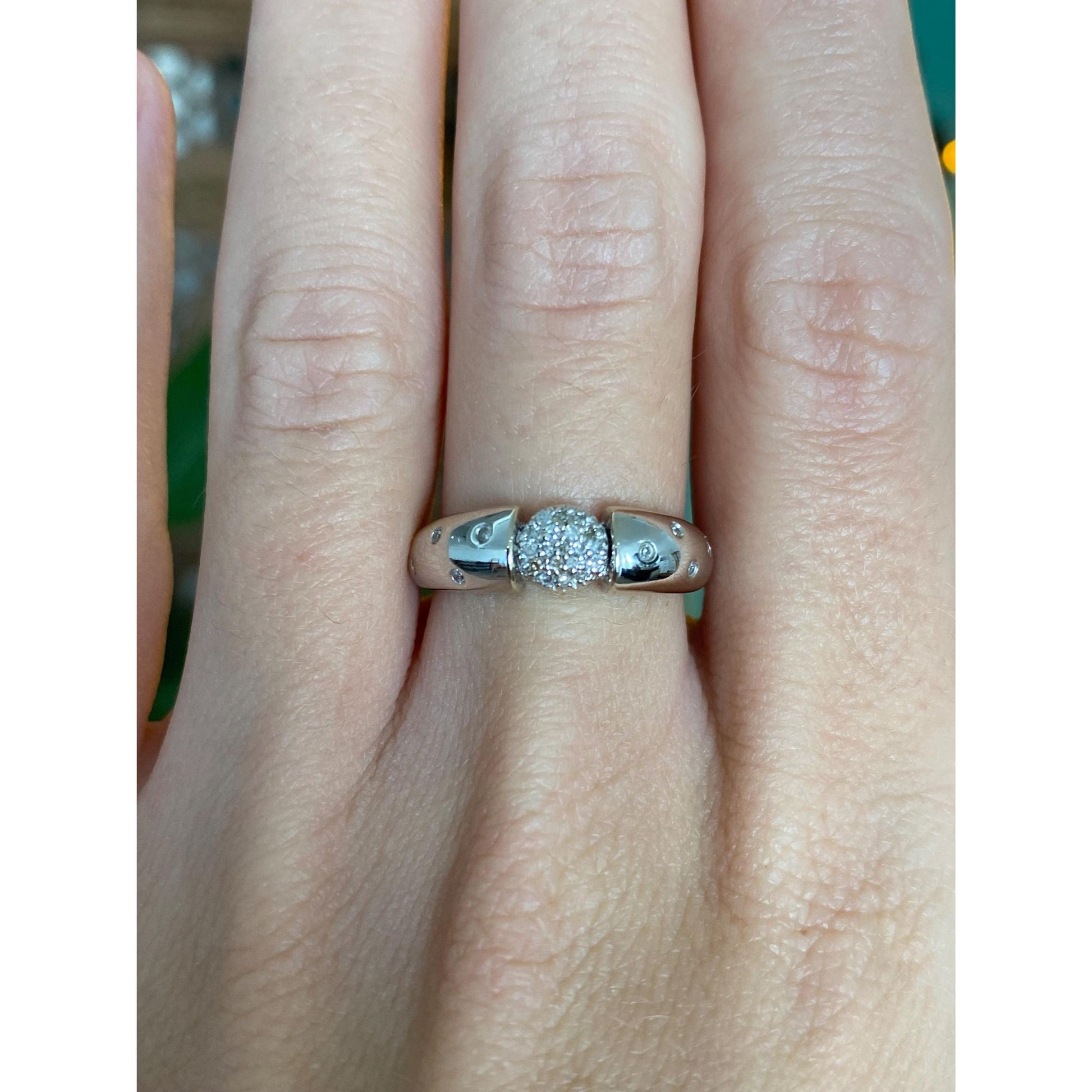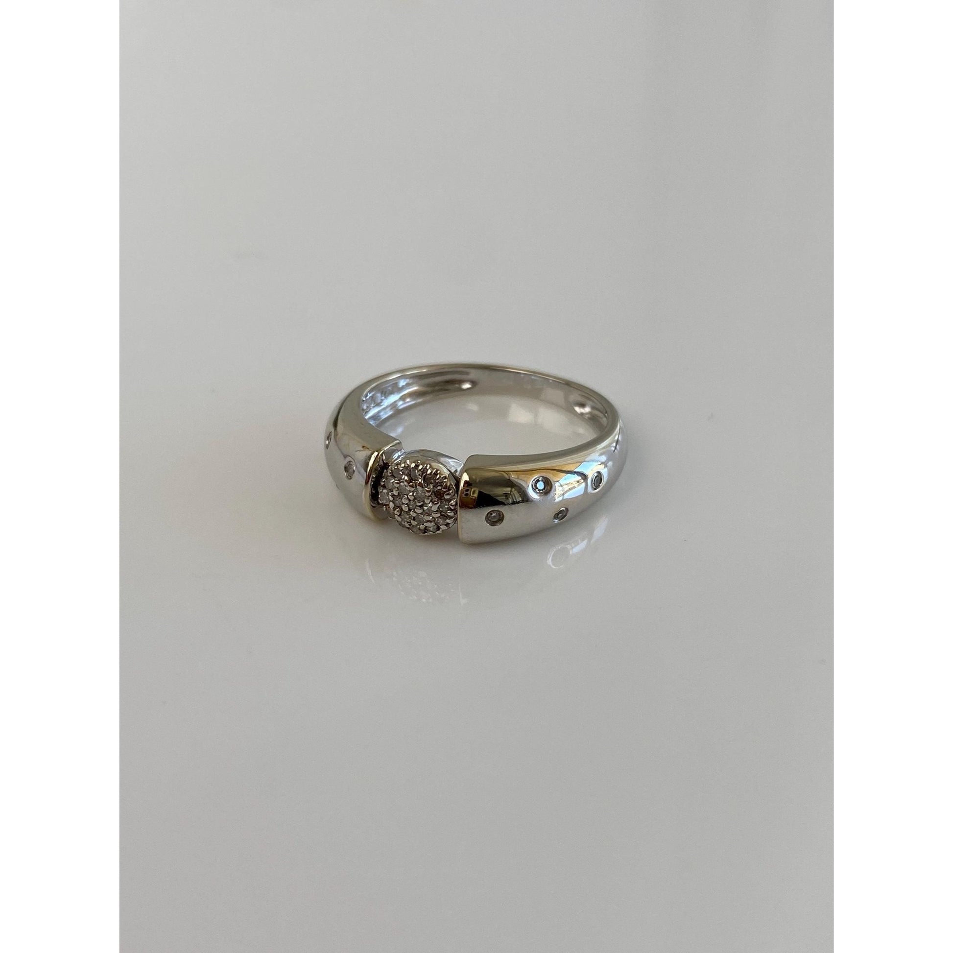 Vintage Solid 14k White Gold Diamond Cluster Dotted Ring - Size 6.75
