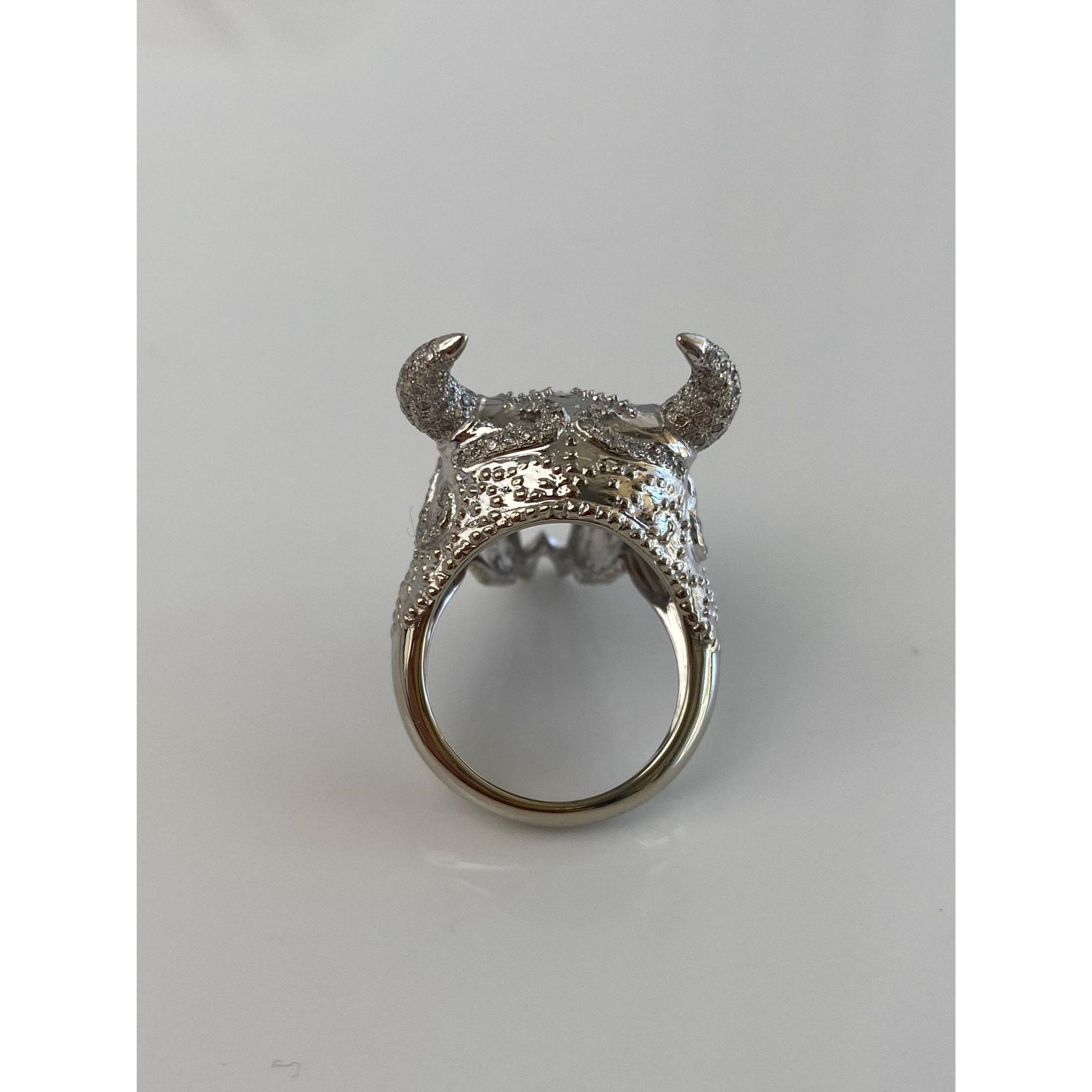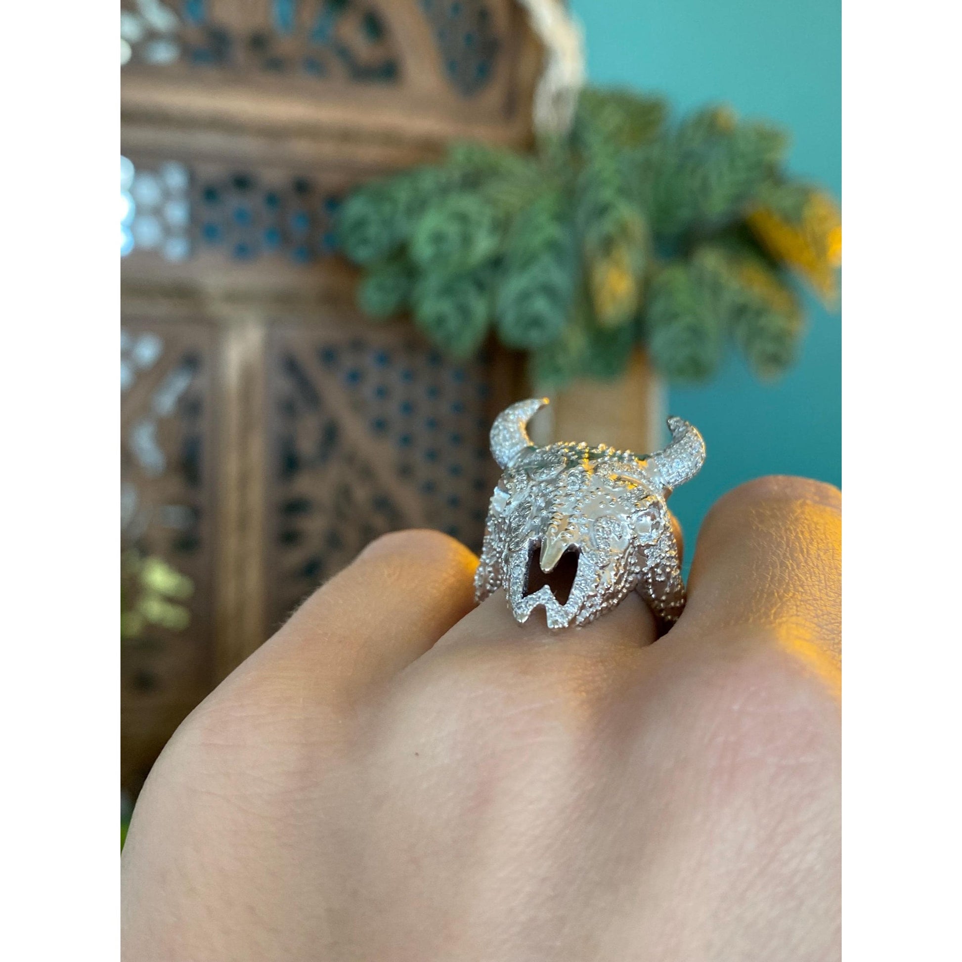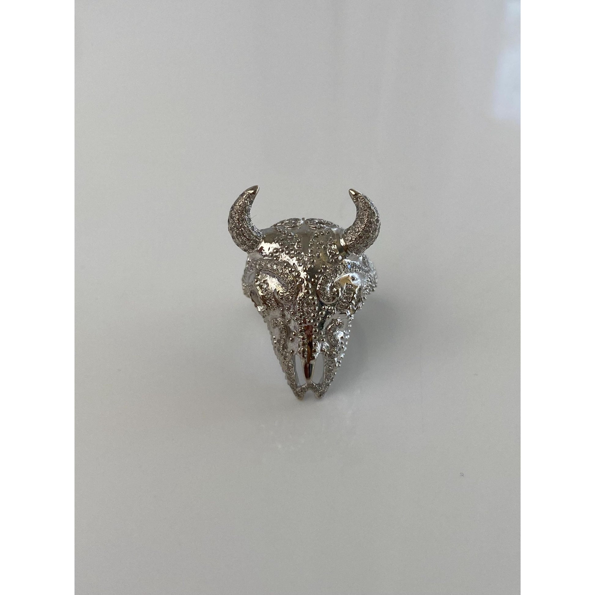 Vintage Solid 14k White Gold Diamond Cow Skull Ring - Size 5.25