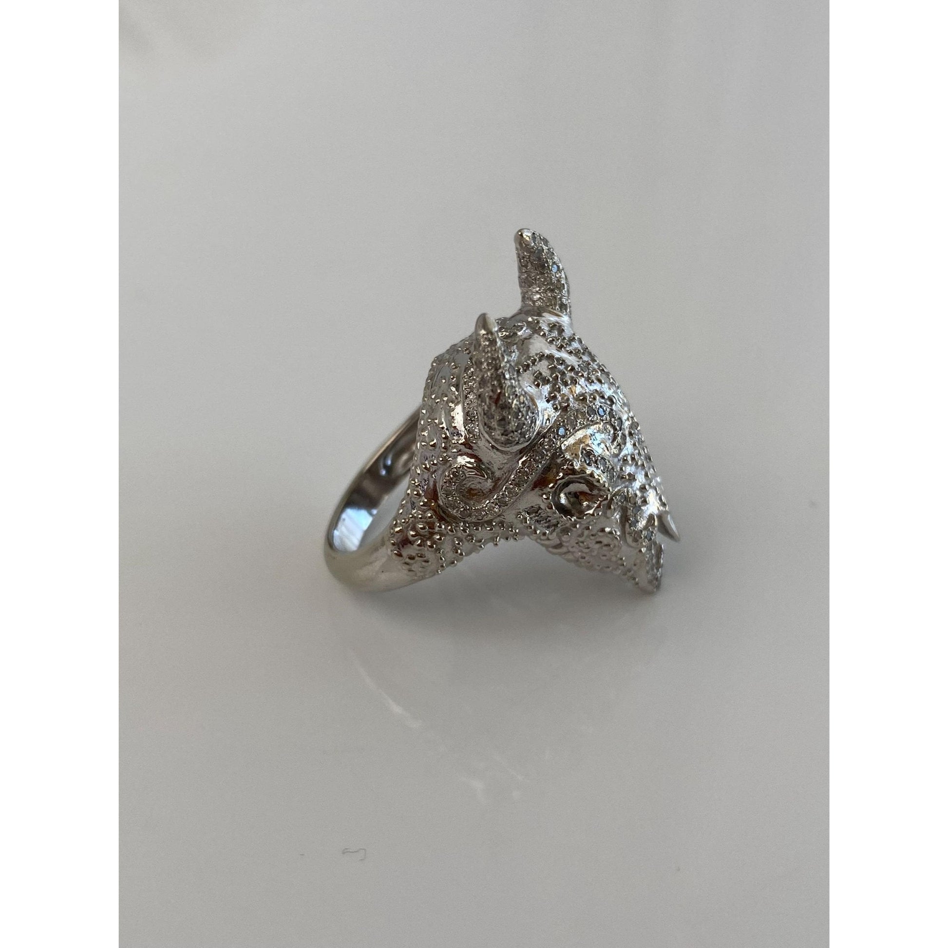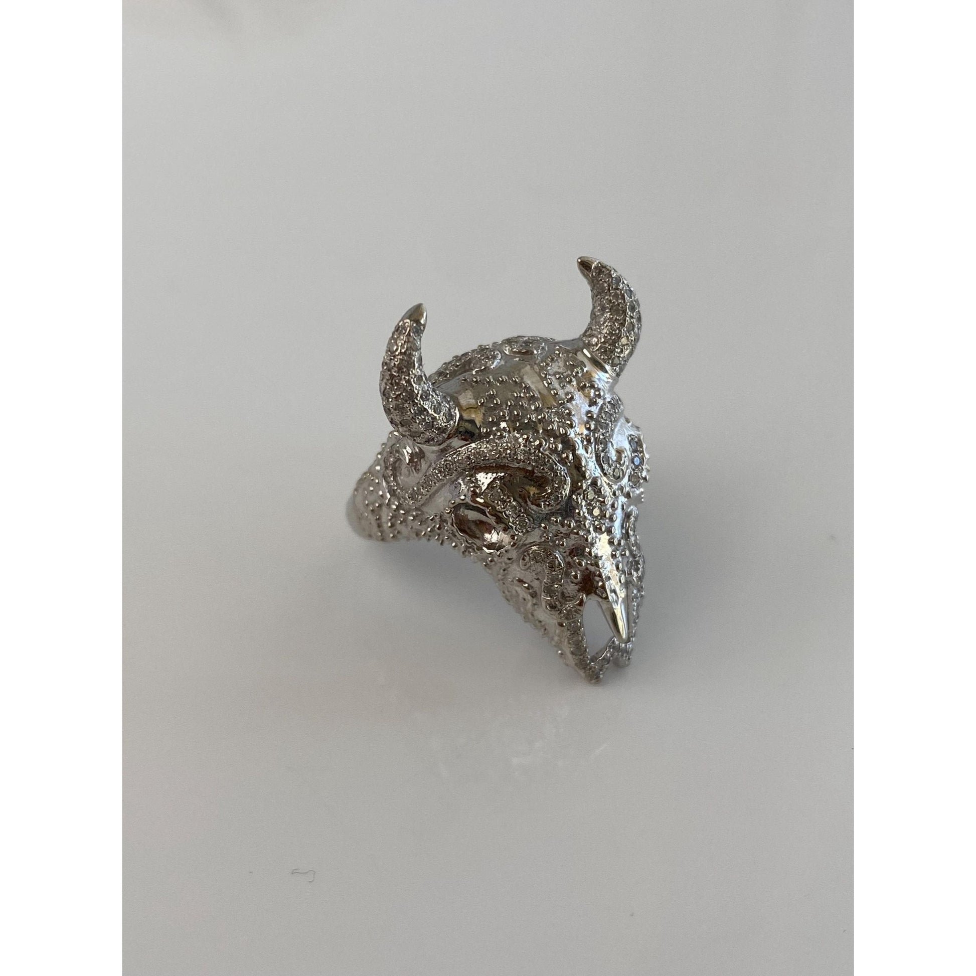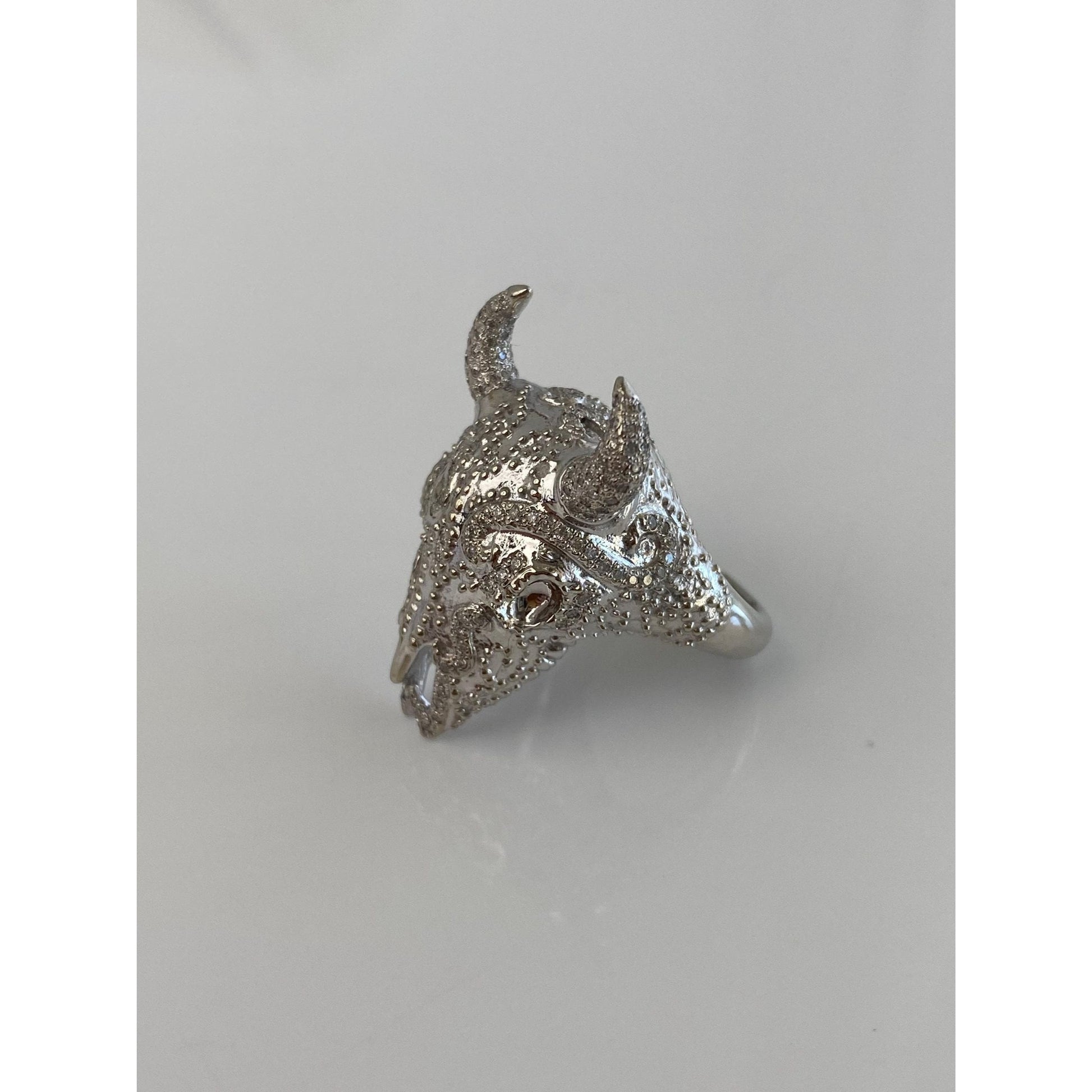 Vintage Solid 14k White Gold Diamond Cow Skull Ring - Size 5.25