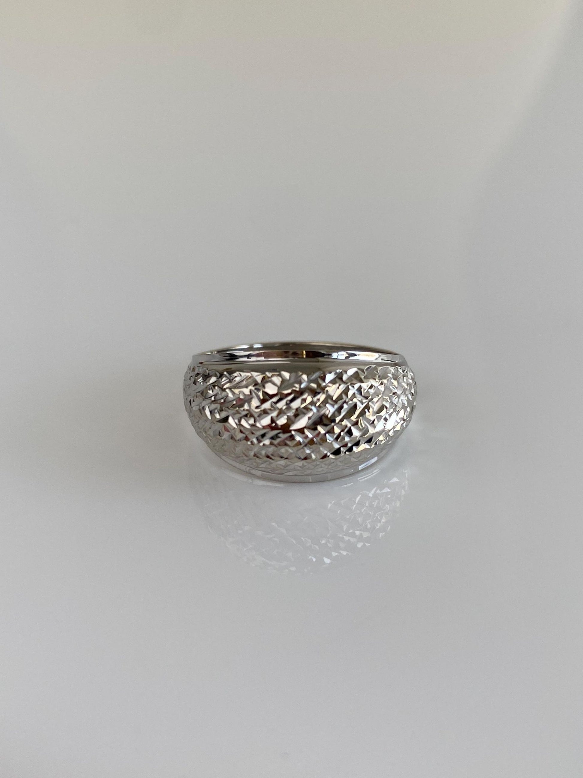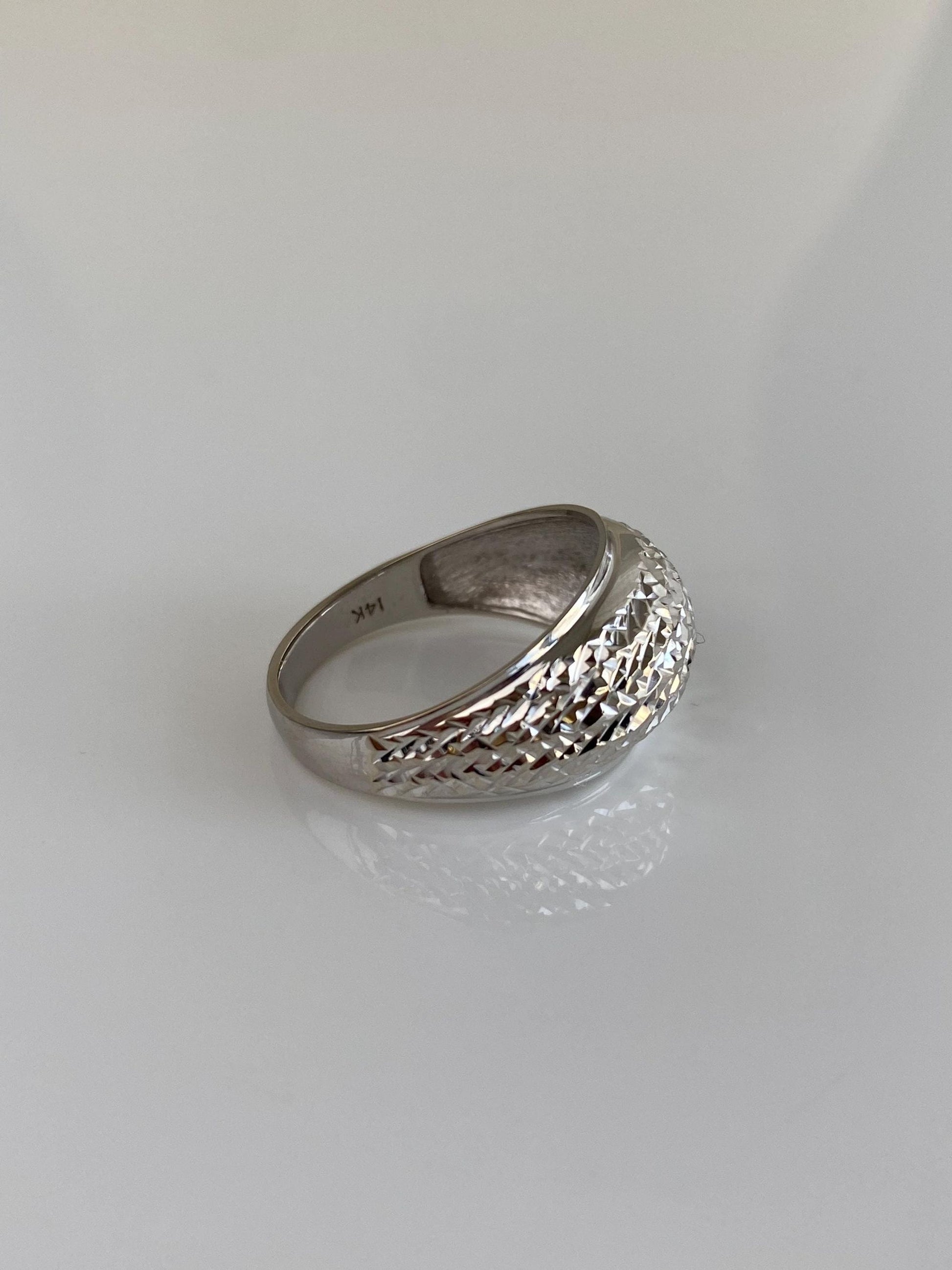 Vintage Solid 14k White Gold Diamond Cut Domed Ring Band - Size 7.75