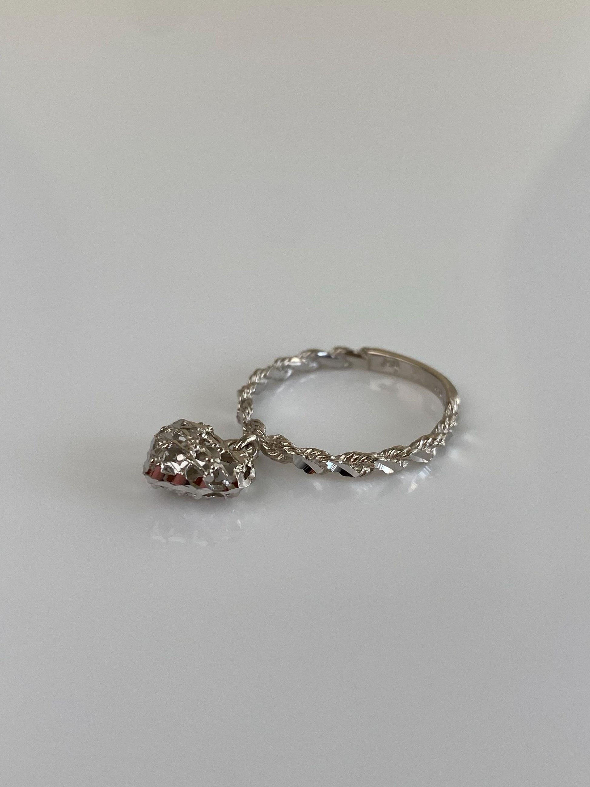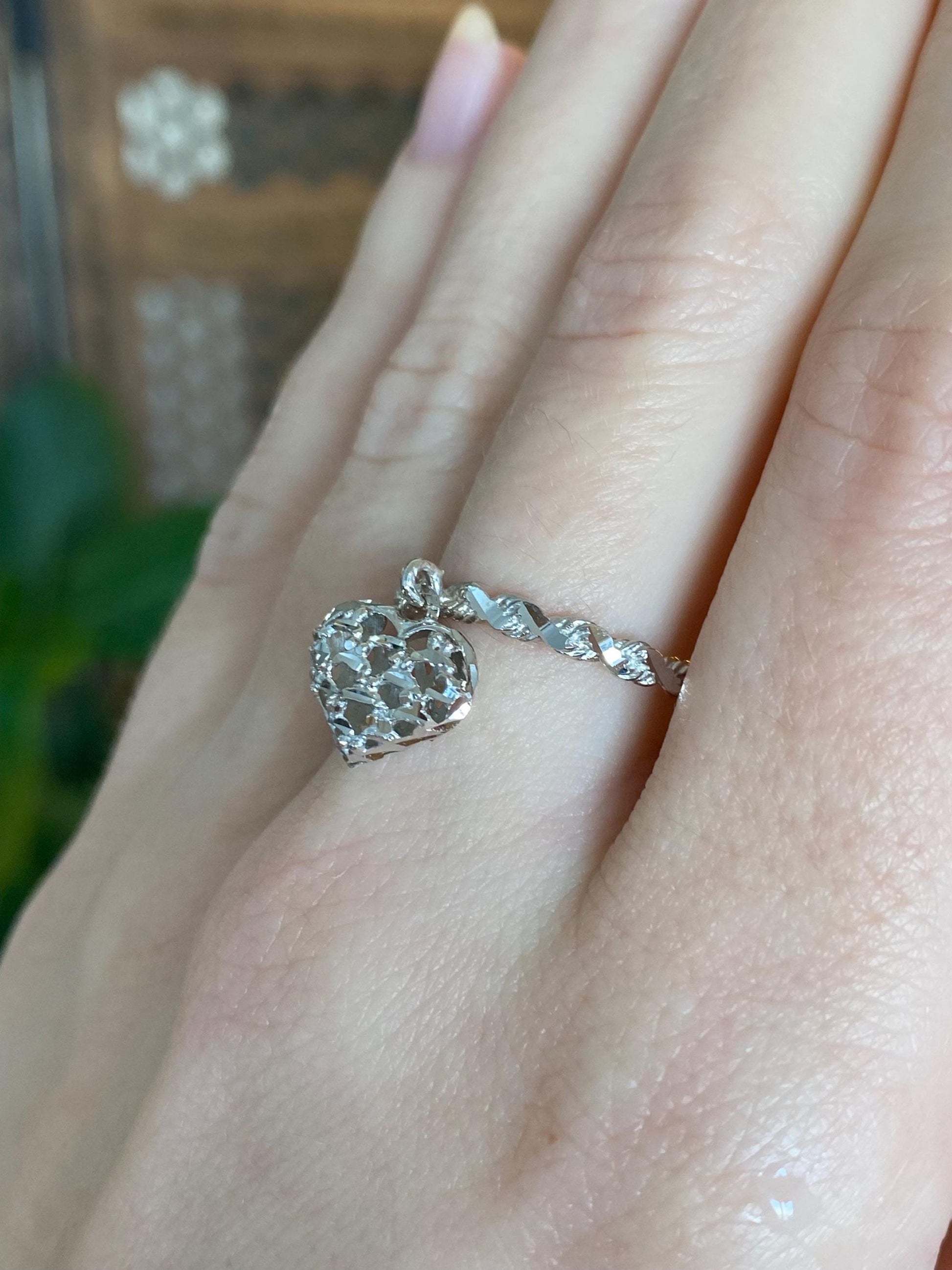 Vintage Solid 14k White Gold Diamond Cut Heart Charm Ring - Size 7.5