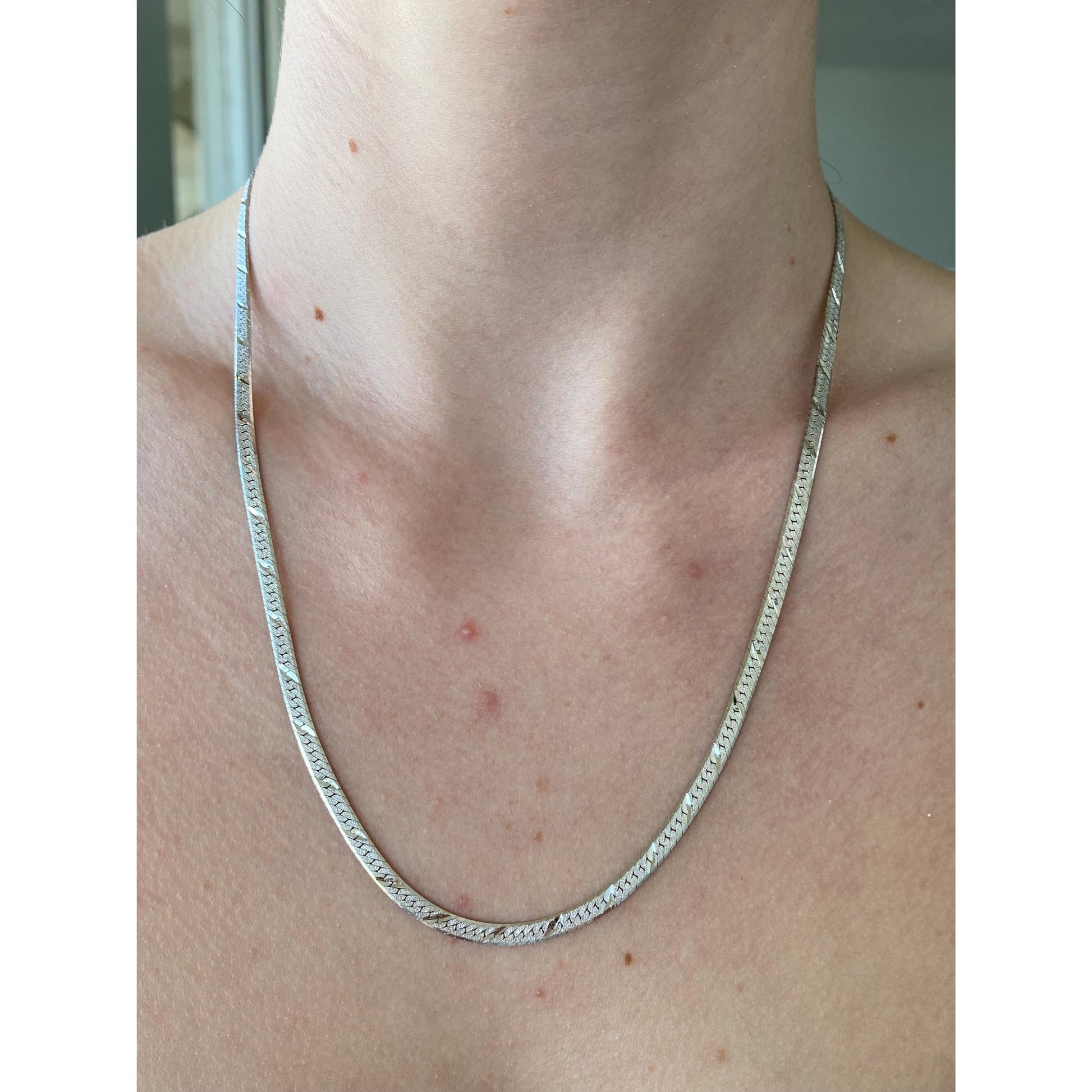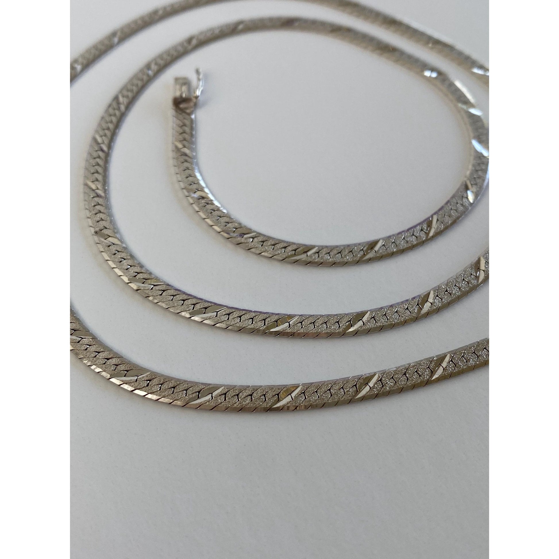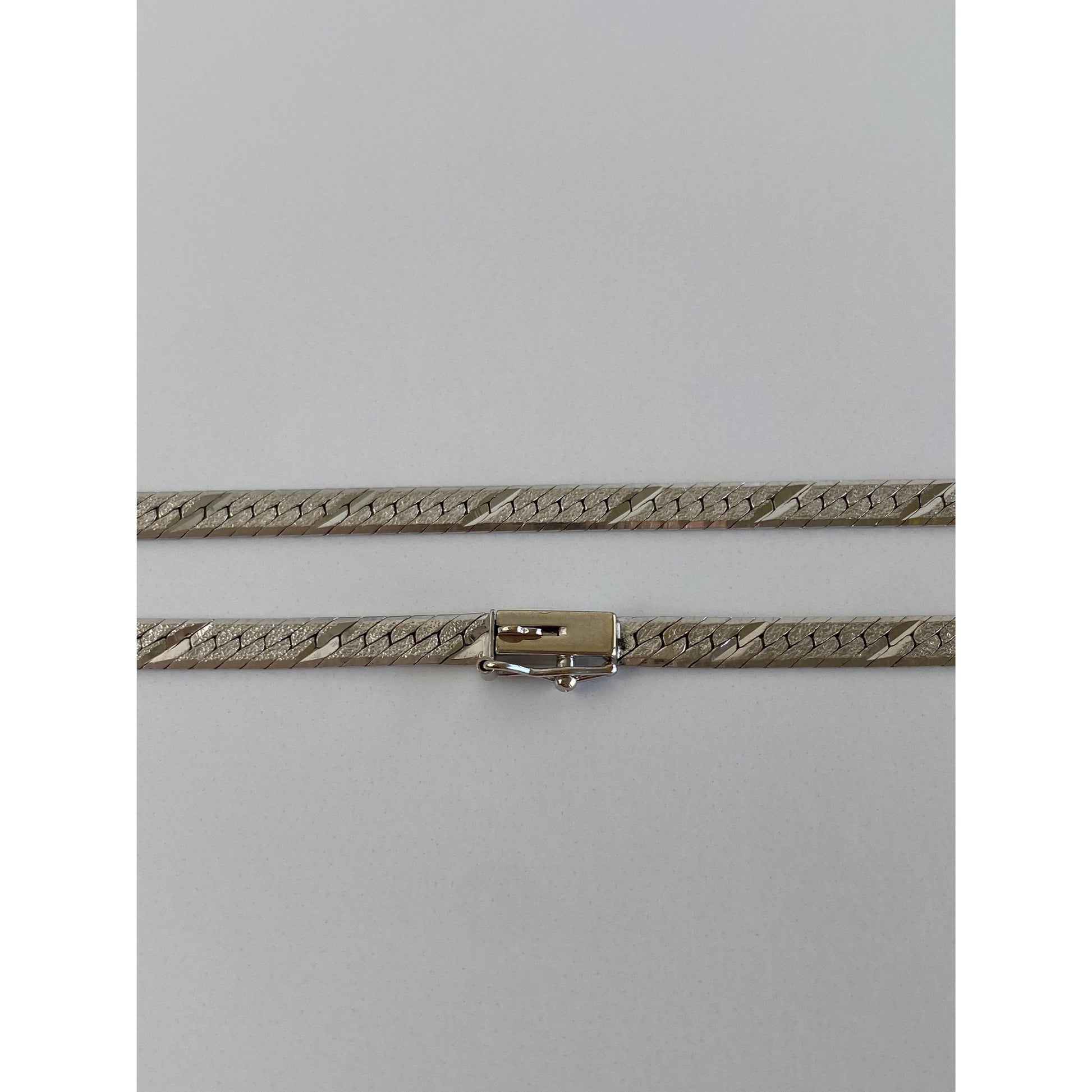 Vintage Solid 14k White Gold Diamond Cut Herringbone Chain Necklace - 20 inches