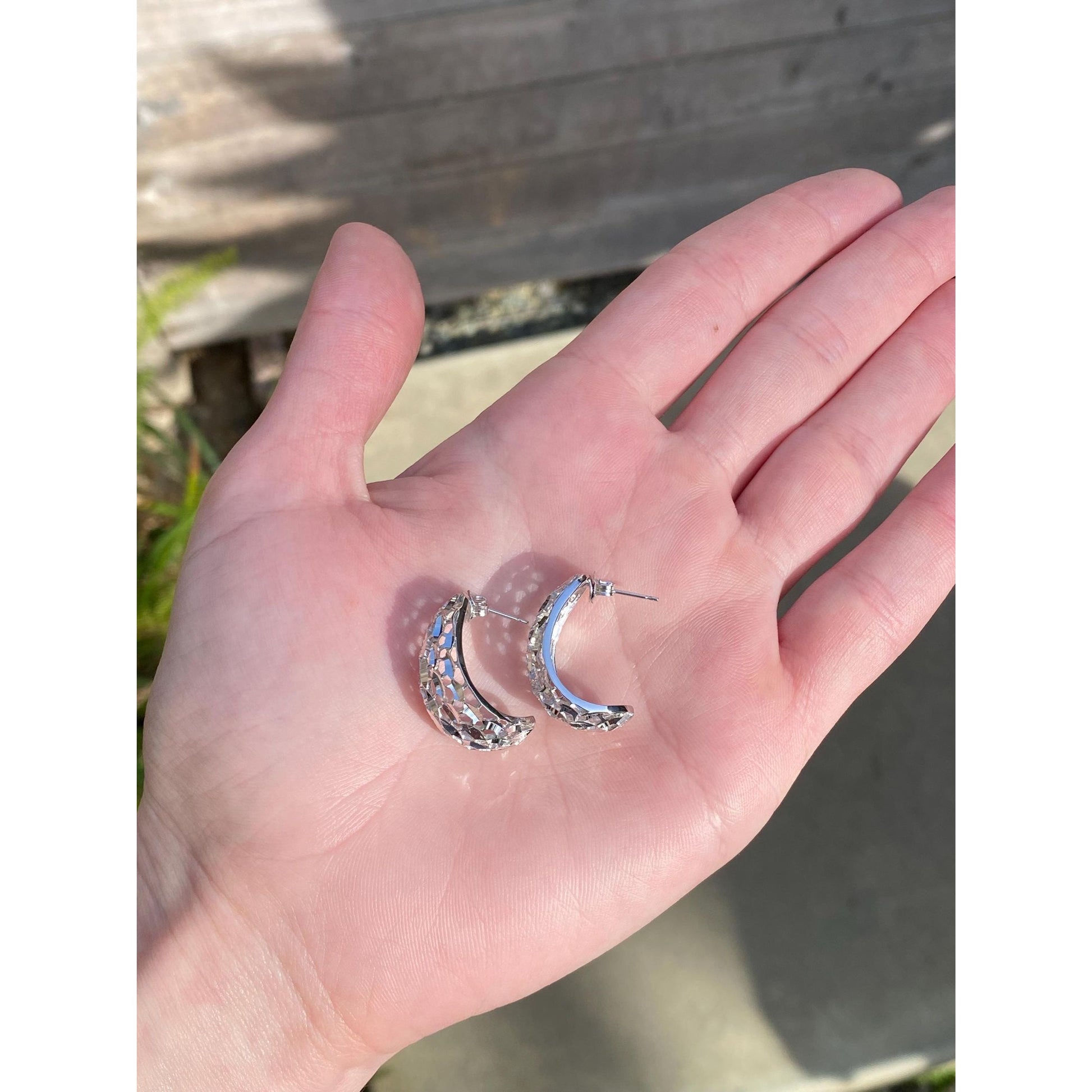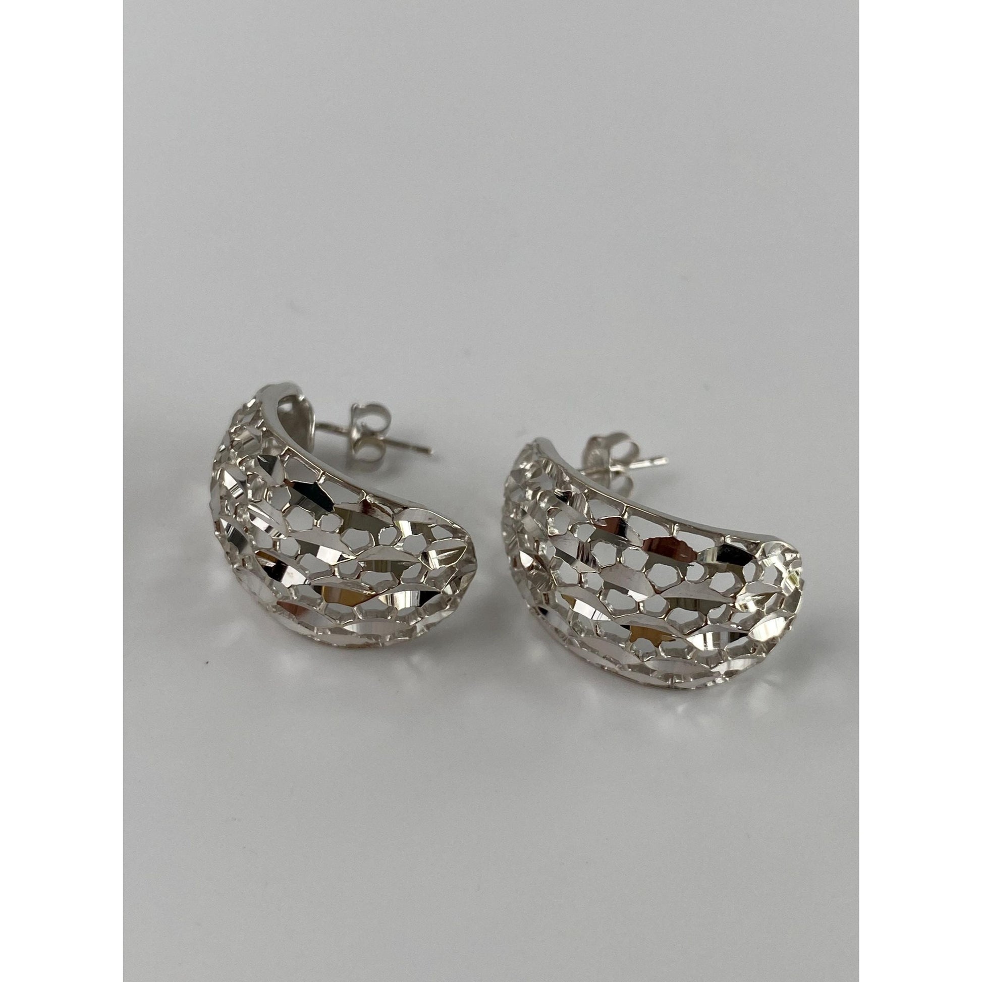 Vintage Solid 14k White Gold Diamond Cut Open Work Drop Earrings