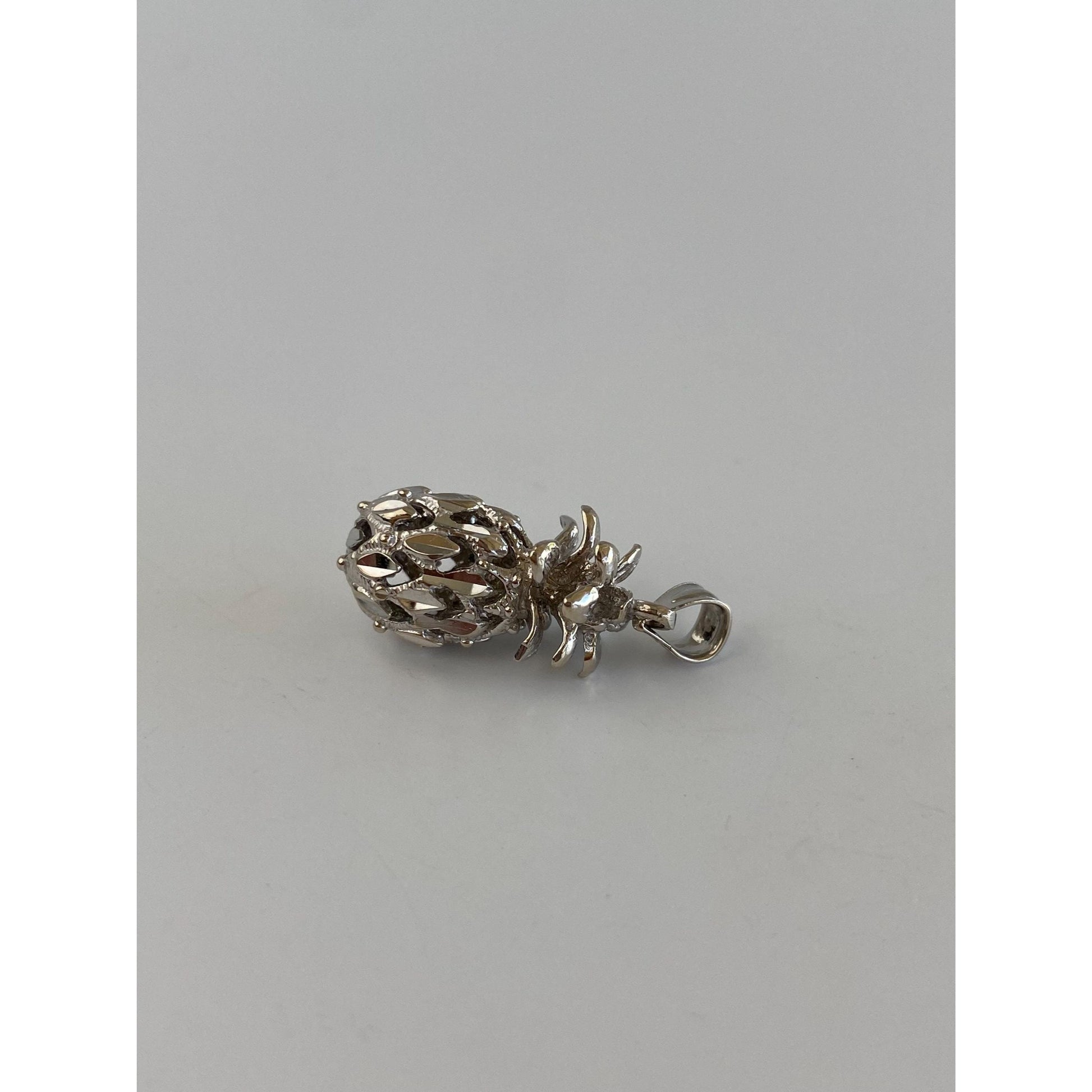 Vintage Solid 14k White Gold Diamond Cut Pineapple Charm