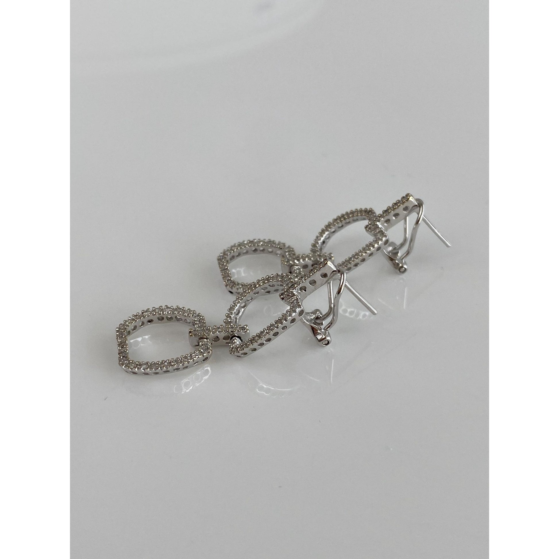 Vintage Solid 14k White Gold Diamond Dangle Stud Earrings