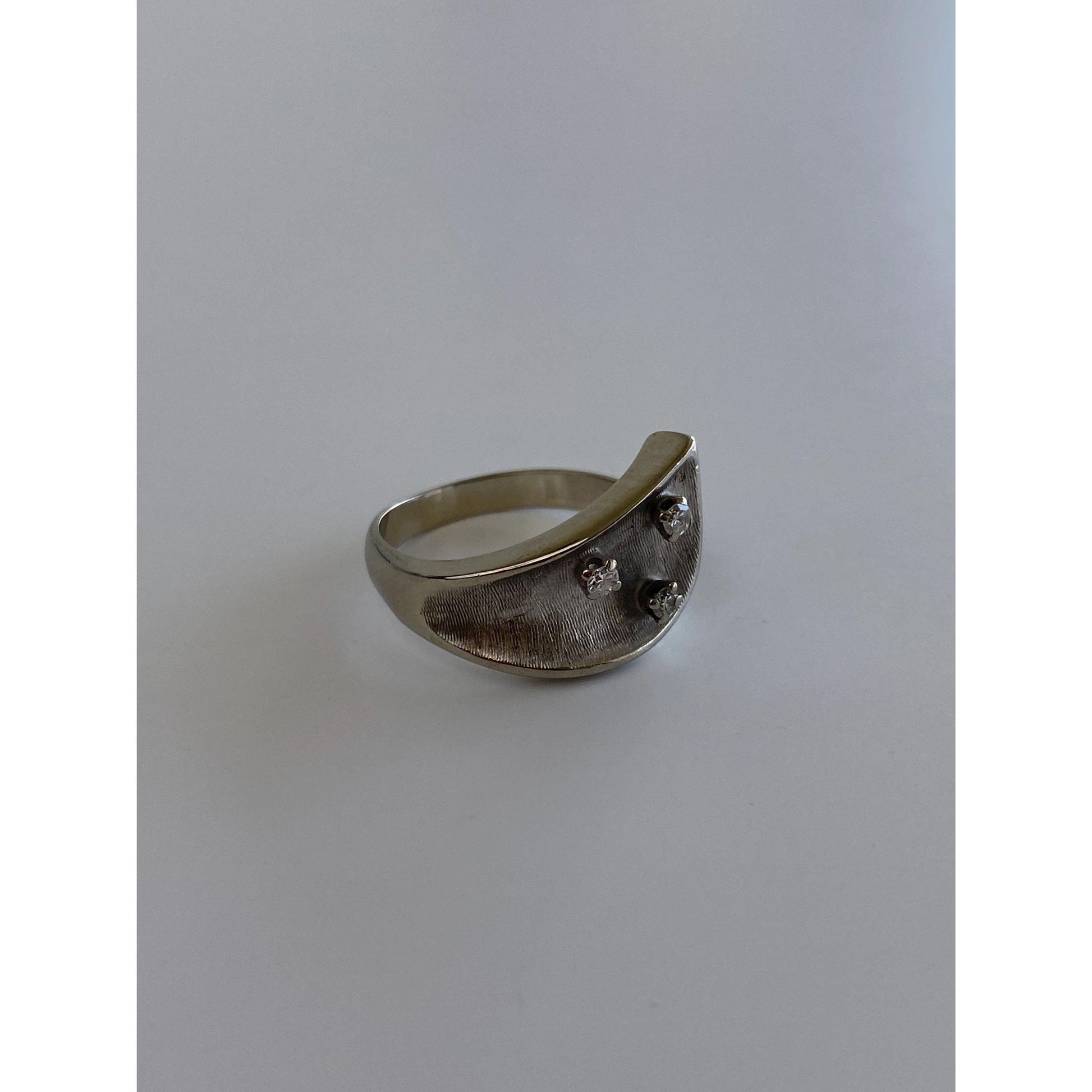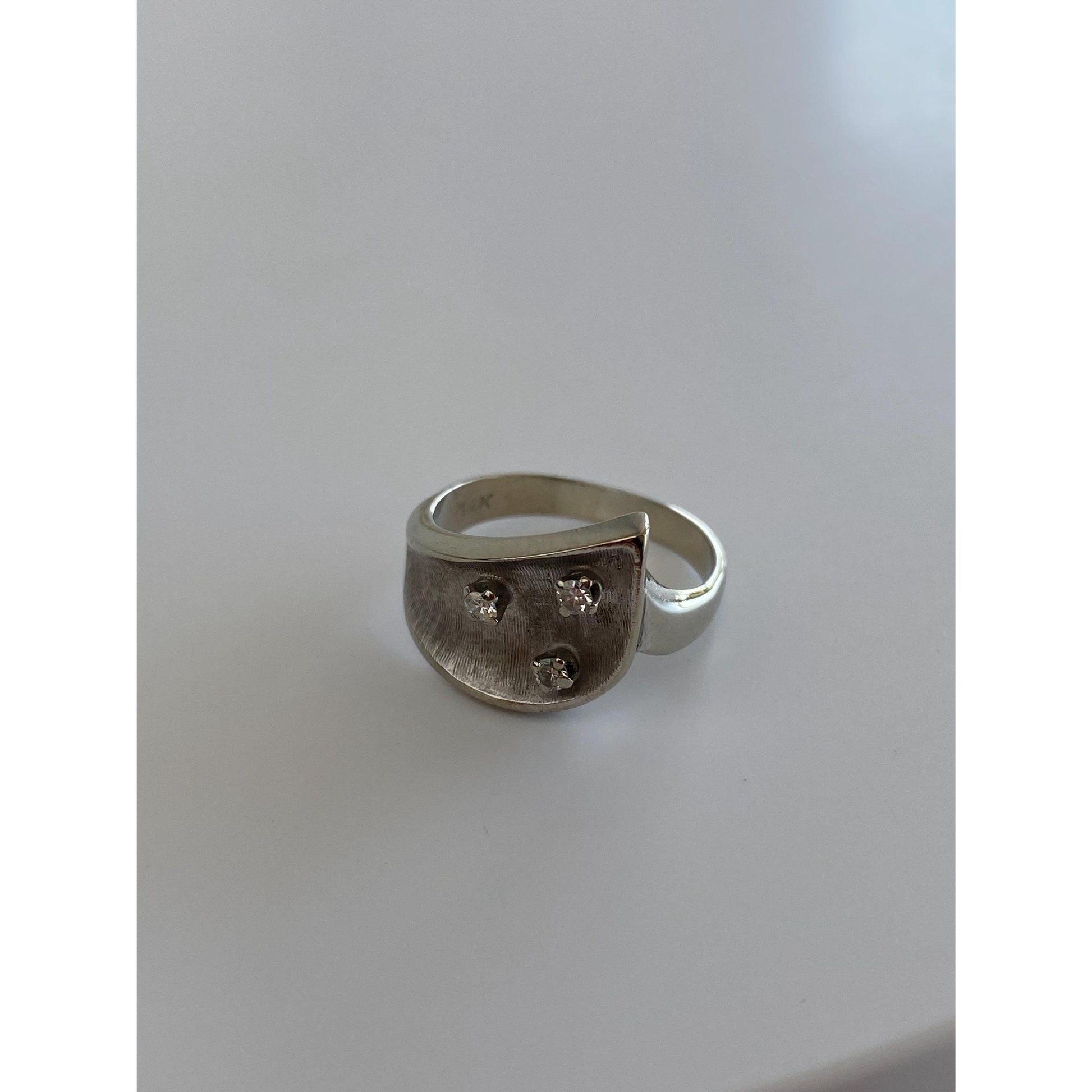 Vintage Solid 14k White Gold Diamond Dotted Ring Band - Size 6