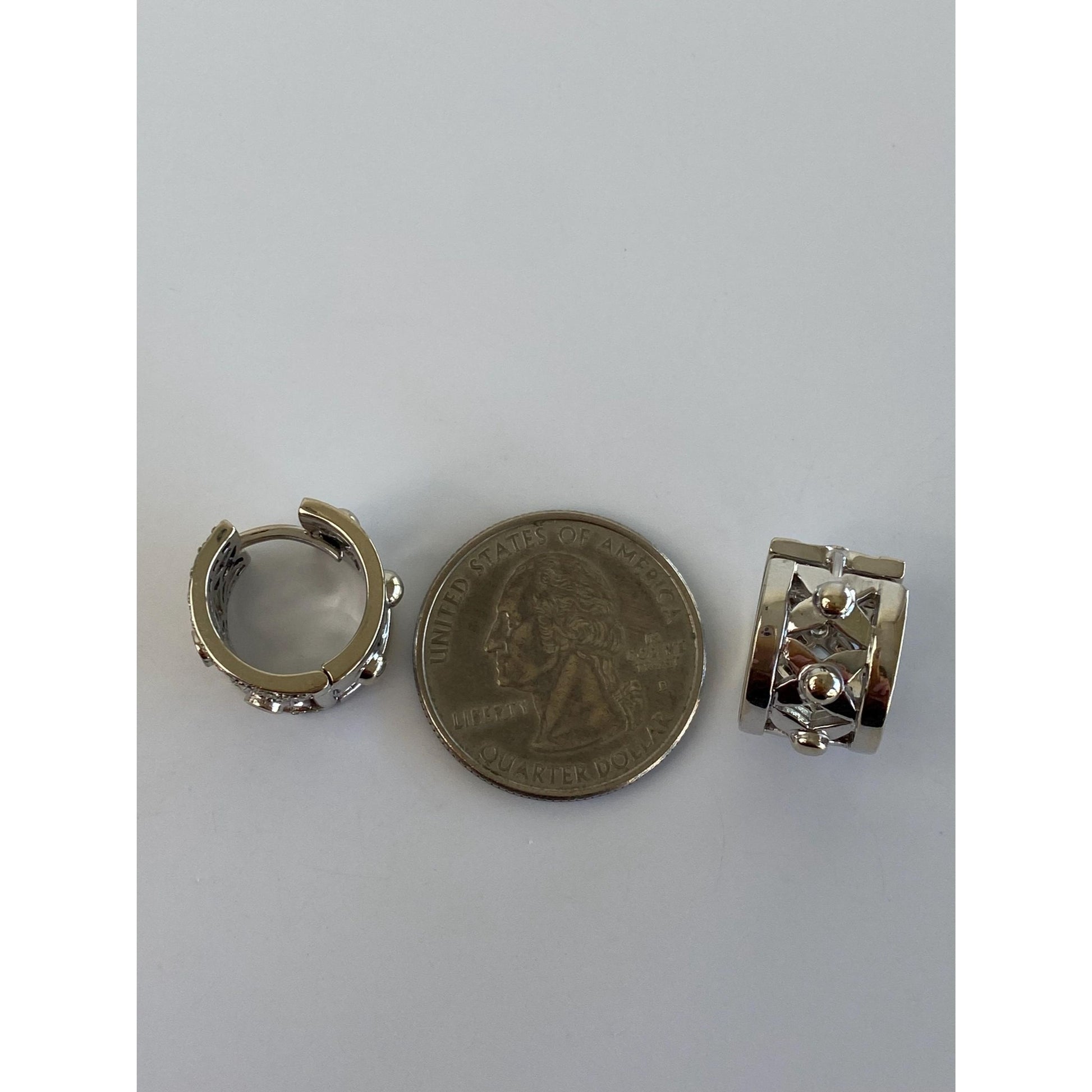 Vintage Solid 14k White Gold Diamond Floral Hoop Earrings