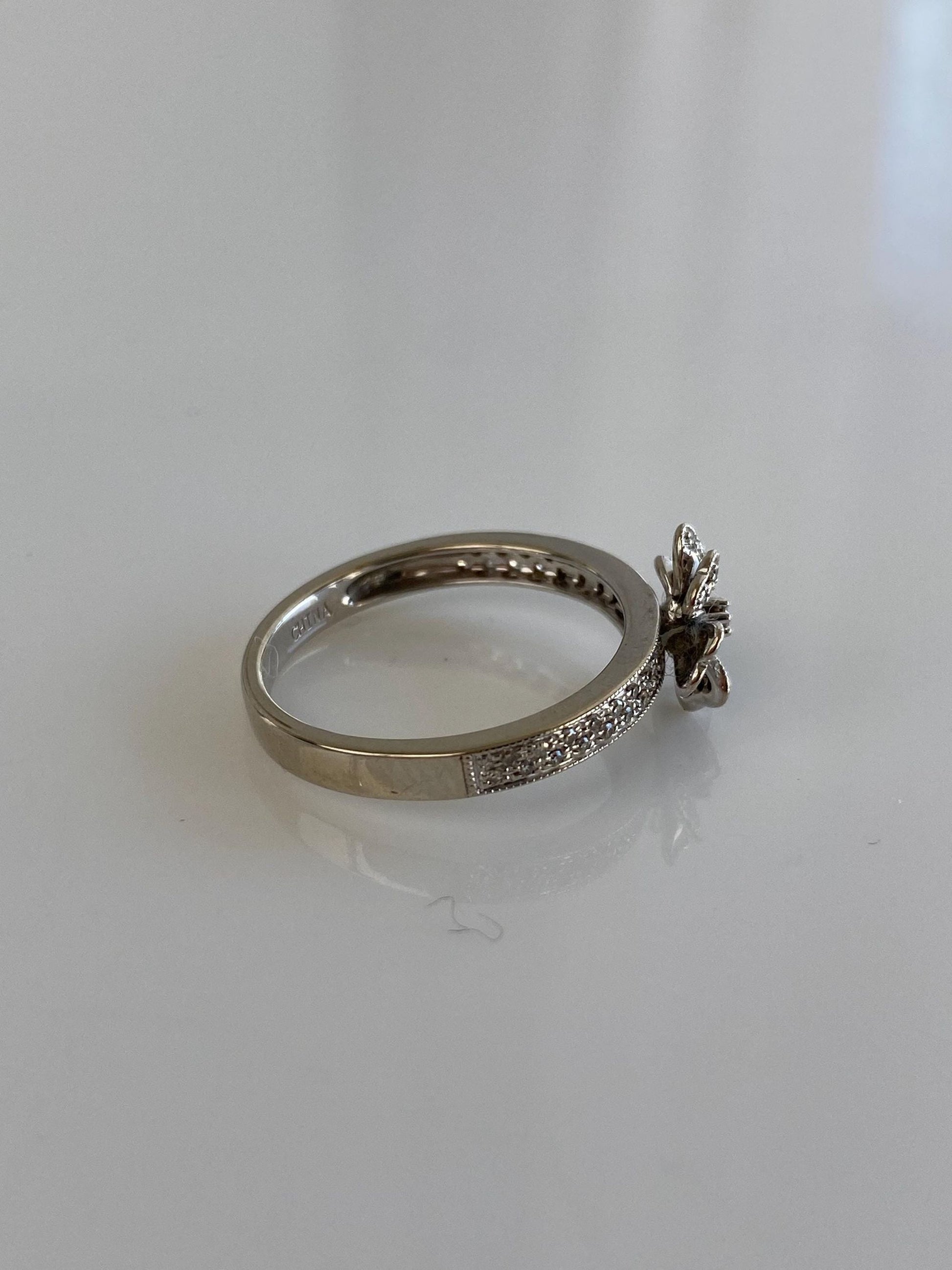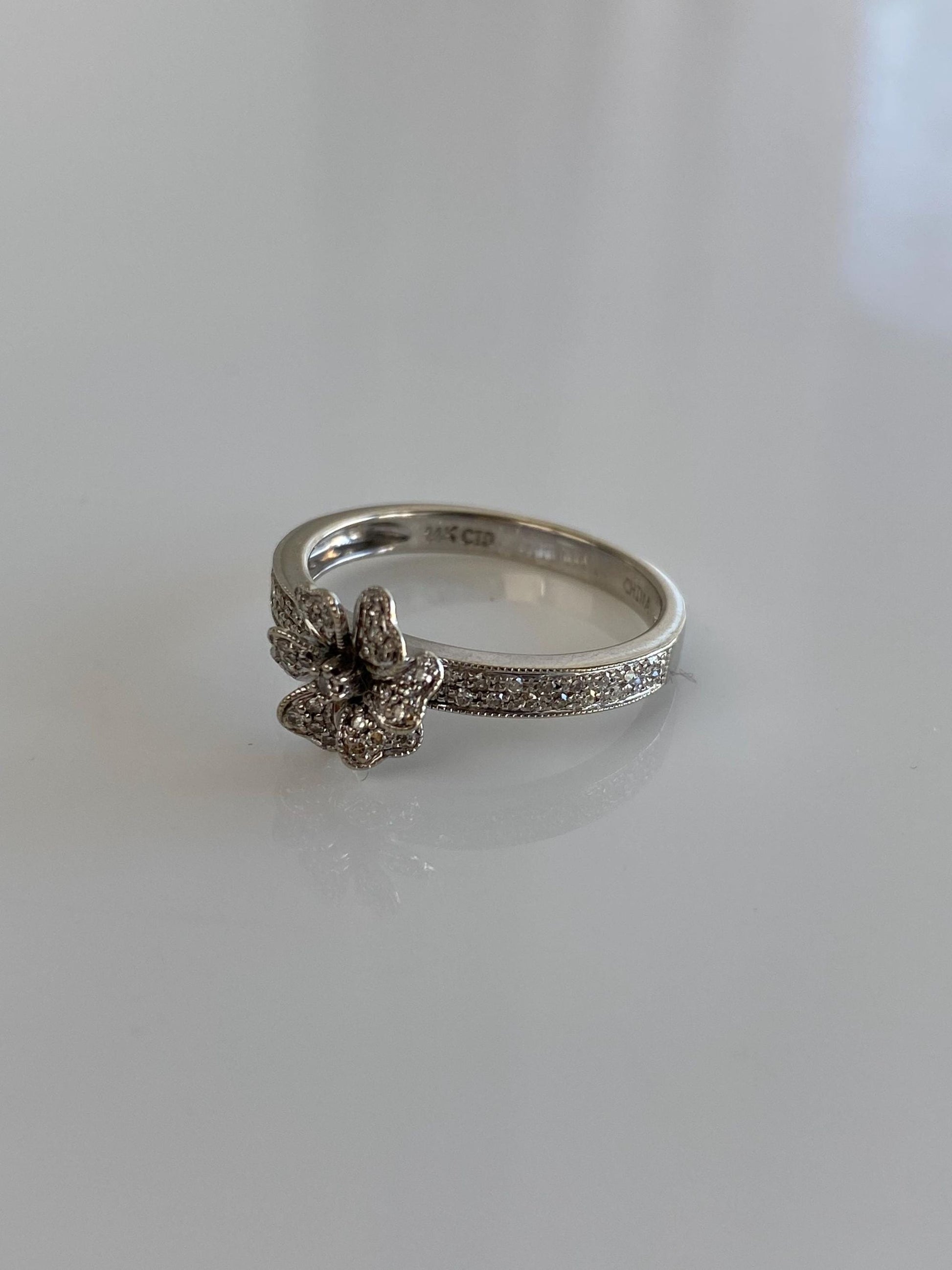 Vintage Solid 14k White Gold Diamond Flower Ring - Size 6.75