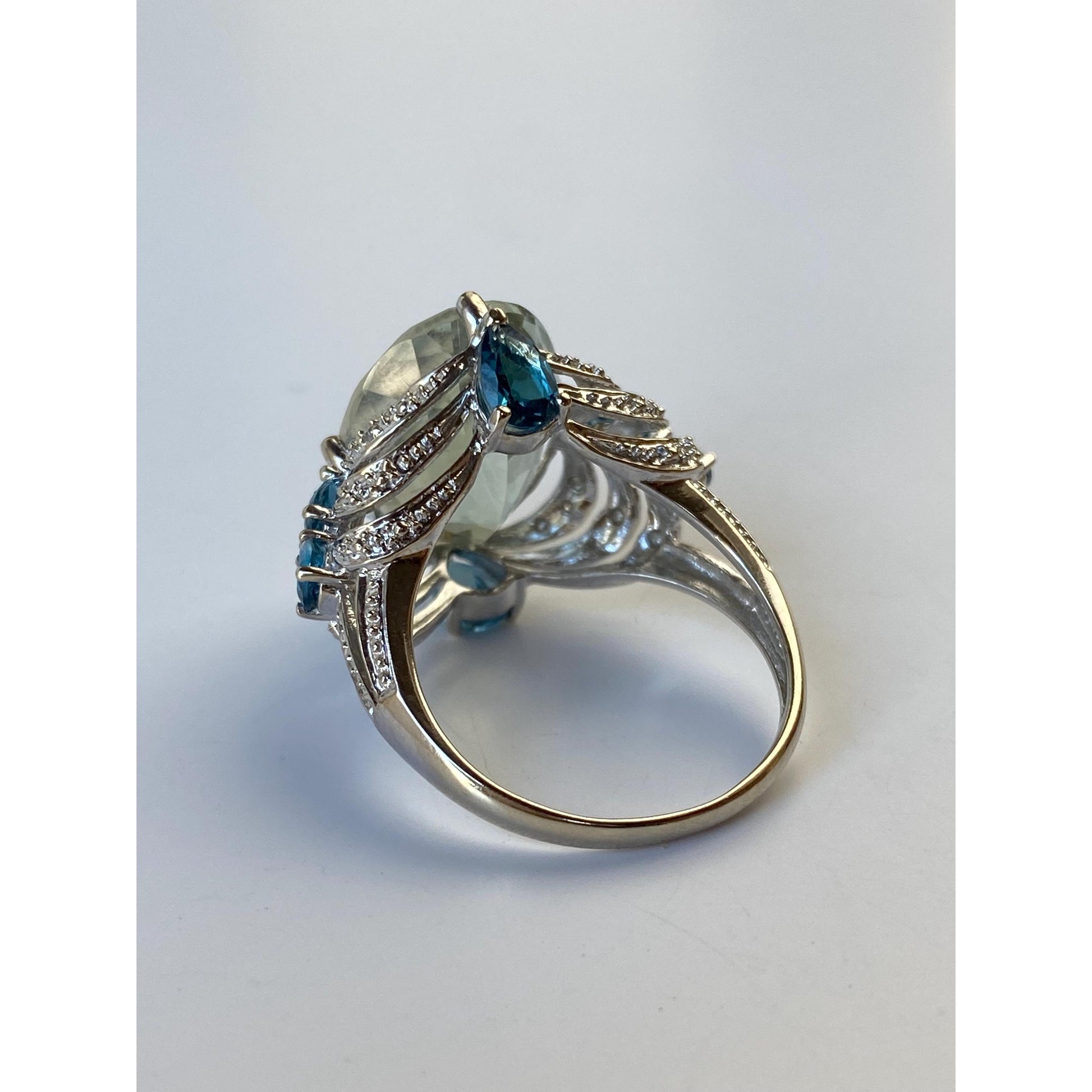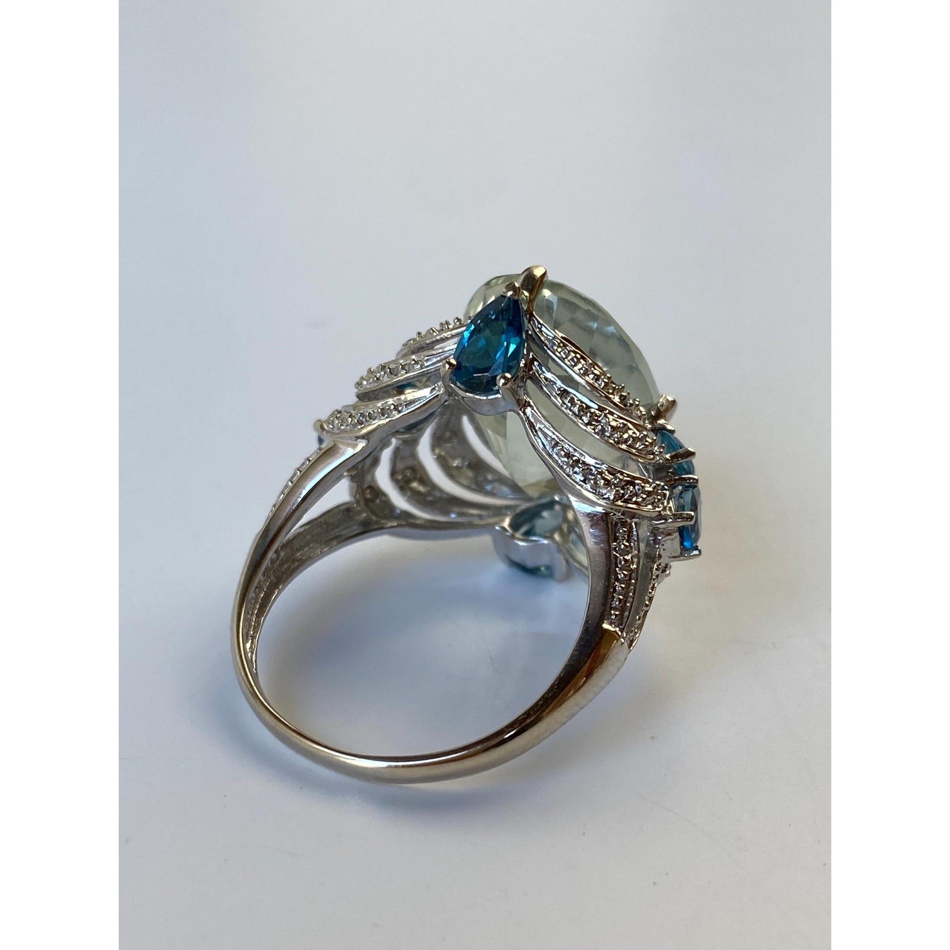Vintage Solid 14k White Gold Diamond Green & Blue Quartz Ring - Size 7.75