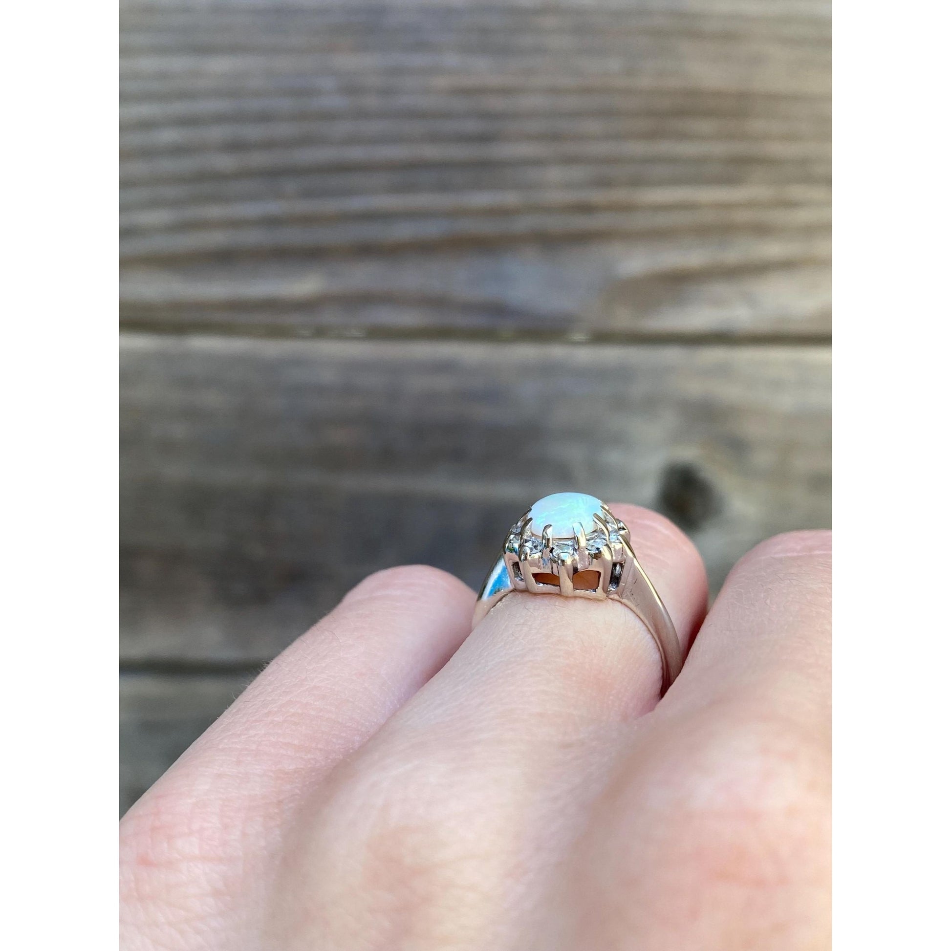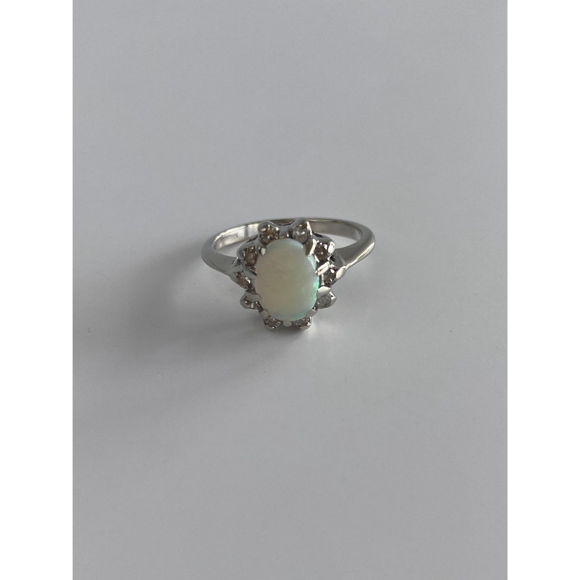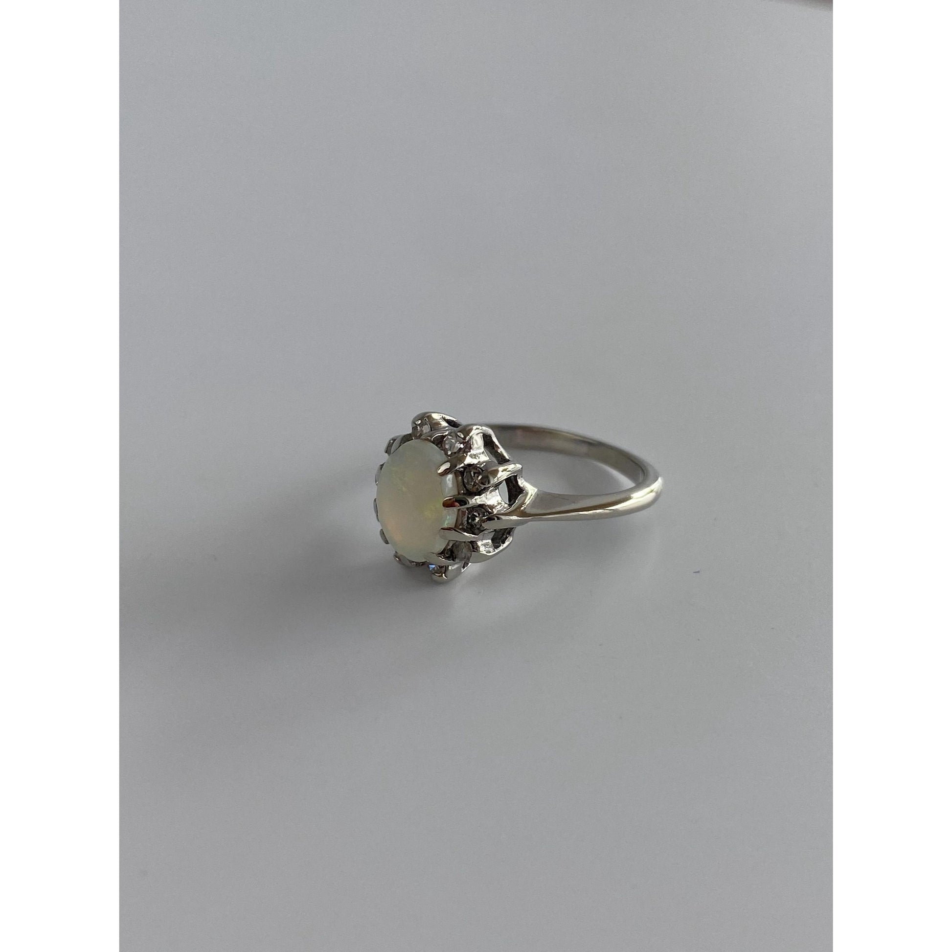 Vintage Solid 14k White Gold Diamond Halo Opal Ring - Size 4