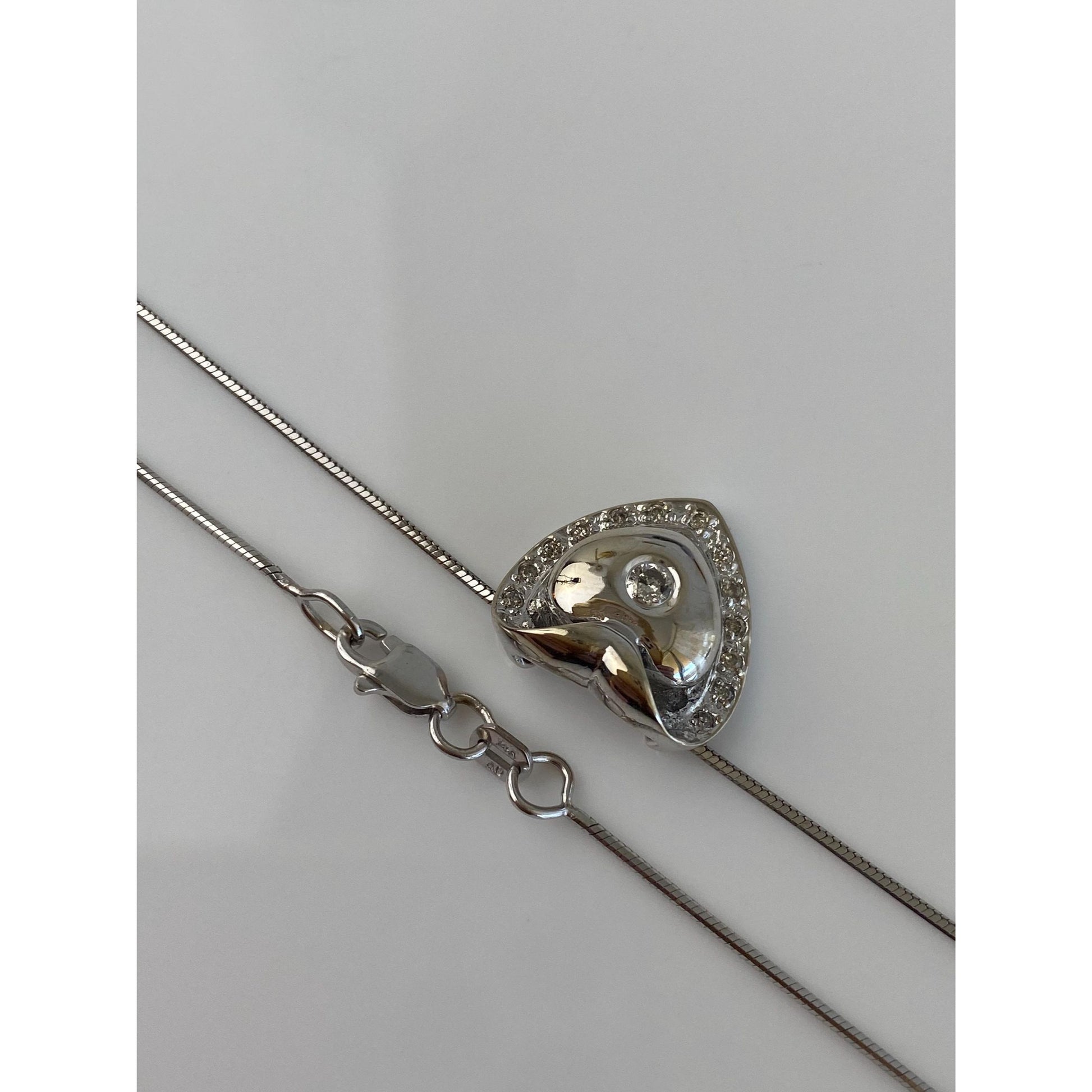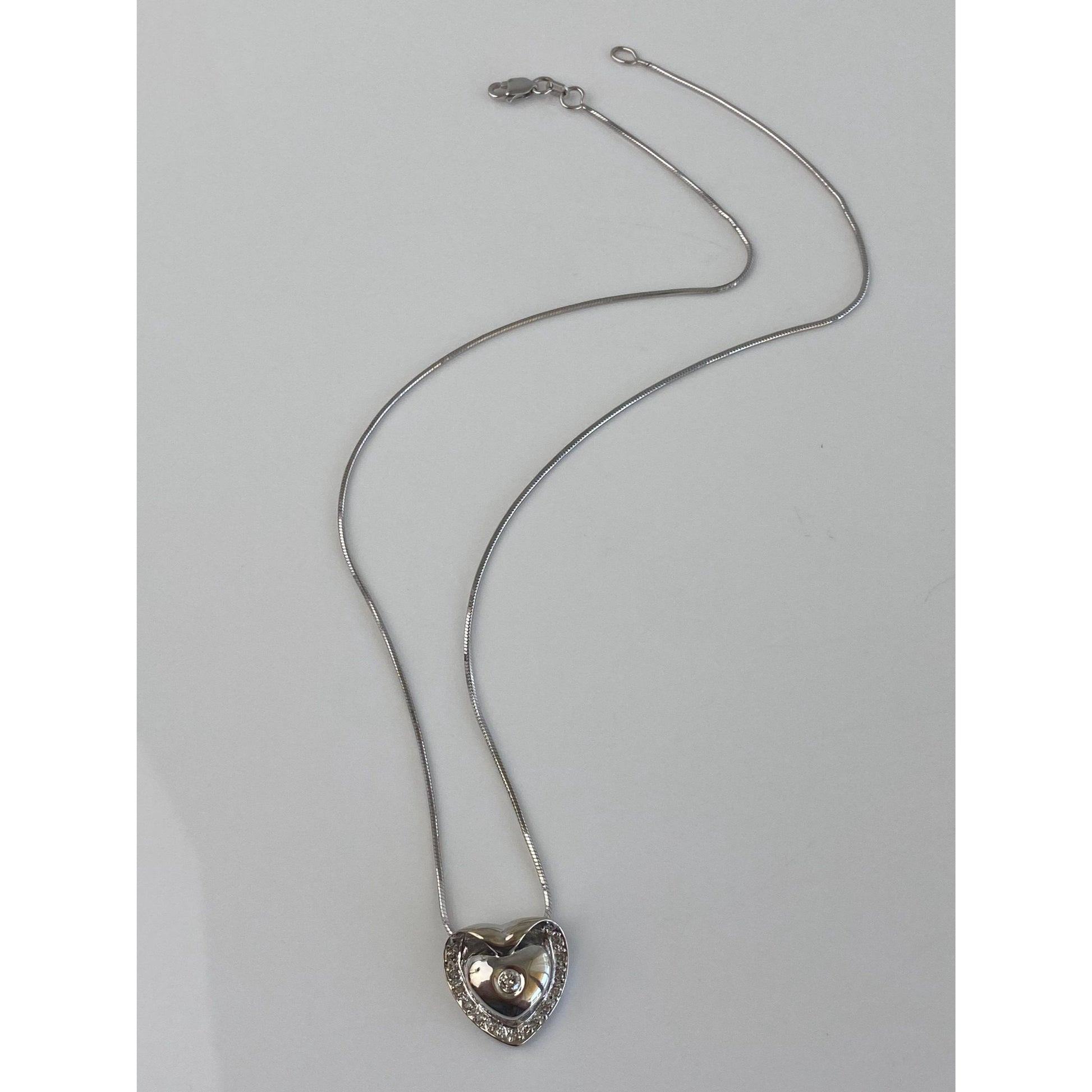 Vintage Solid 14k White Gold Diamond Heart Snake Chain Necklace - 16.5 inches