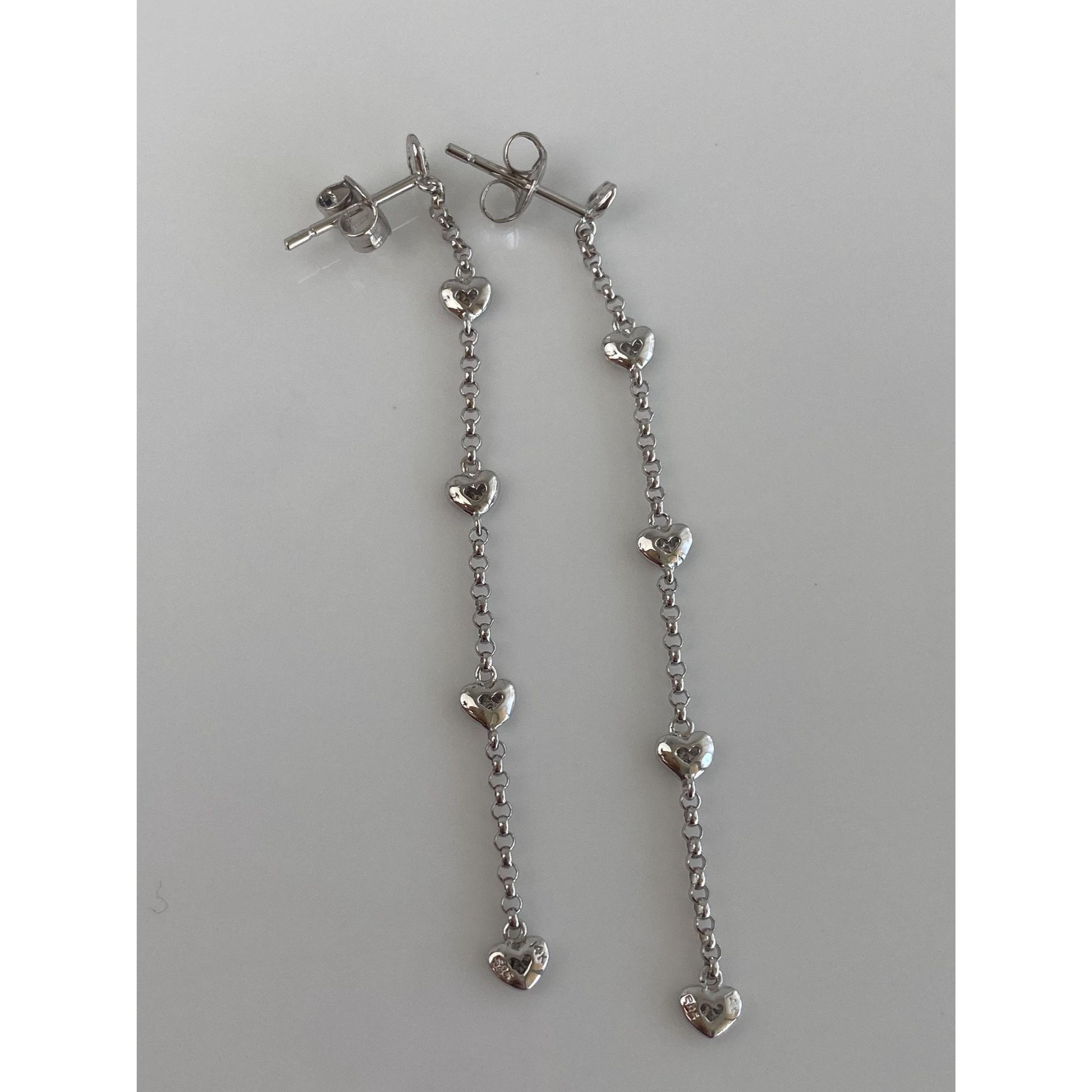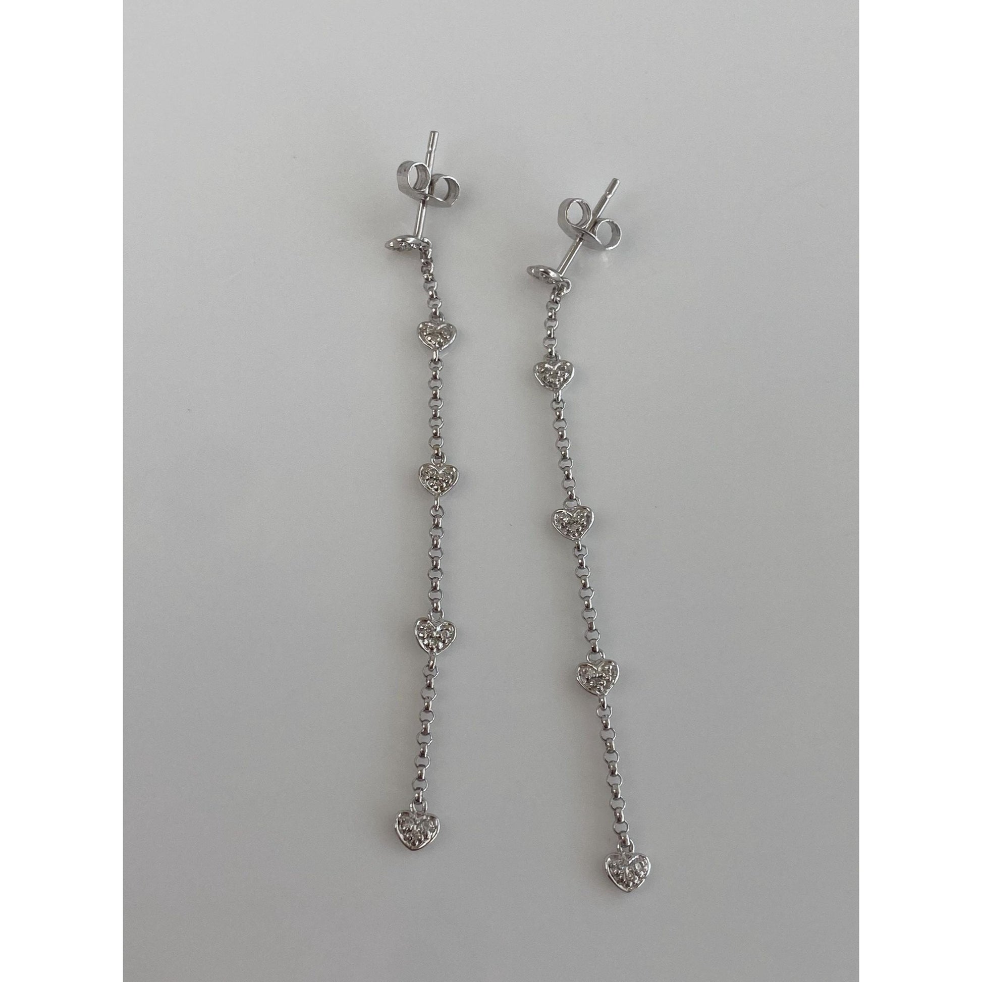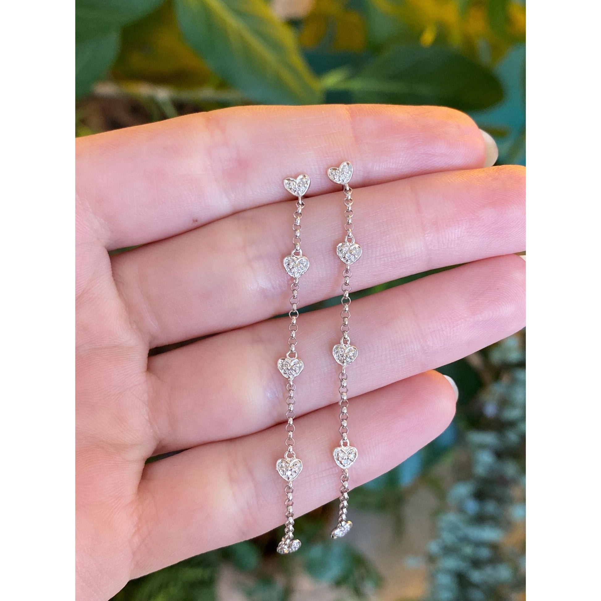 Vintage Solid 14k White Gold Diamond Hearts Rolo Chain Dangle Stud Earrings