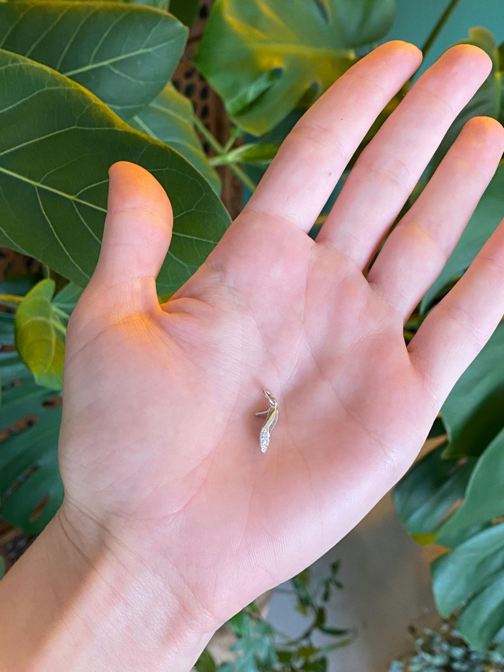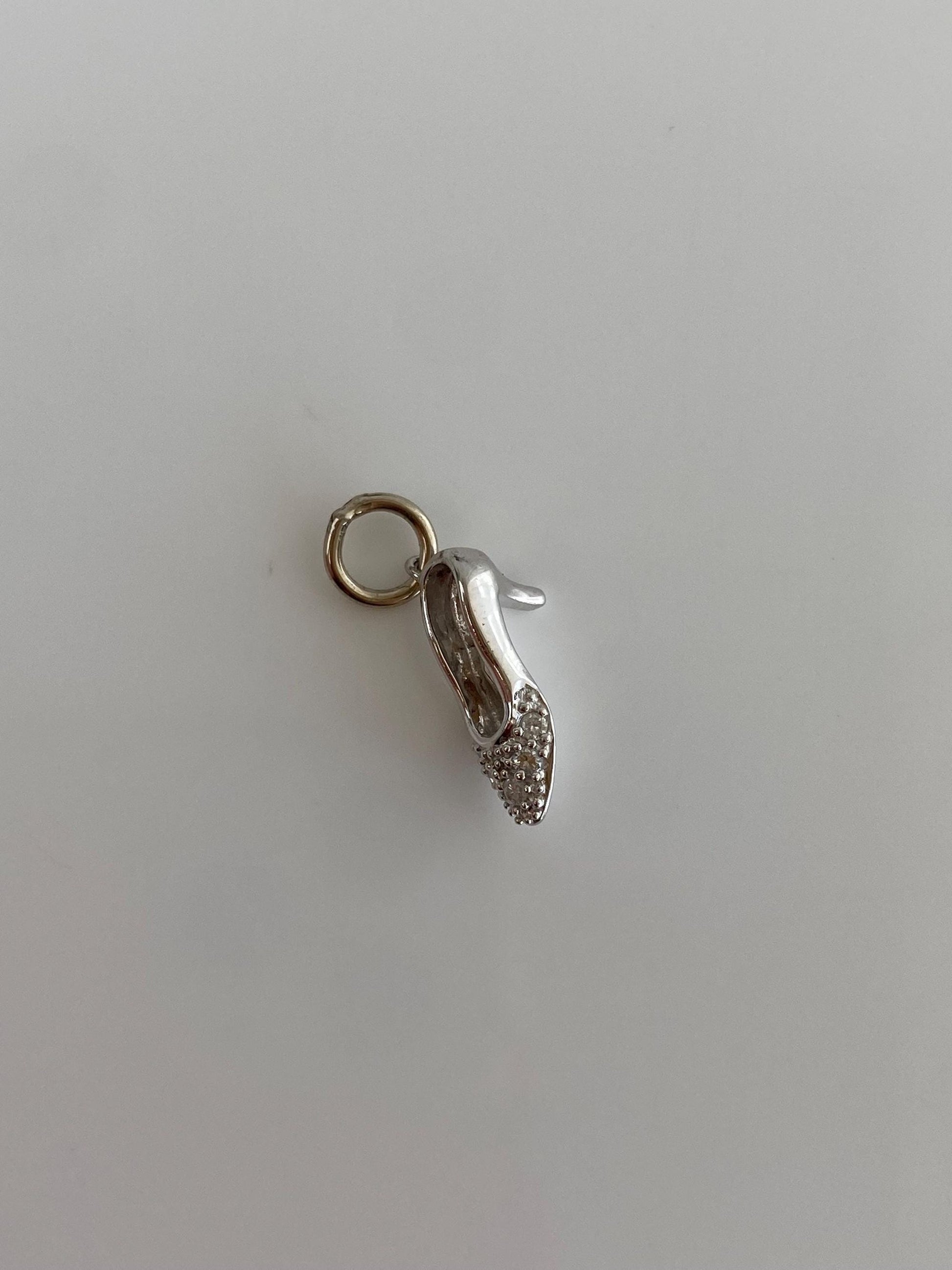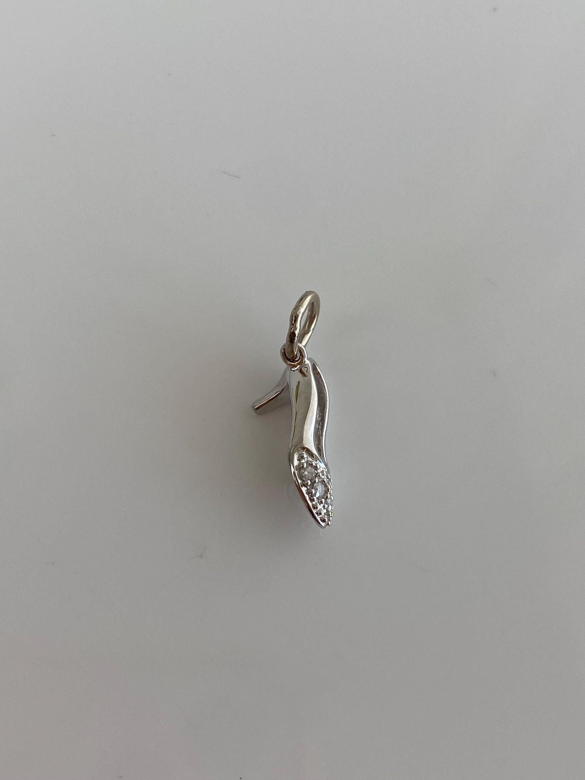 Vintage Solid 14k White Gold Diamond High Heel Charm