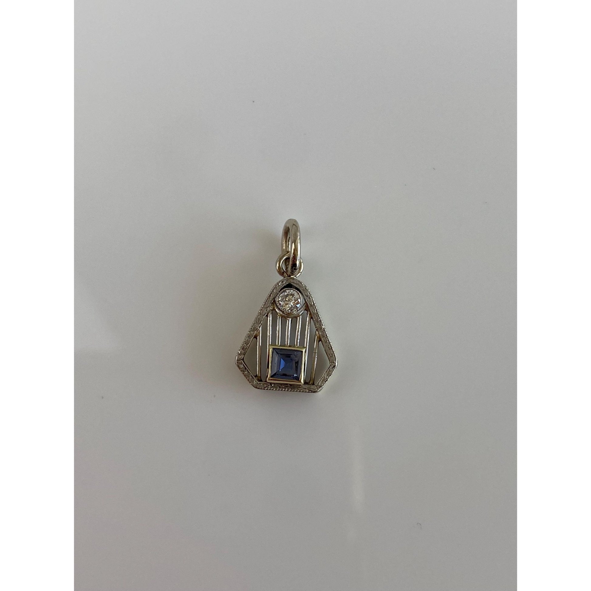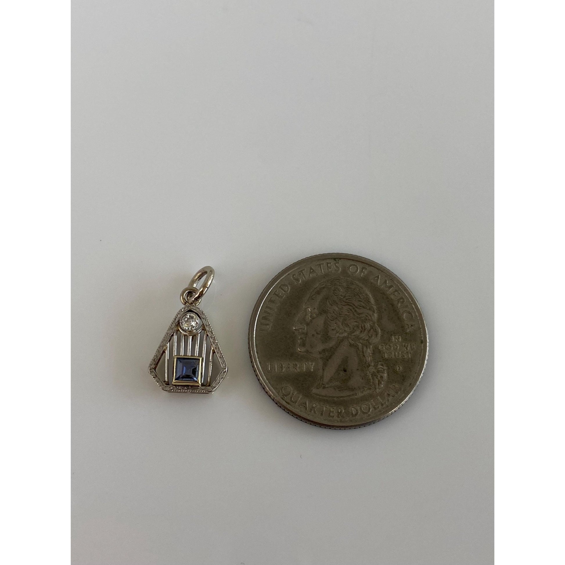 Vintage Solid 14k White Gold Diamond Light Blue Sapphire Art Deco Stick Pin Conversion Charm