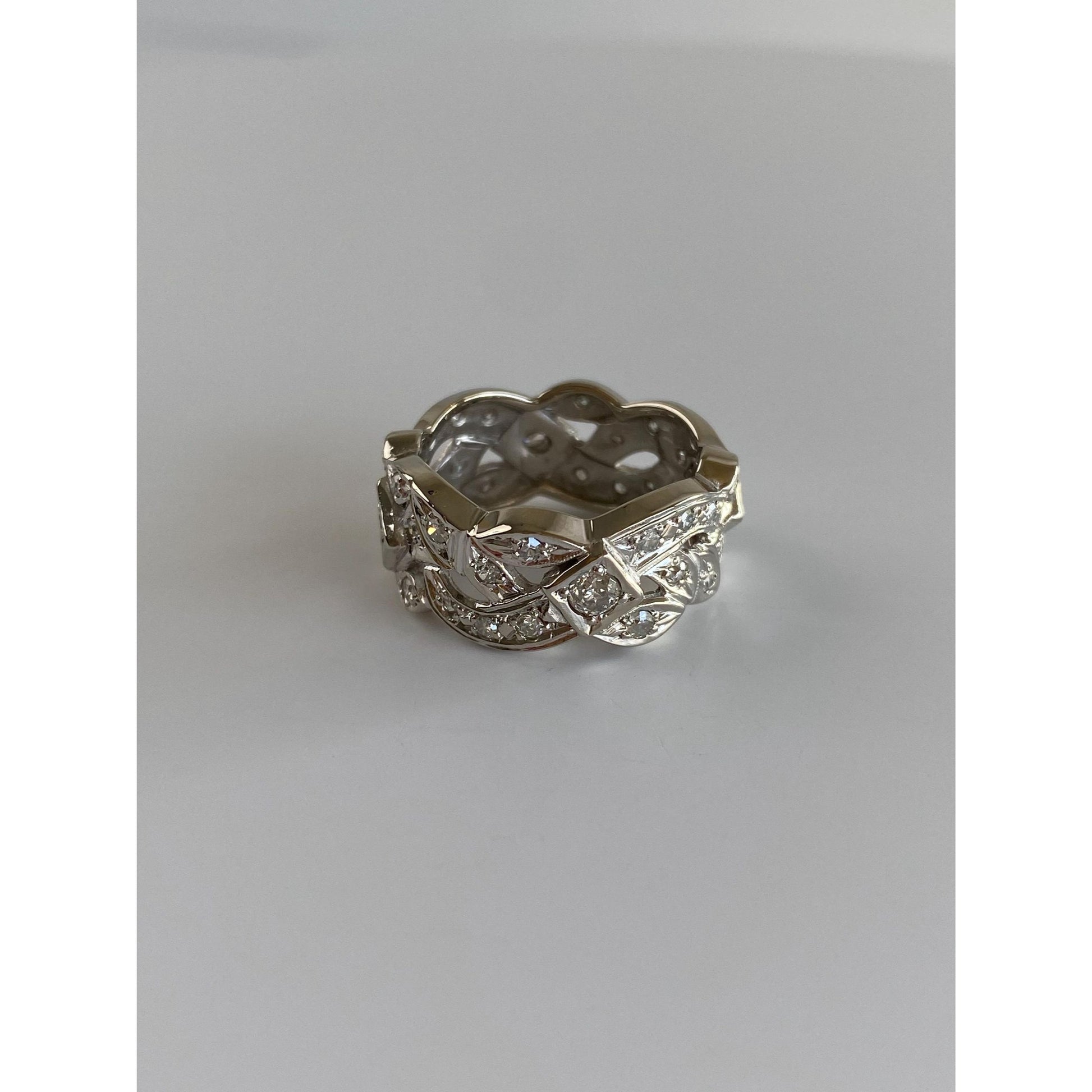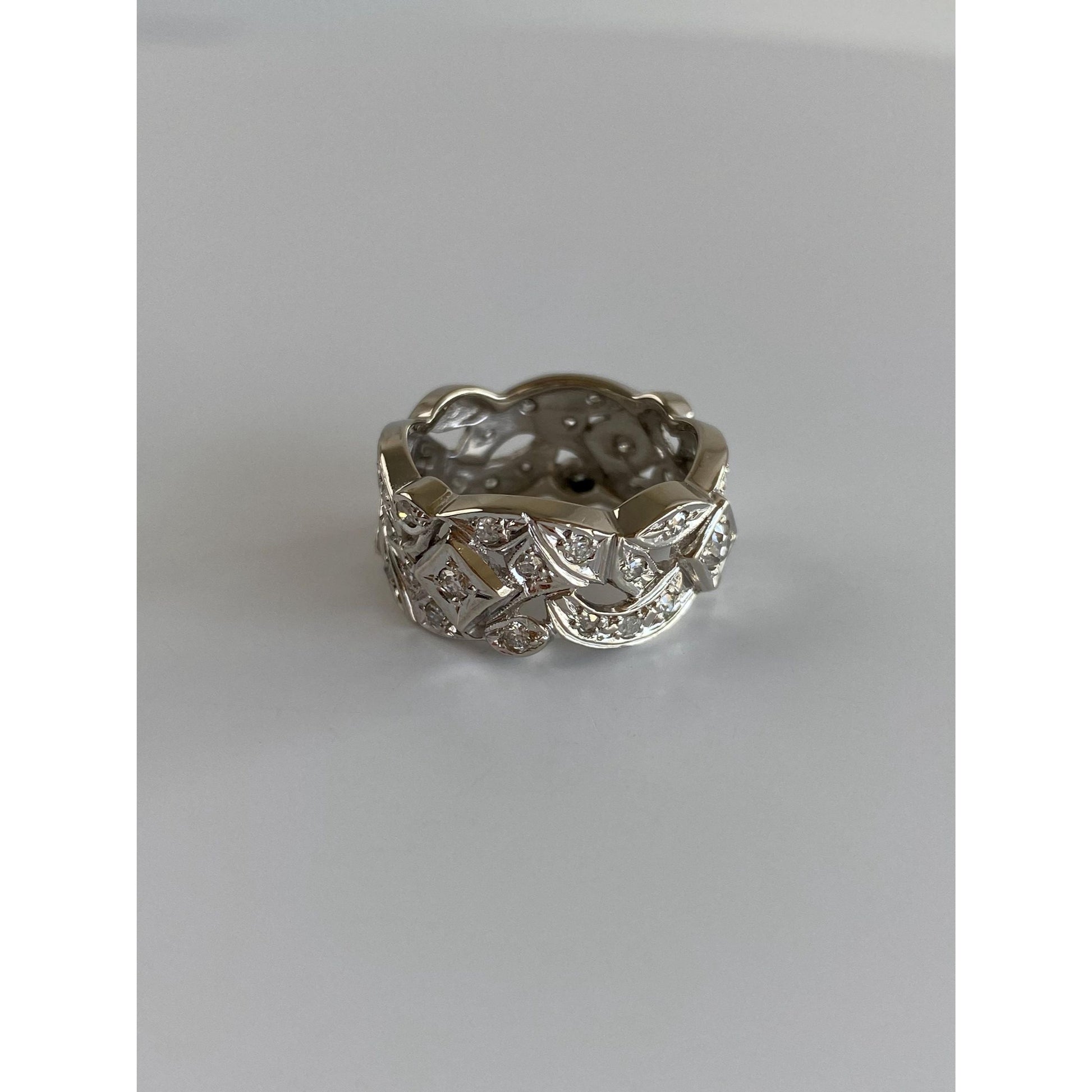 Vintage Solid 14k White Gold Diamond Open Pattern Ring Band - Size 7.25