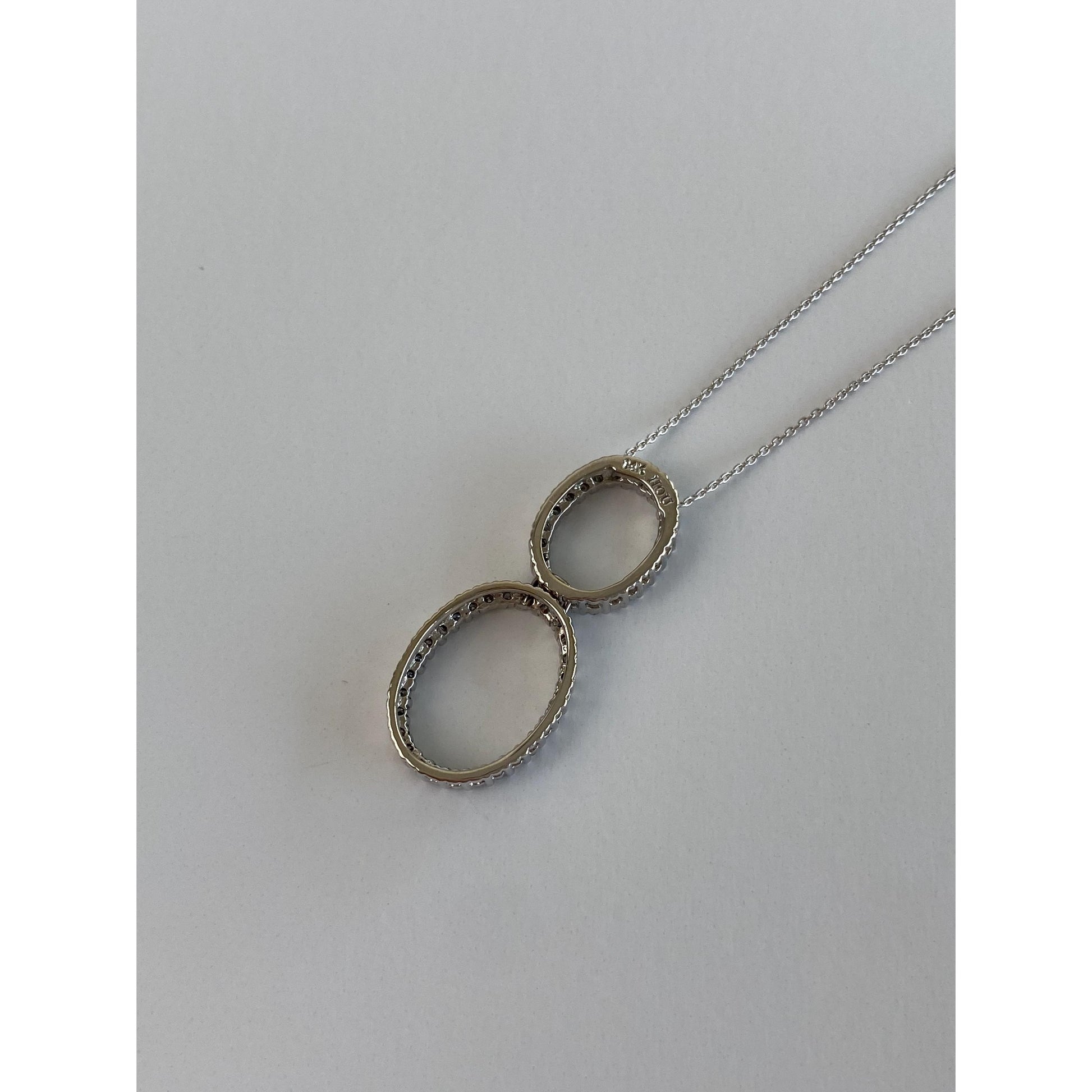 Vintage Solid 14k White Gold Diamond Ovals Tight Rolo Chain Necklace - 18.25 inches