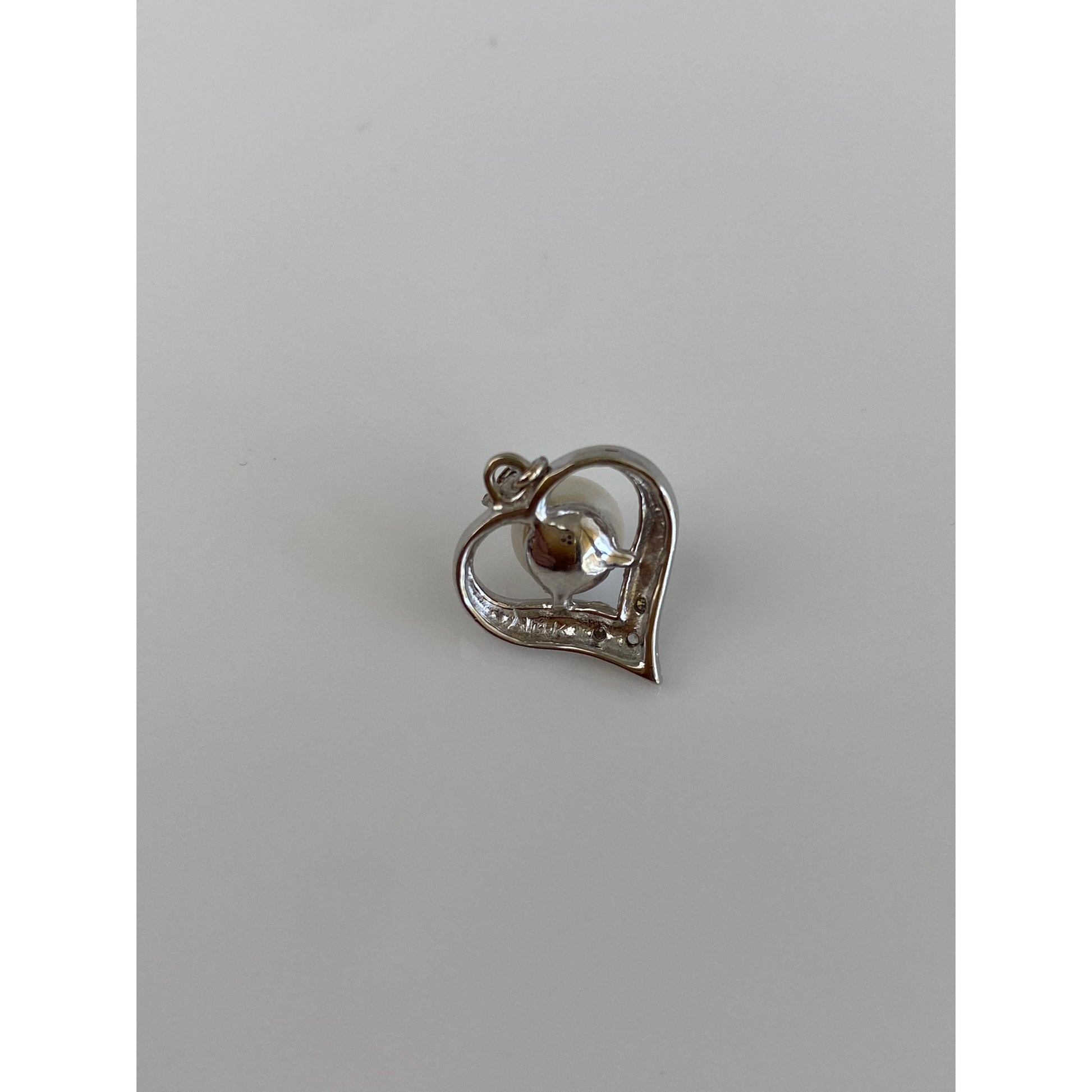 Vintage Solid 14k White Gold Diamond Pearl Heart Charm