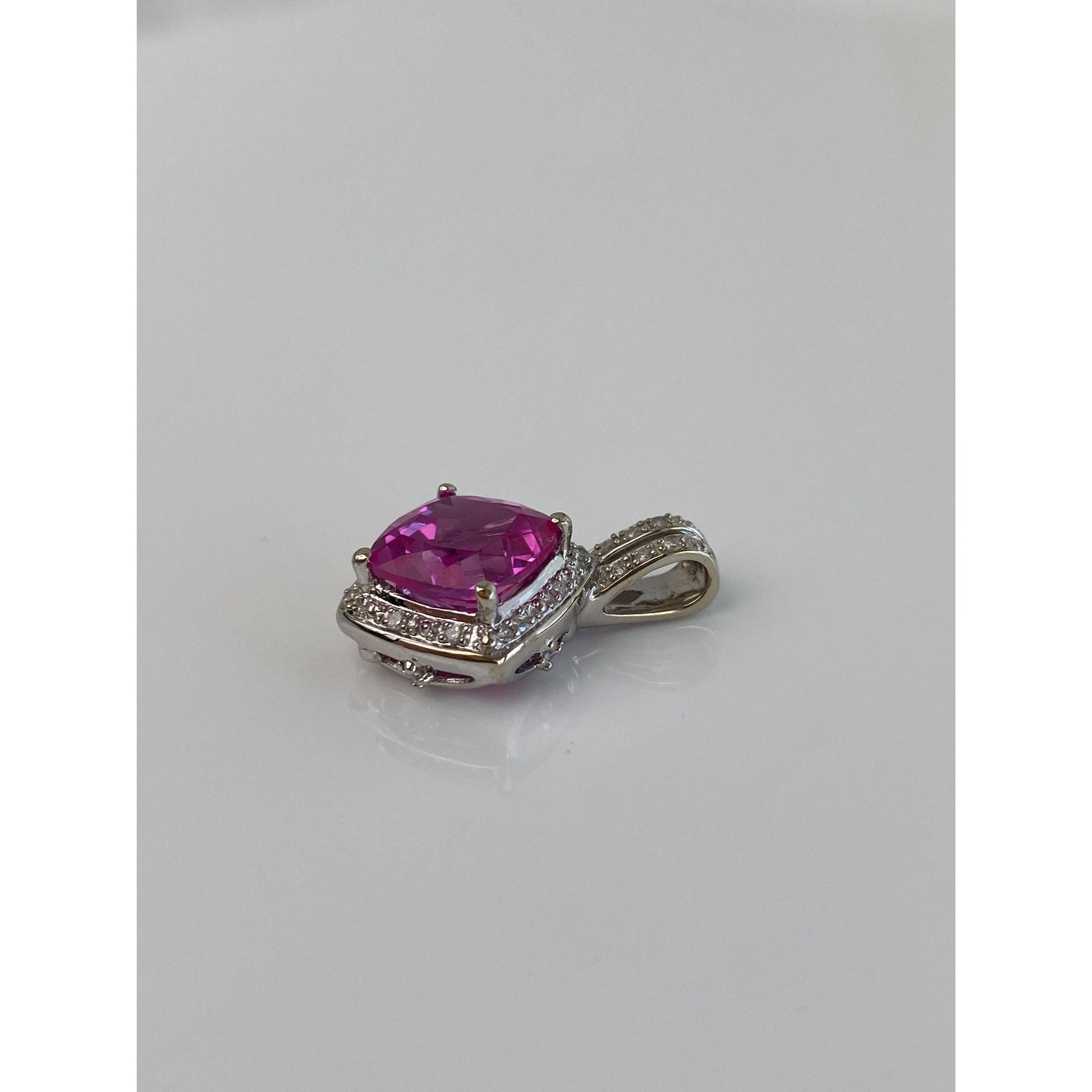 Vintage Solid 14k White Gold Diamond Pink Sapphire Charm