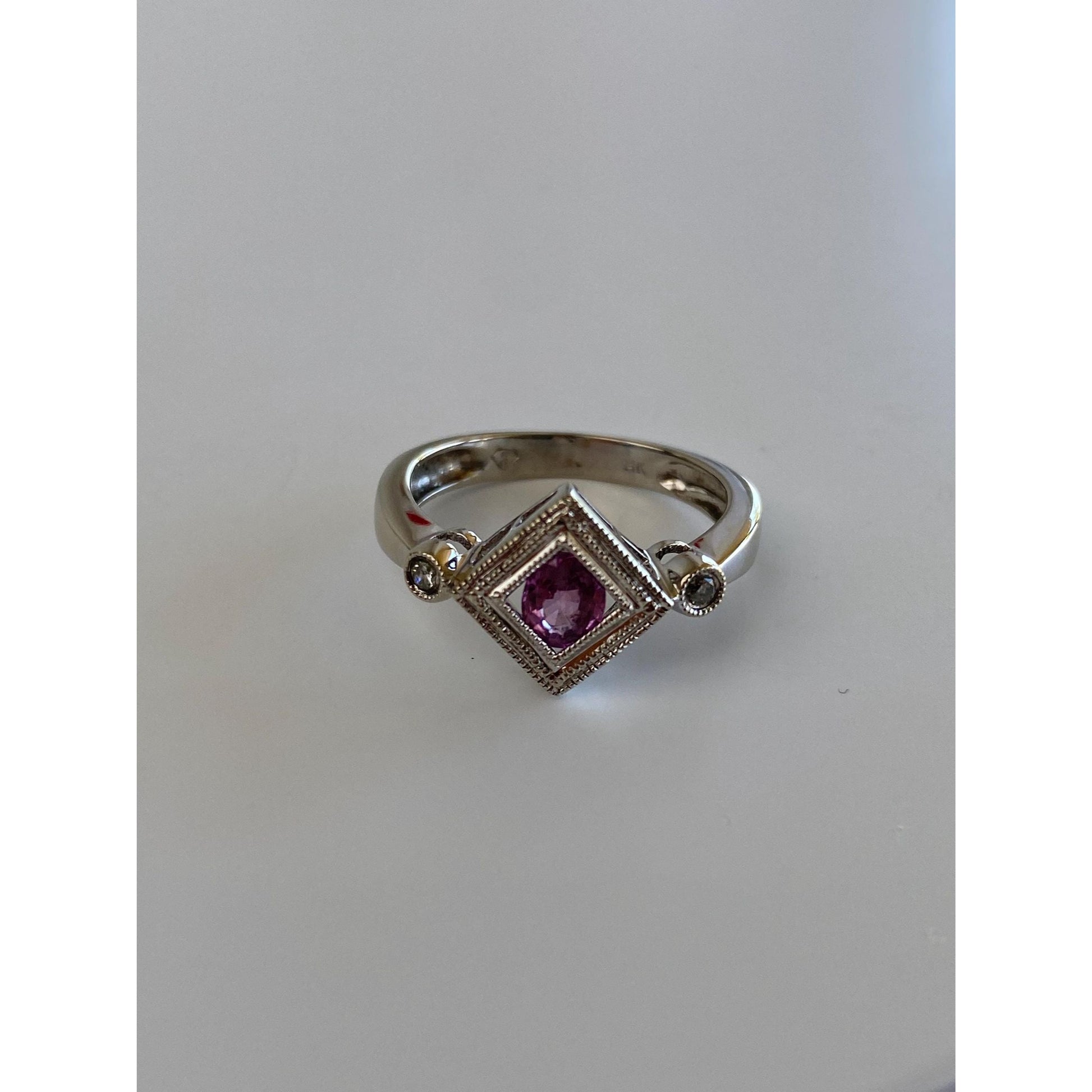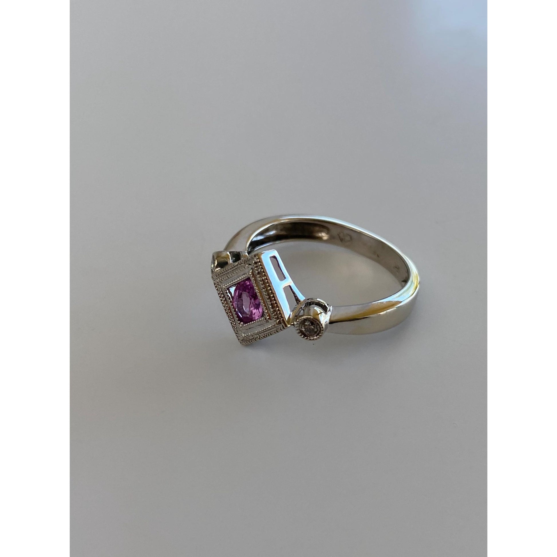 Vintage Solid 14k White Gold Diamond Pink Sapphire Ring - Size 7