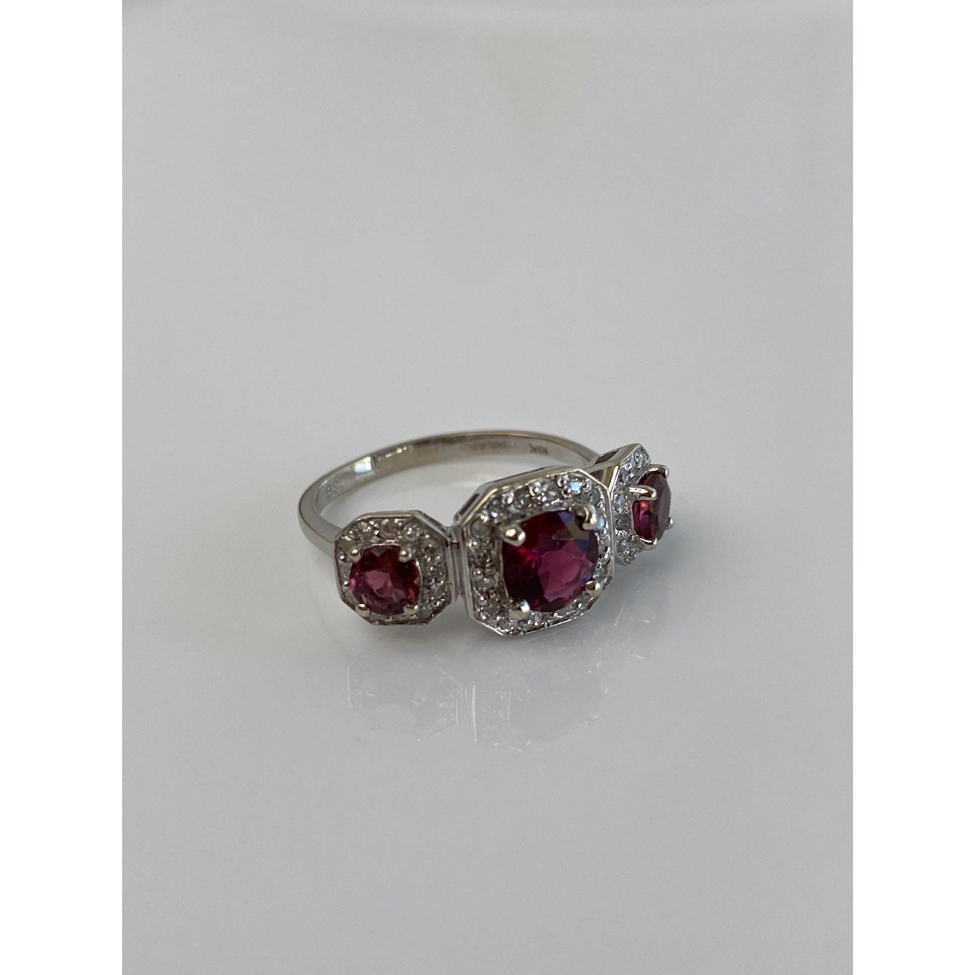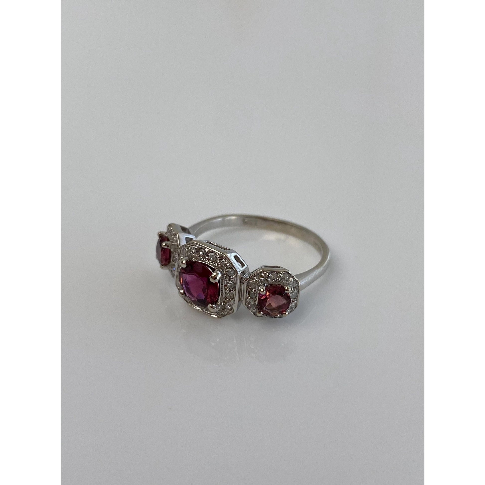 Vintage Solid 14k White Gold Diamond Pink Tourmaline Ring - Size 7.5