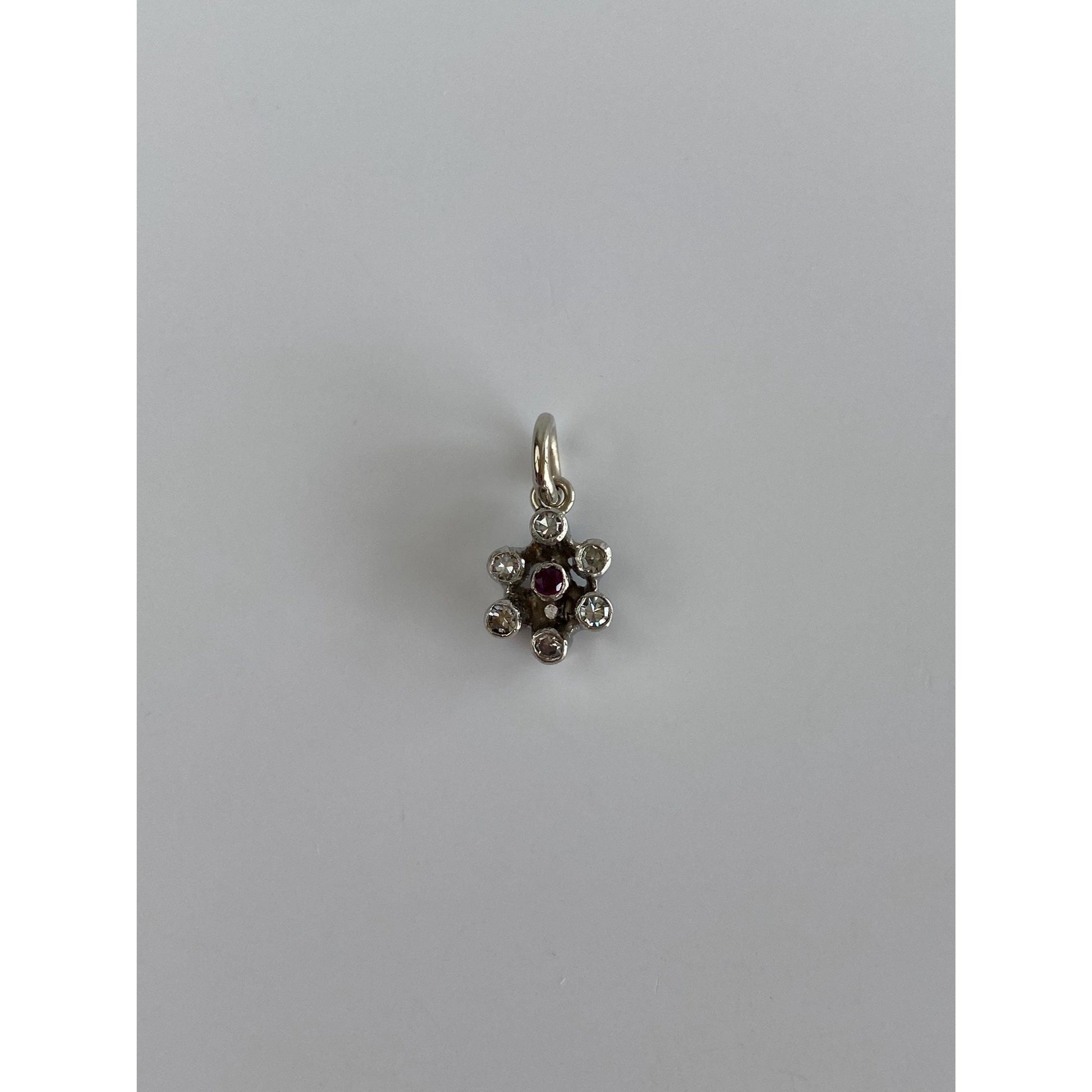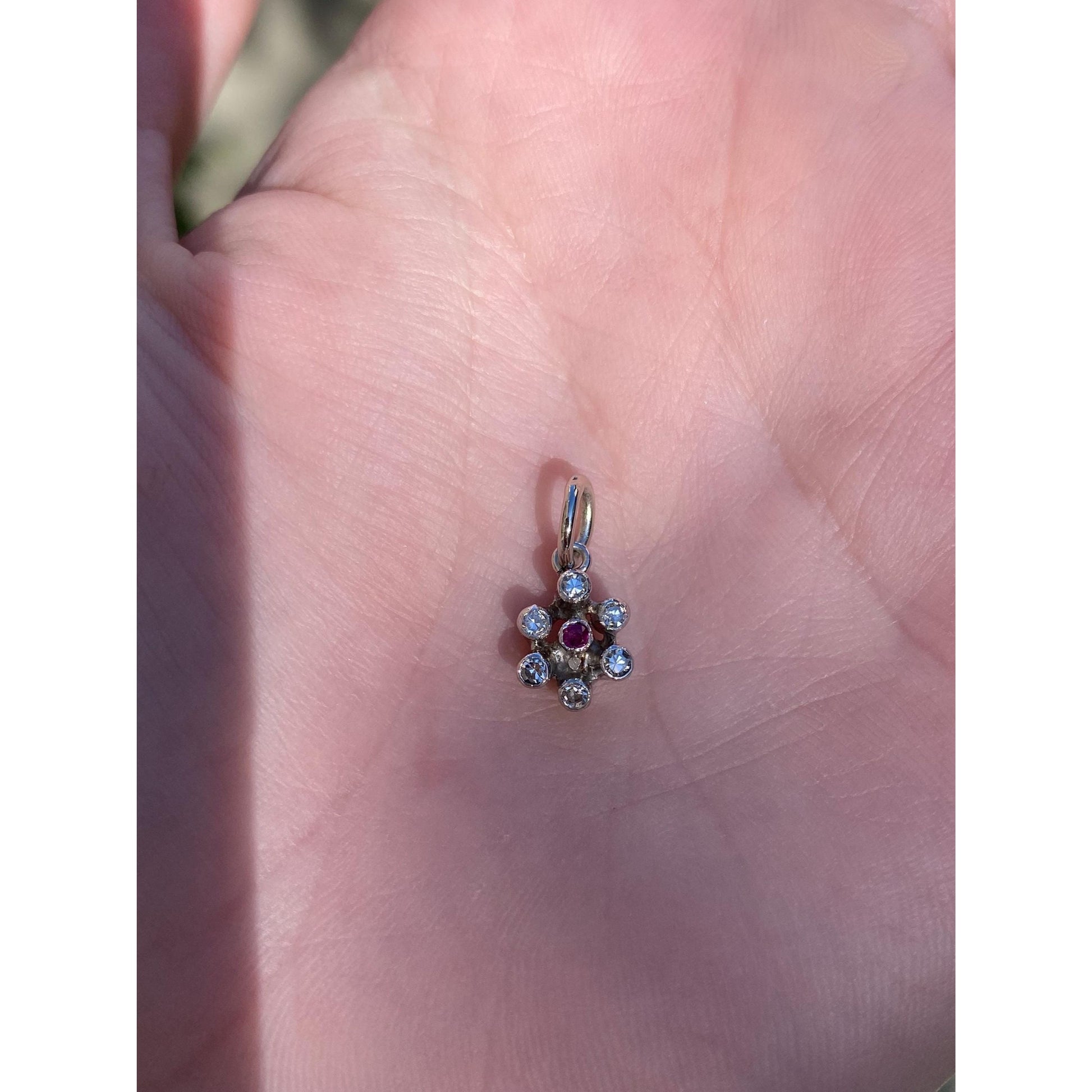 Vintage Solid 14k White Gold Diamond Red Spinel Flower Charm
