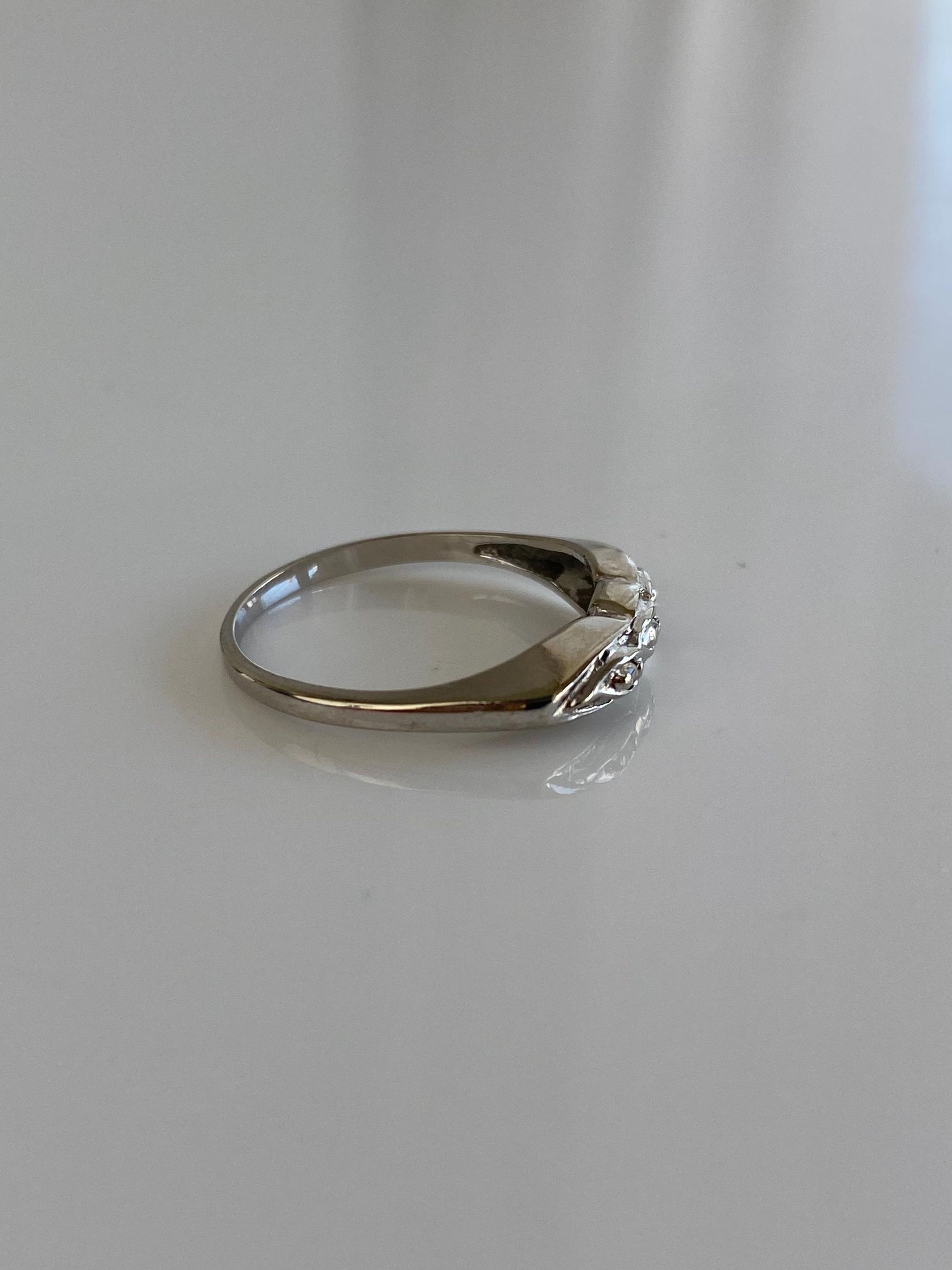 Vintage Solid 14k White Gold Diamond Ring Band - Size 6.5
