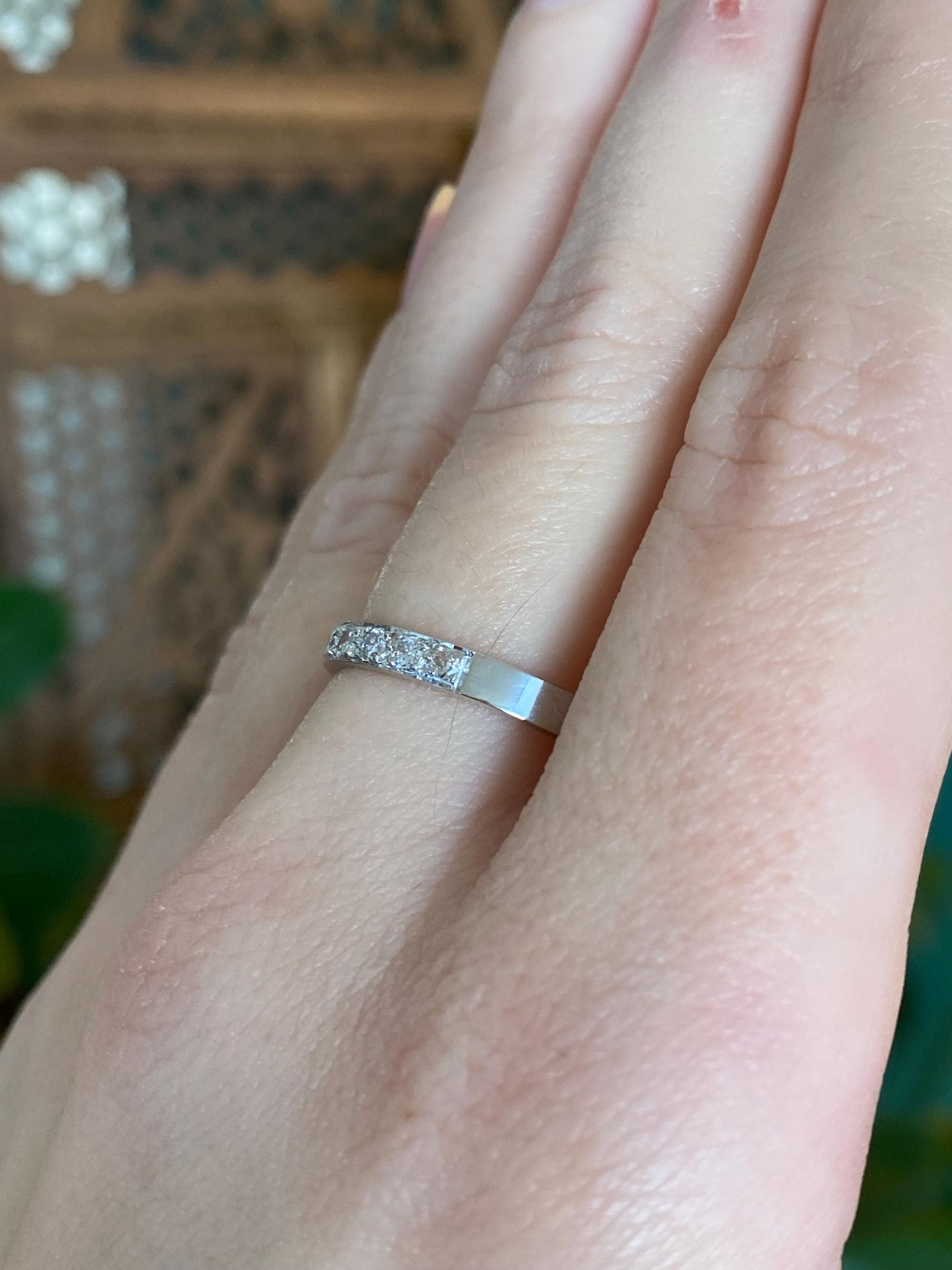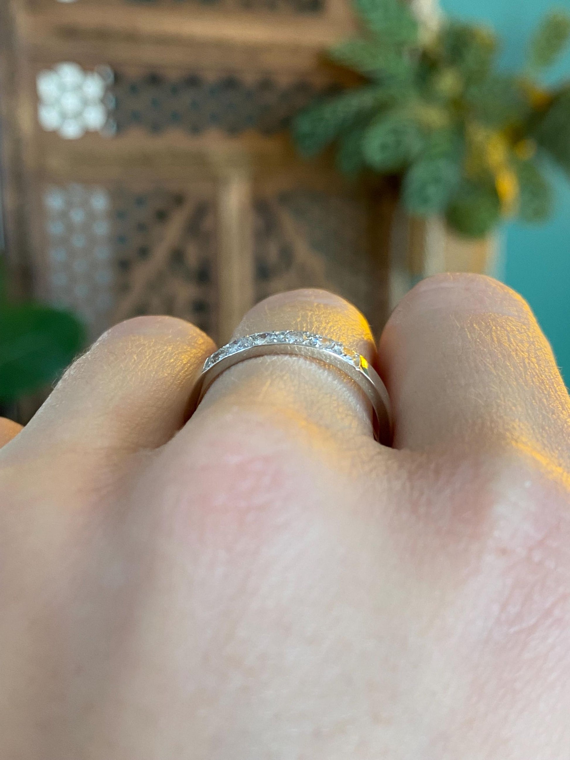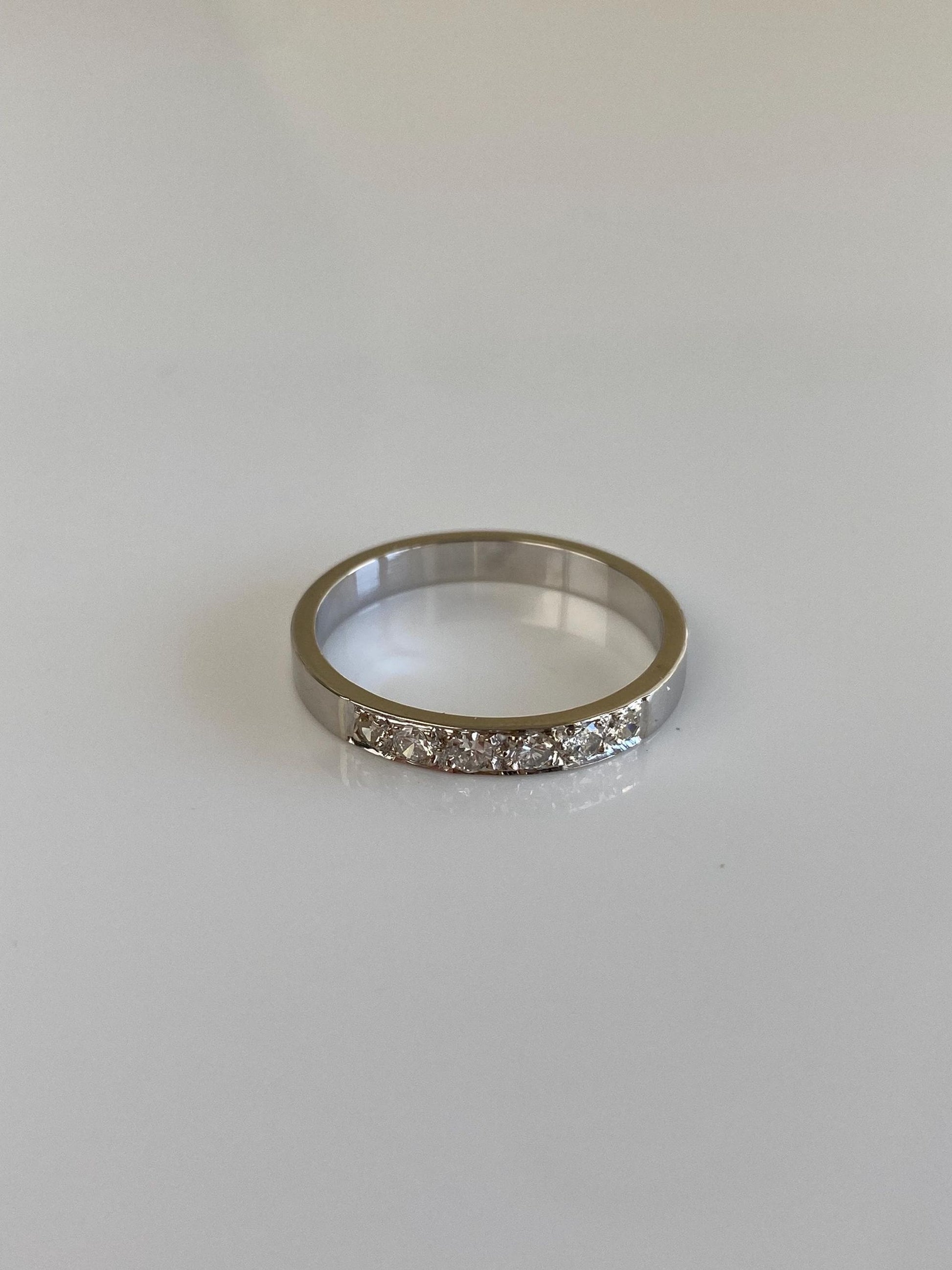 Vintage Solid 14k White Gold Diamond Ring Band - Size 8.5