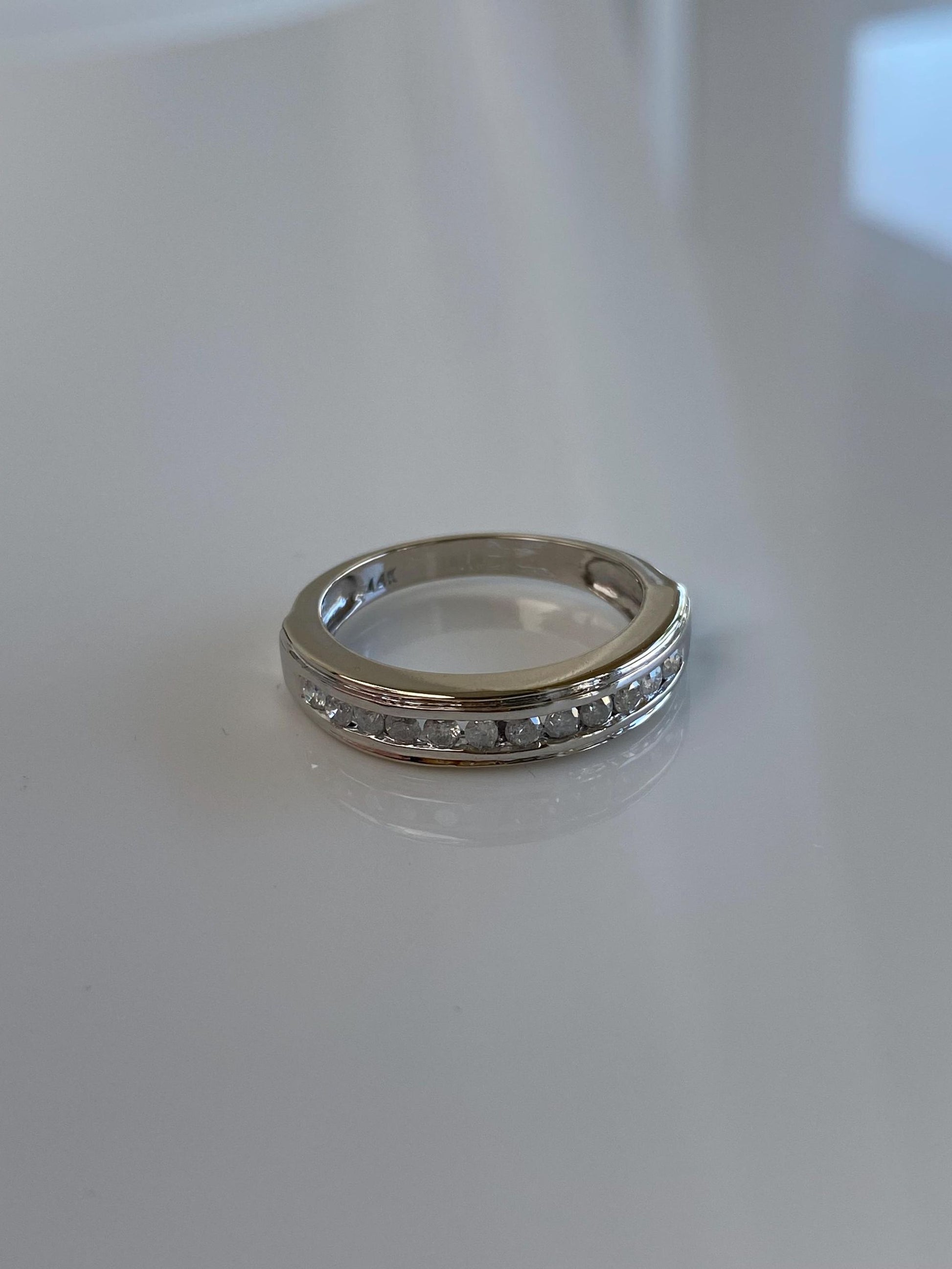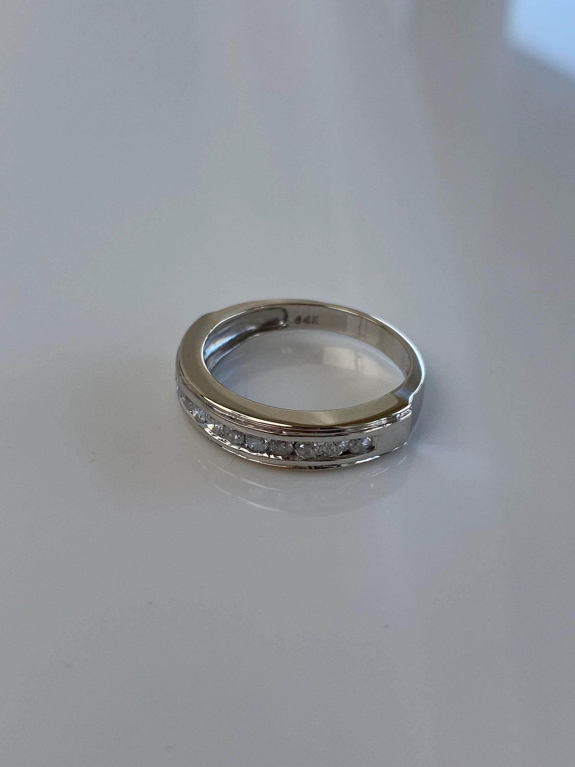 Vintage Solid 14k White Gold Diamond Ring Band - Size 7