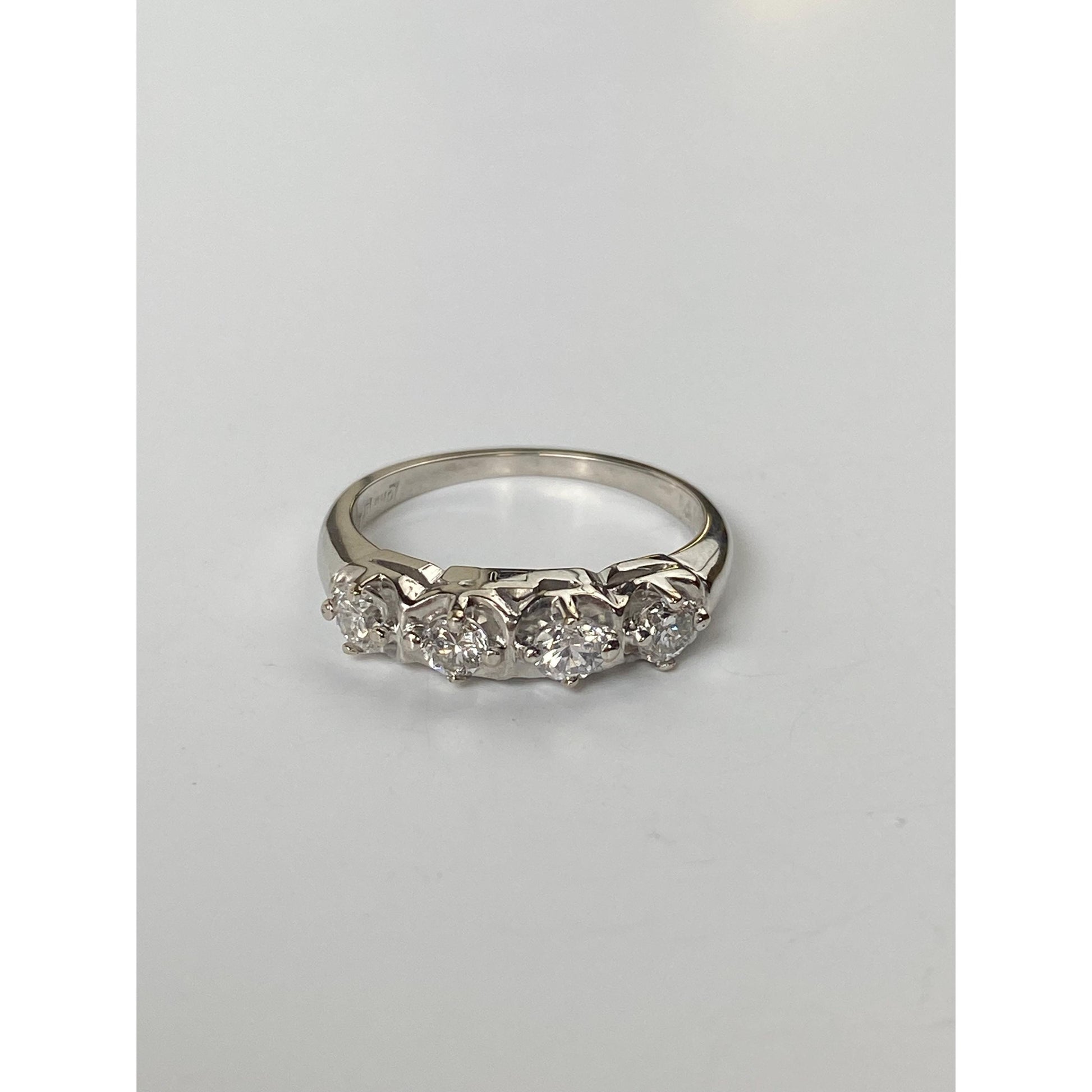 Vintage Solid 14k White Gold Diamond Row Ring Band - Size 4.75