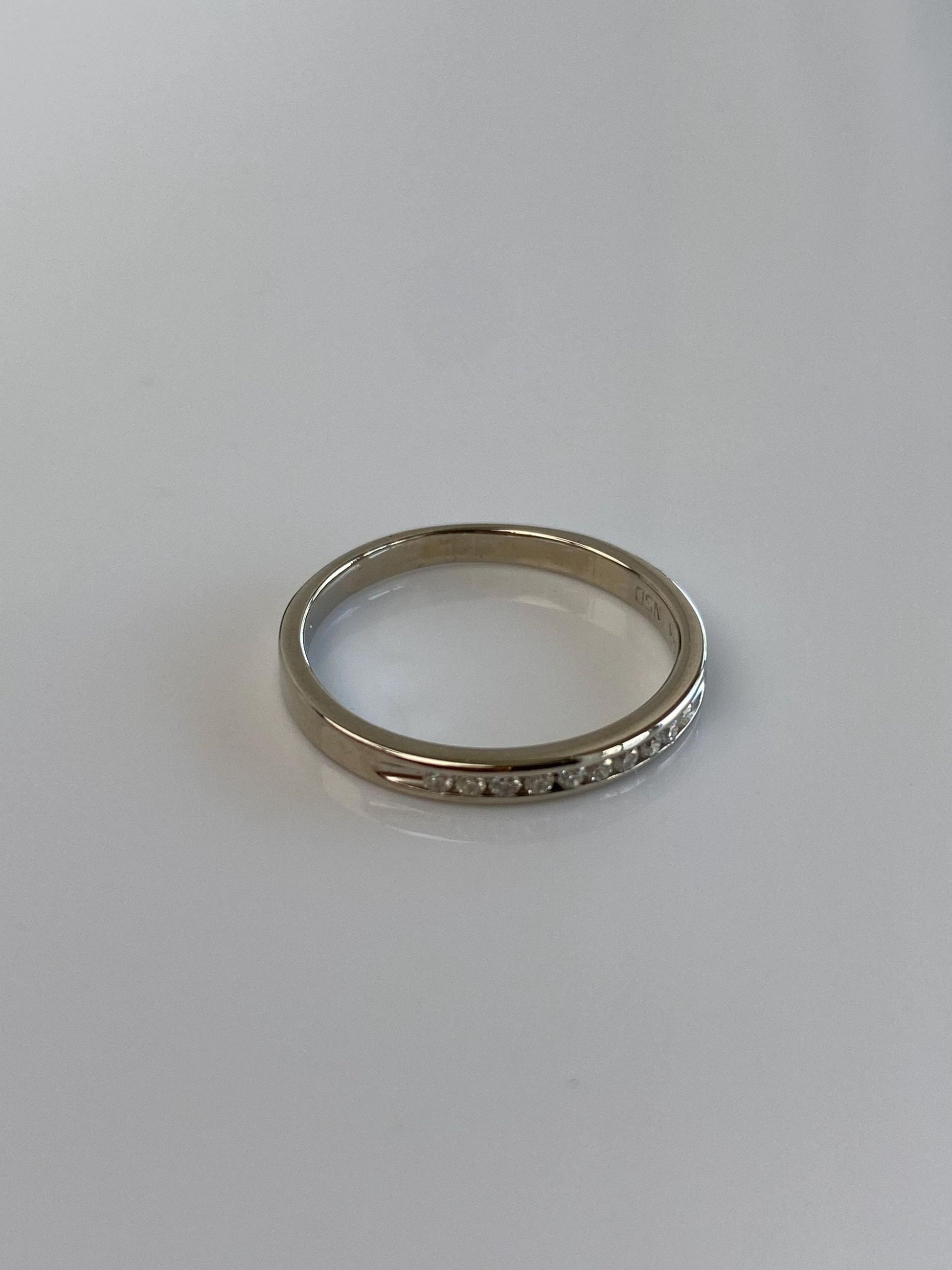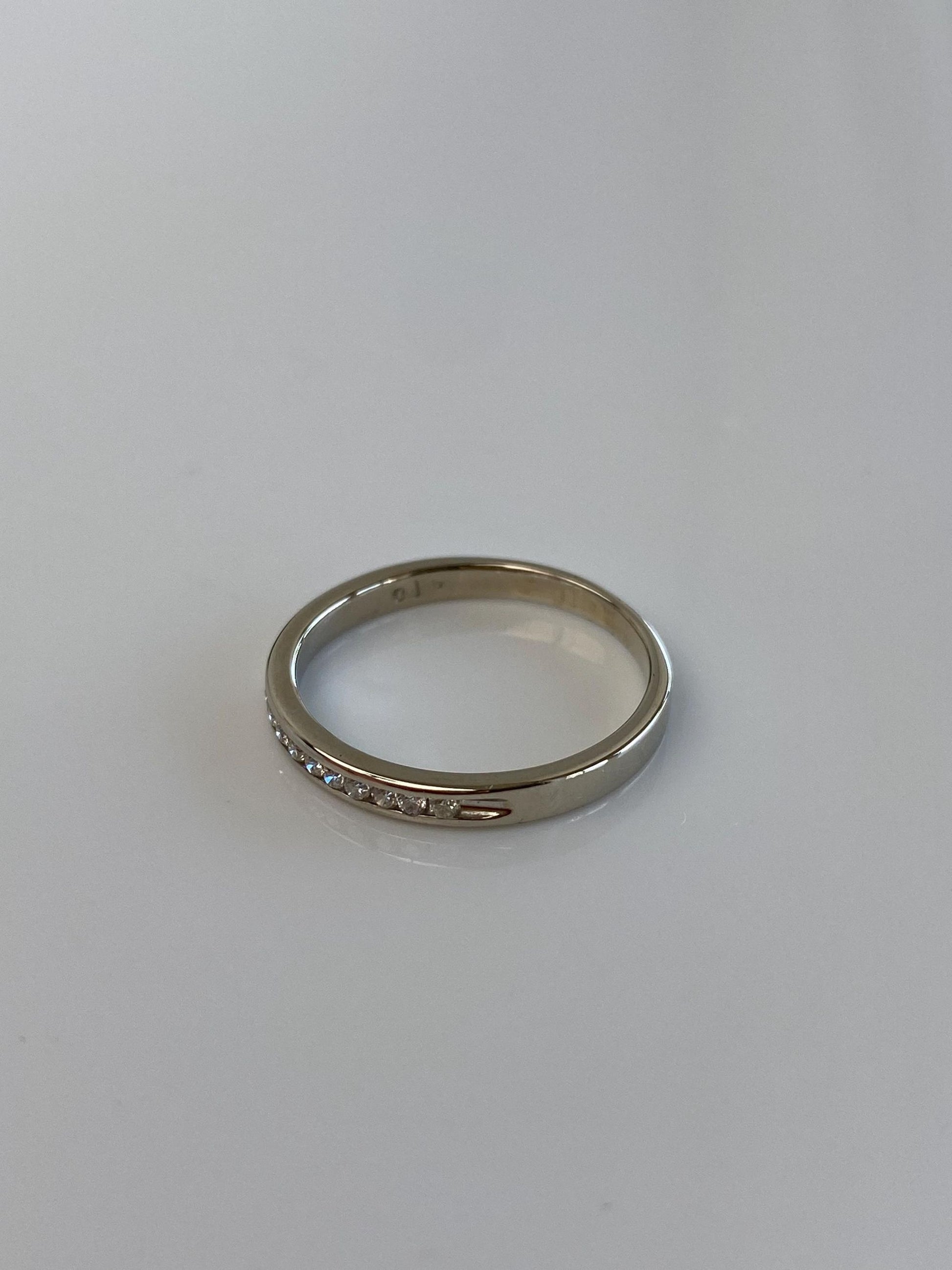 Vintage Solid 14k White Gold Diamond Slim Ring Band - Size 5.75