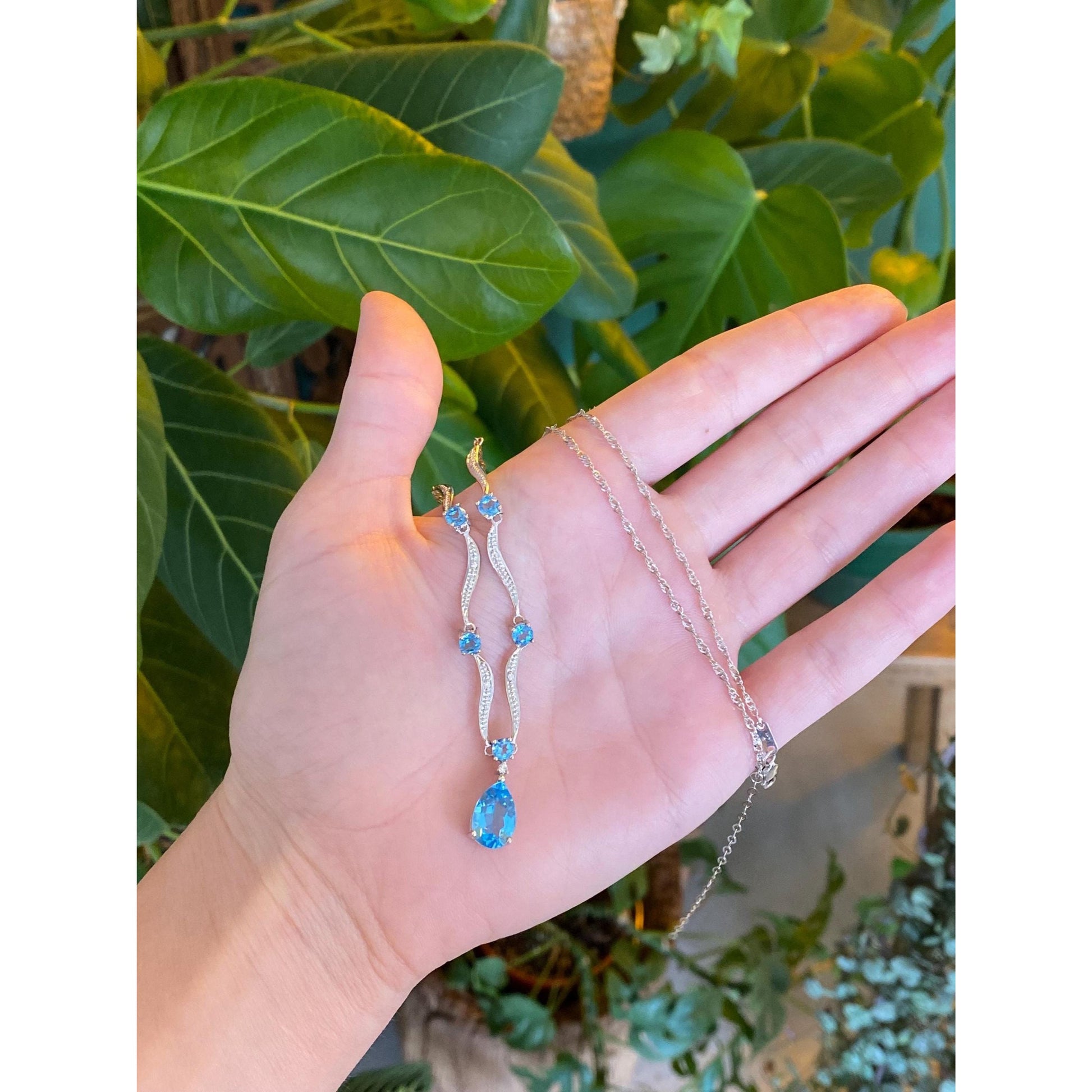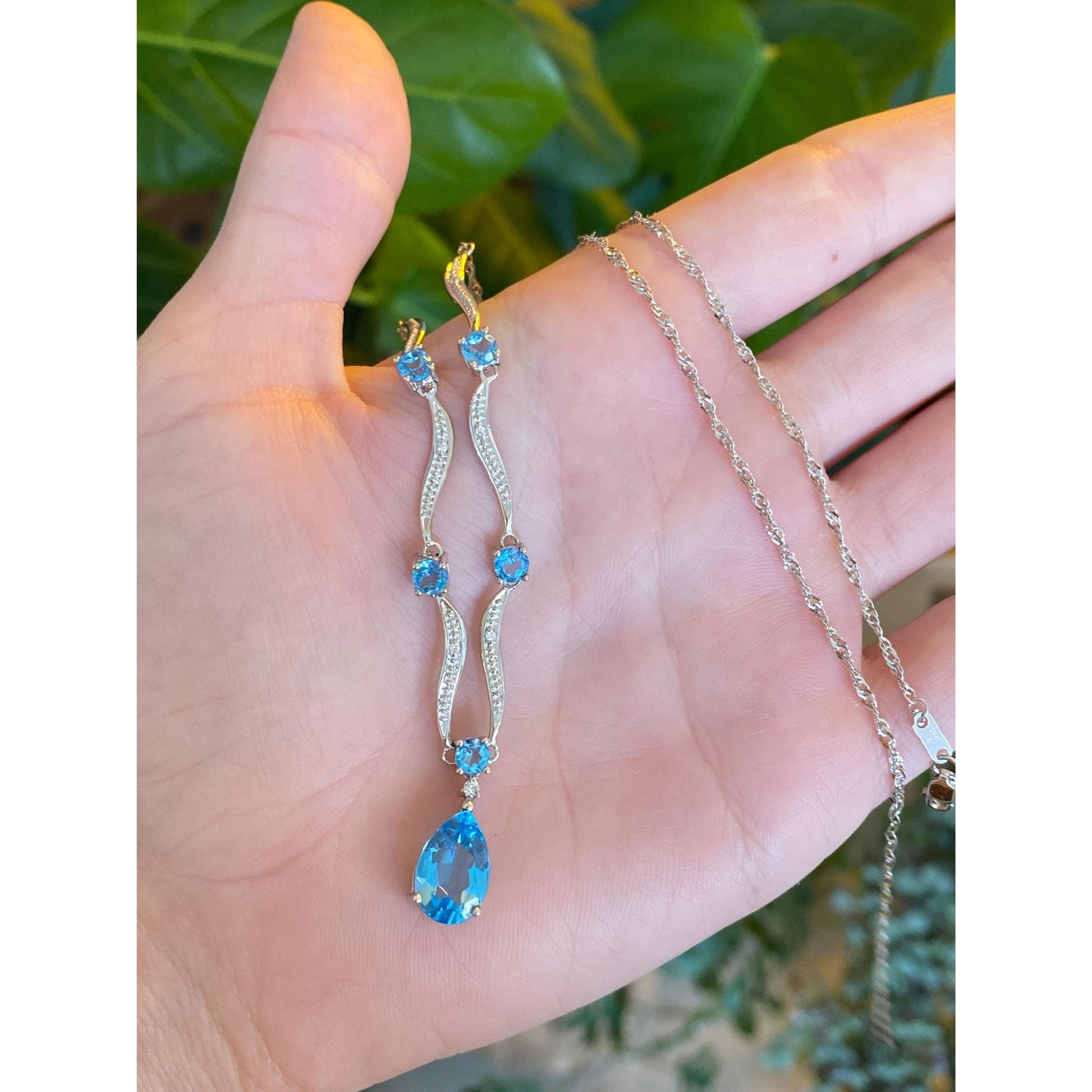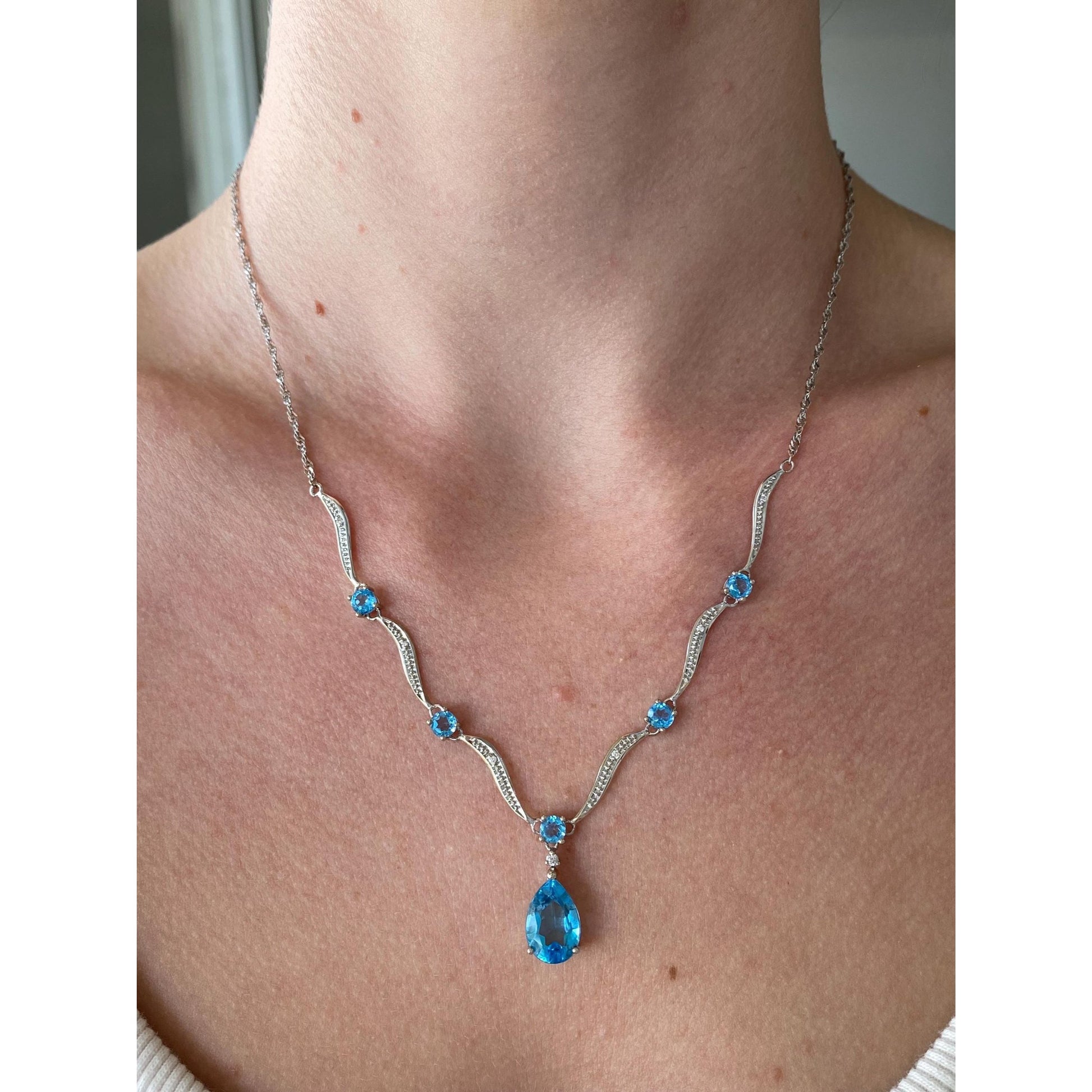 Vintage Solid 14k White Gold Diamond Topaz Twist Chain Necklace - 16.75 inches