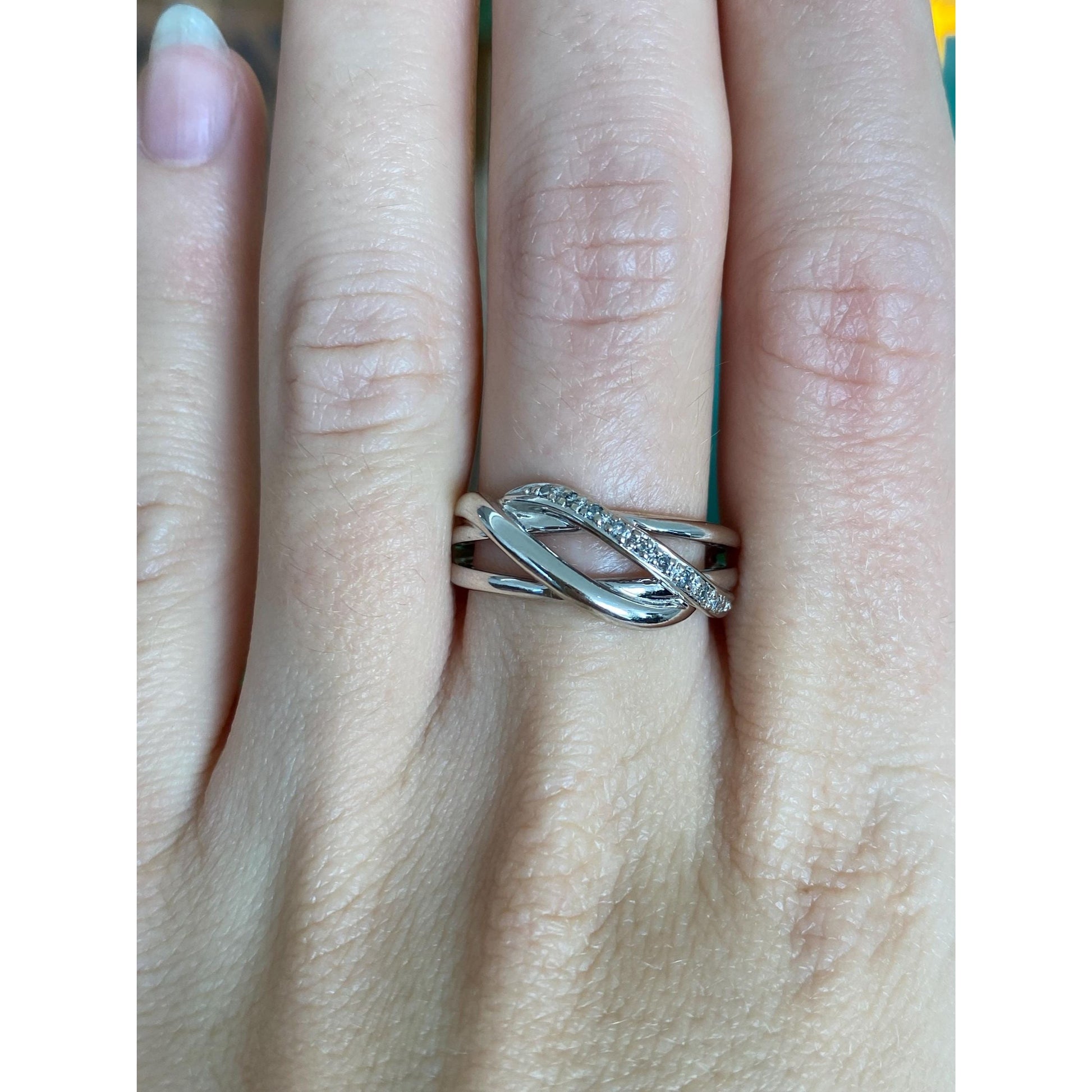 Vintage Solid 14k White Gold Diamond Twist Ring Band - Size 8.75