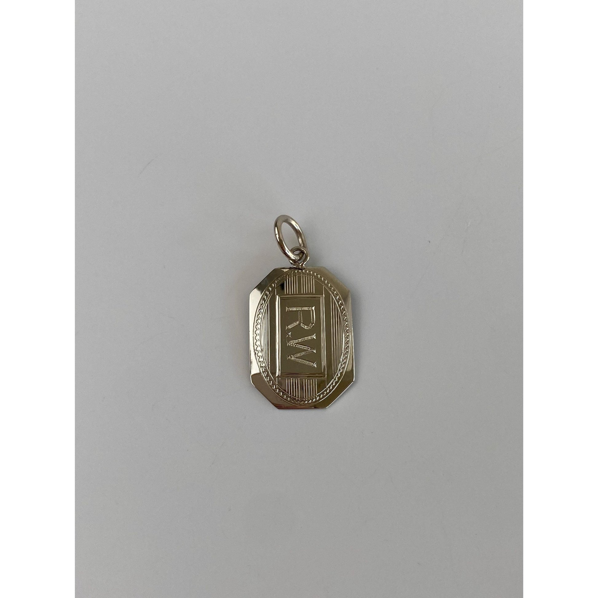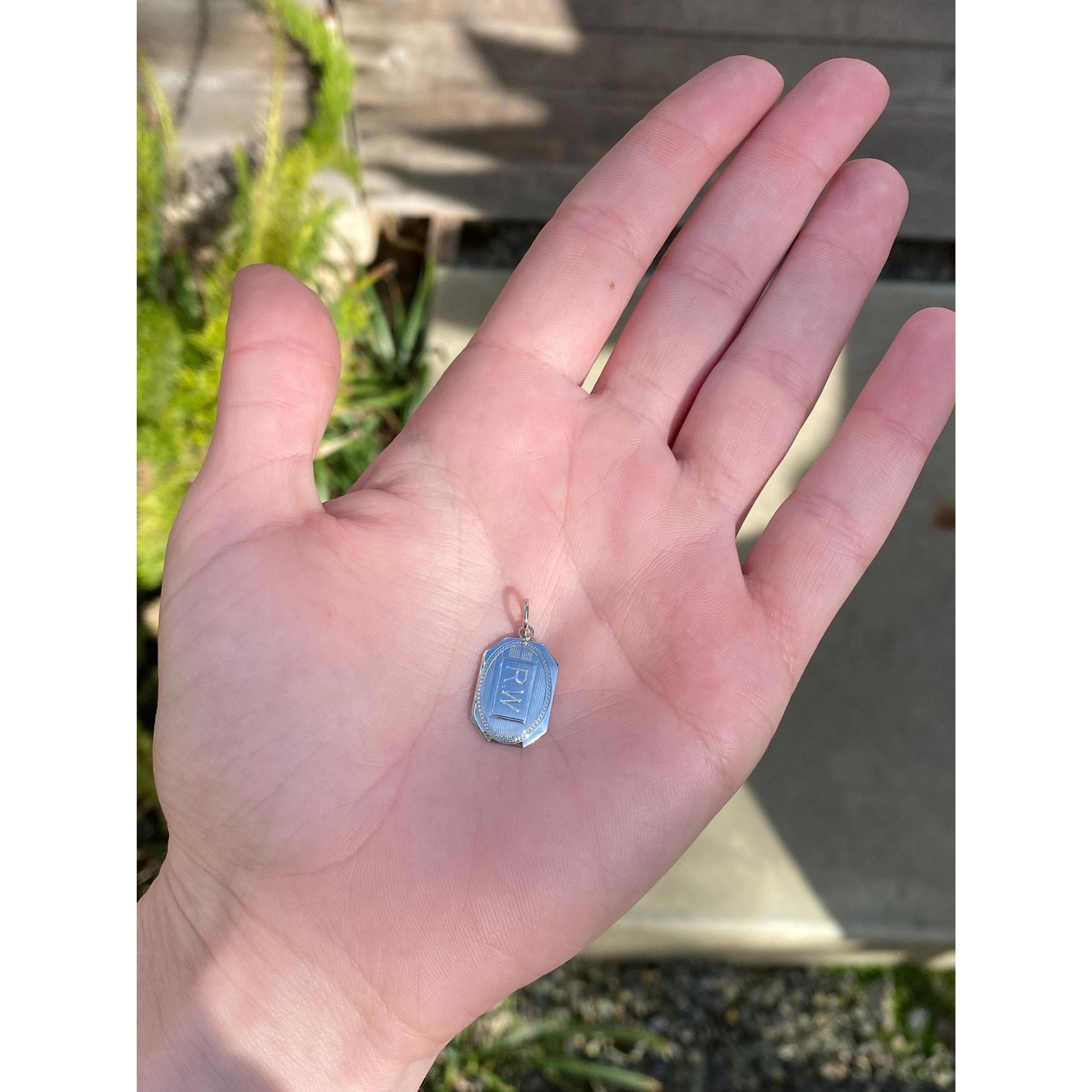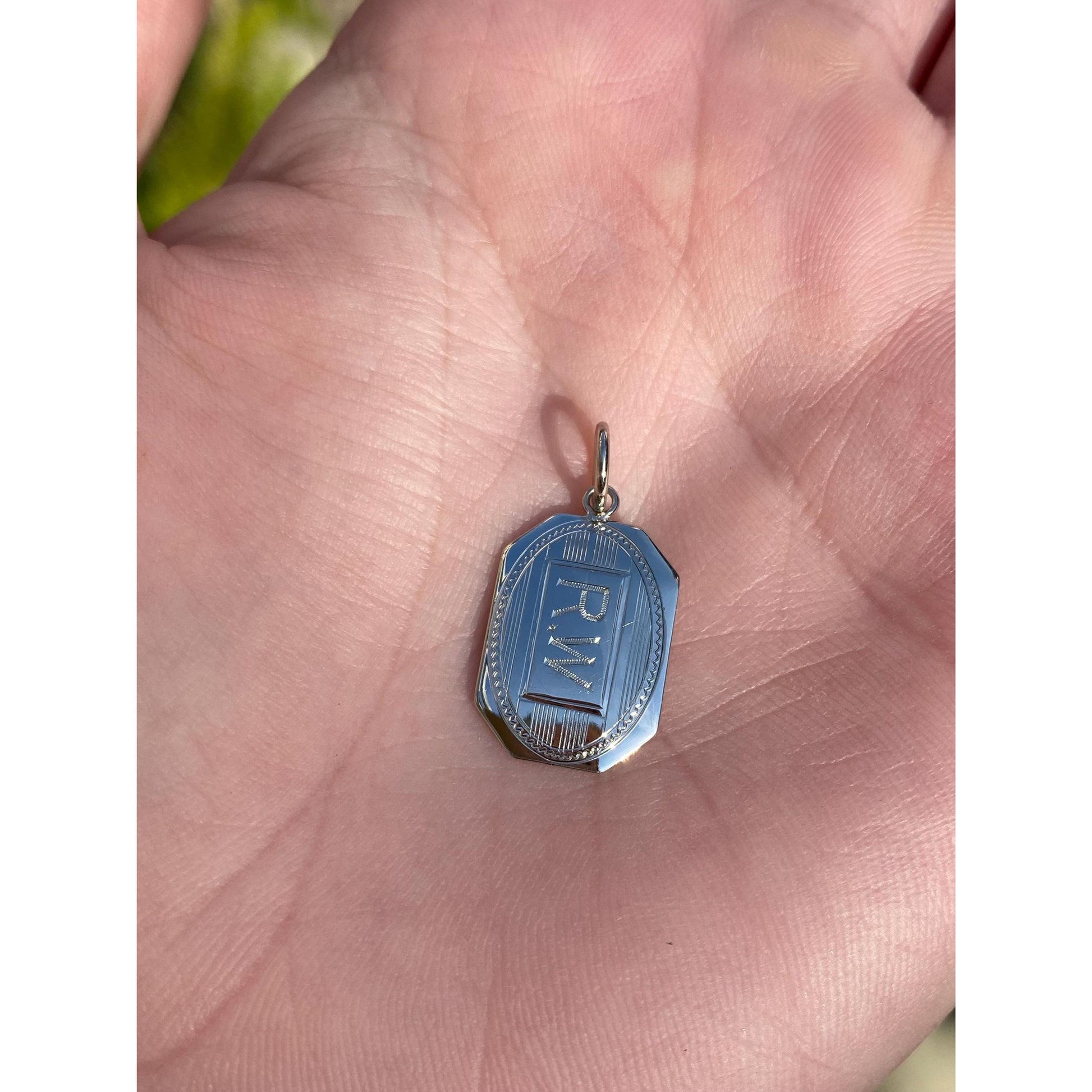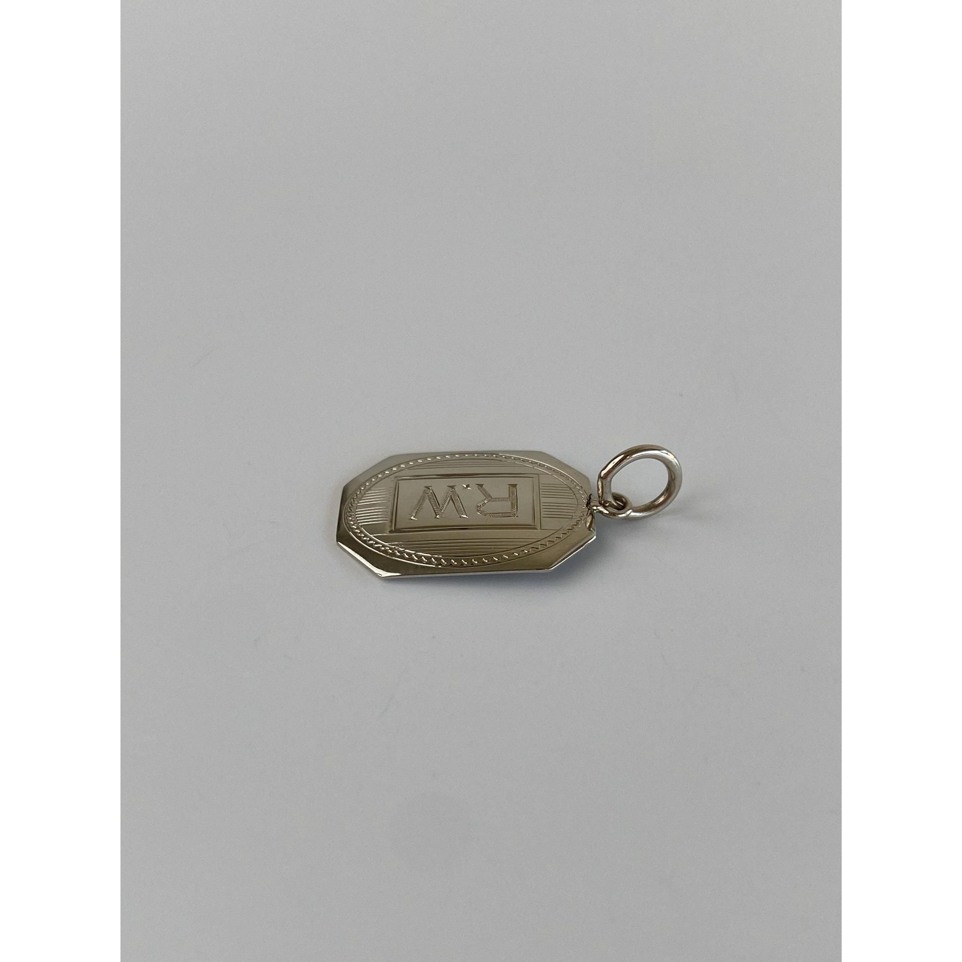 Vintage Solid 14k White Gold Engraved RW Cufflink Conversion Charm
