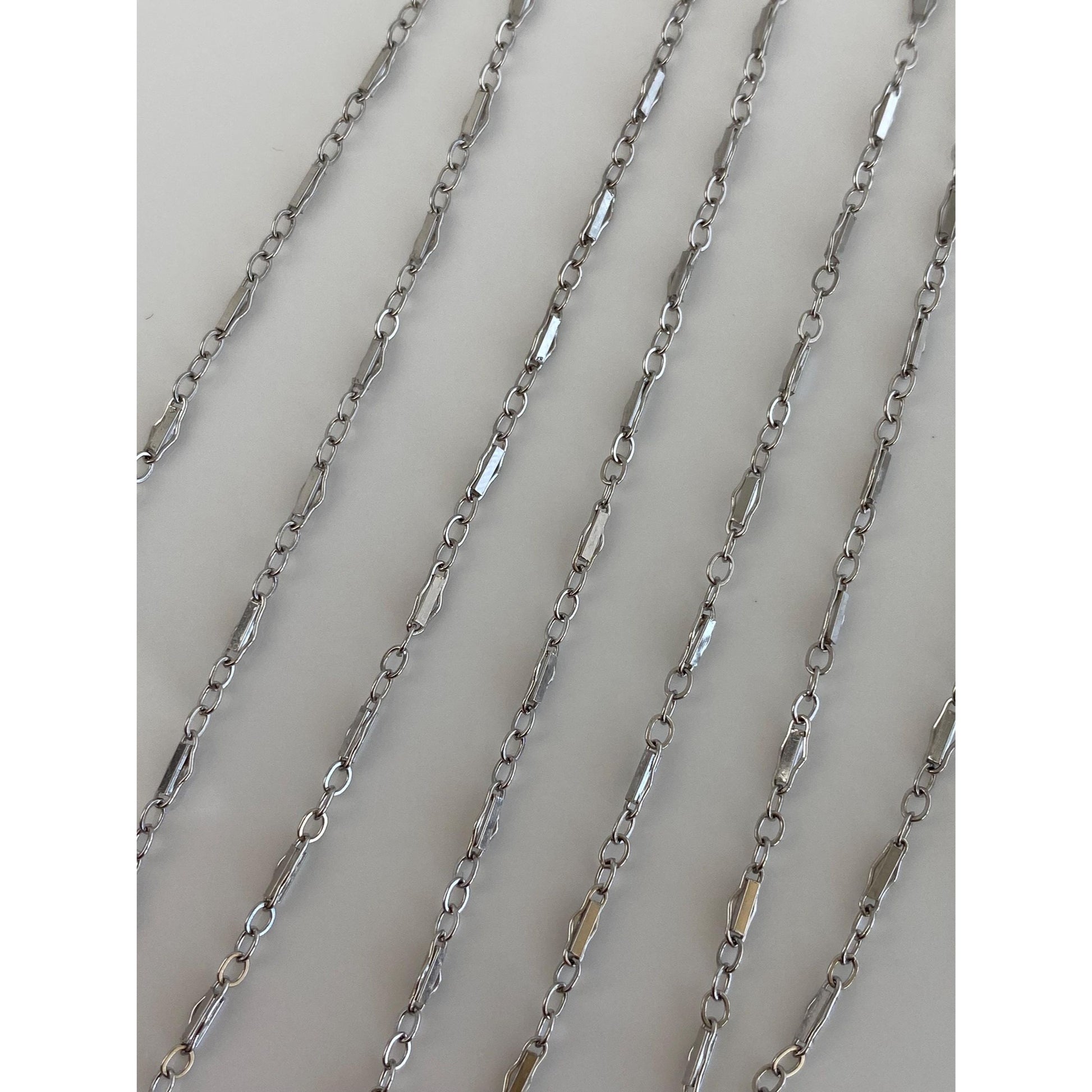 Vintage Solid 14k White Gold Fancy Link Chain Necklace - 28 inches
