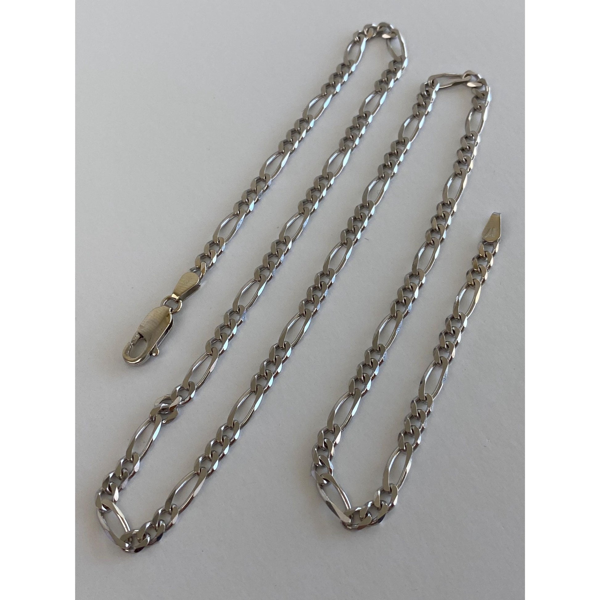 Vintage Solid 14k White Gold Figaro Chain Necklace - 18 inches