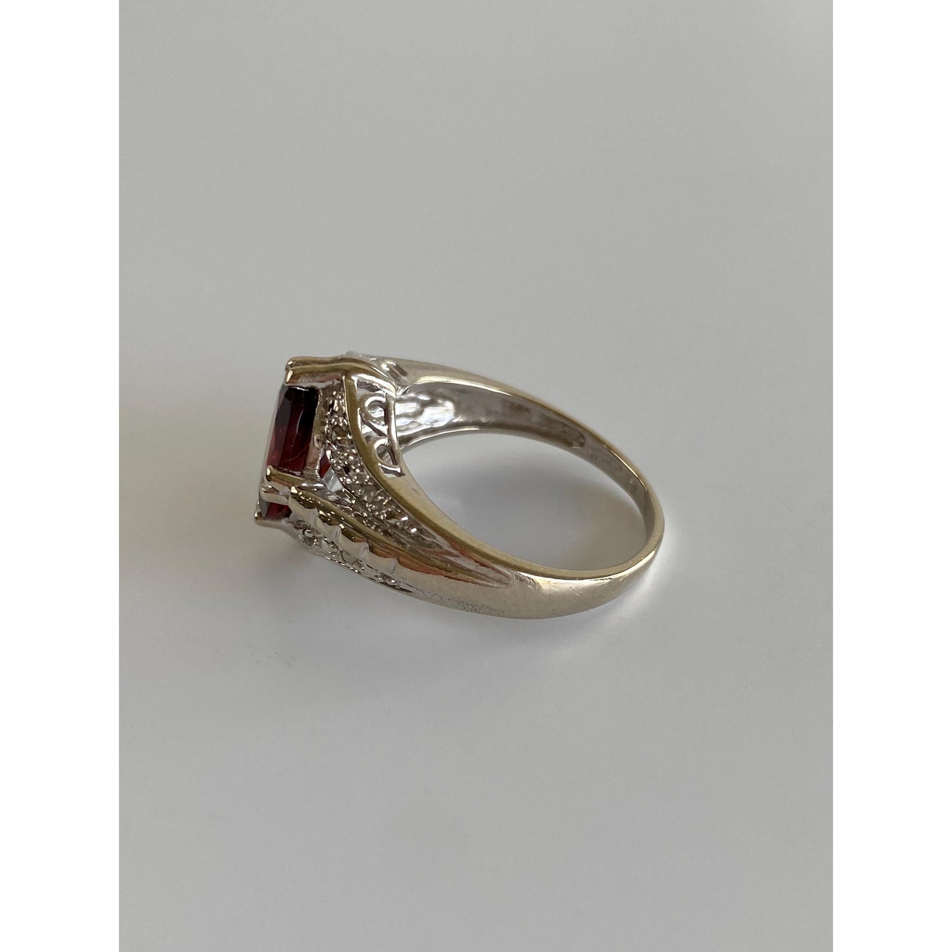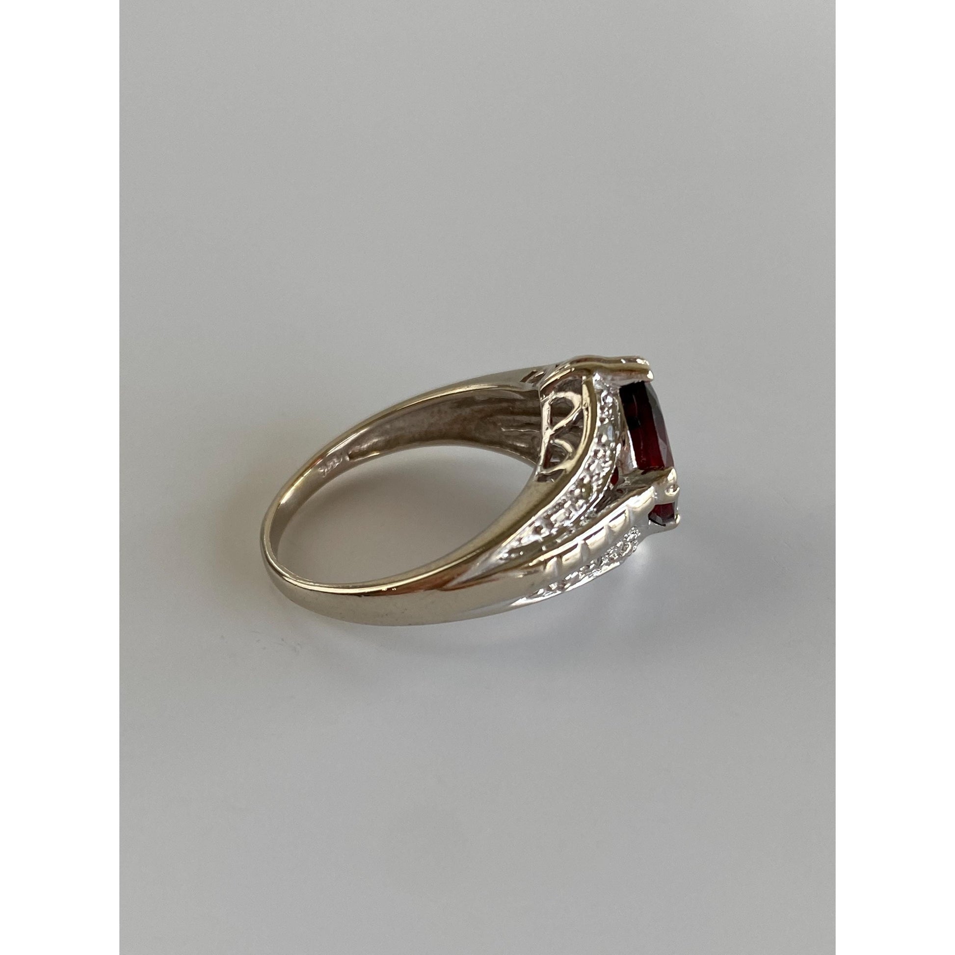 Vintage Solid 14k White Gold Garnet Diamond Ring - Size 6.75