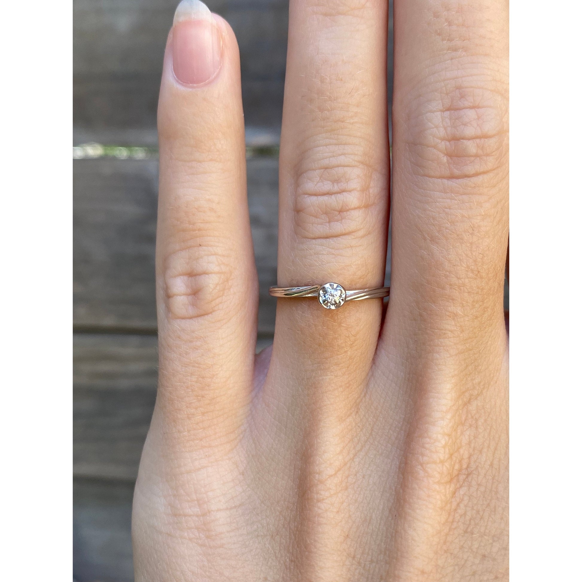 Vintage Solid 14k White Gold Itty Bitty Diamond Ring - Size 5.5