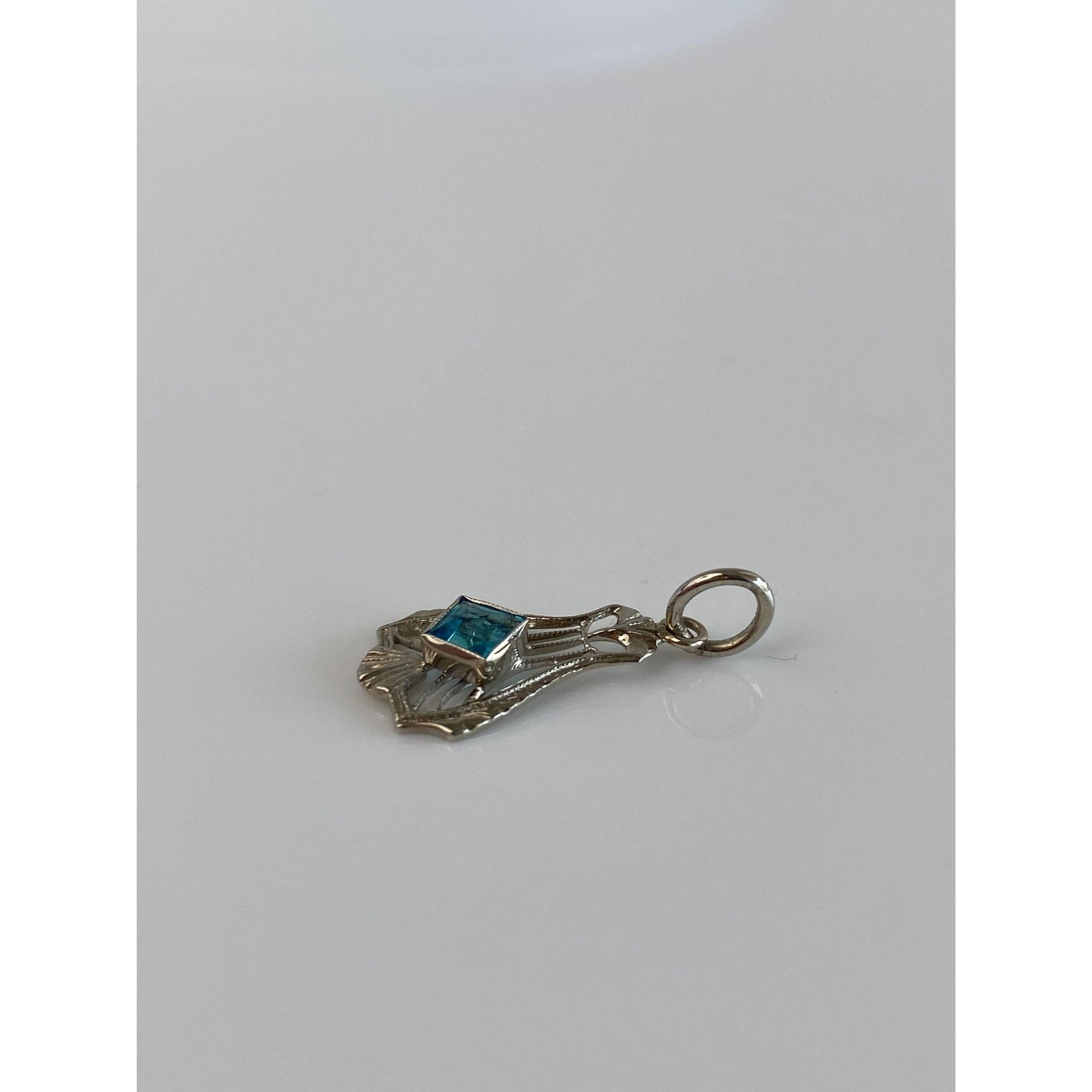 Vintage Solid 14k White Gold Light Blue Cubic Zirconia Charm