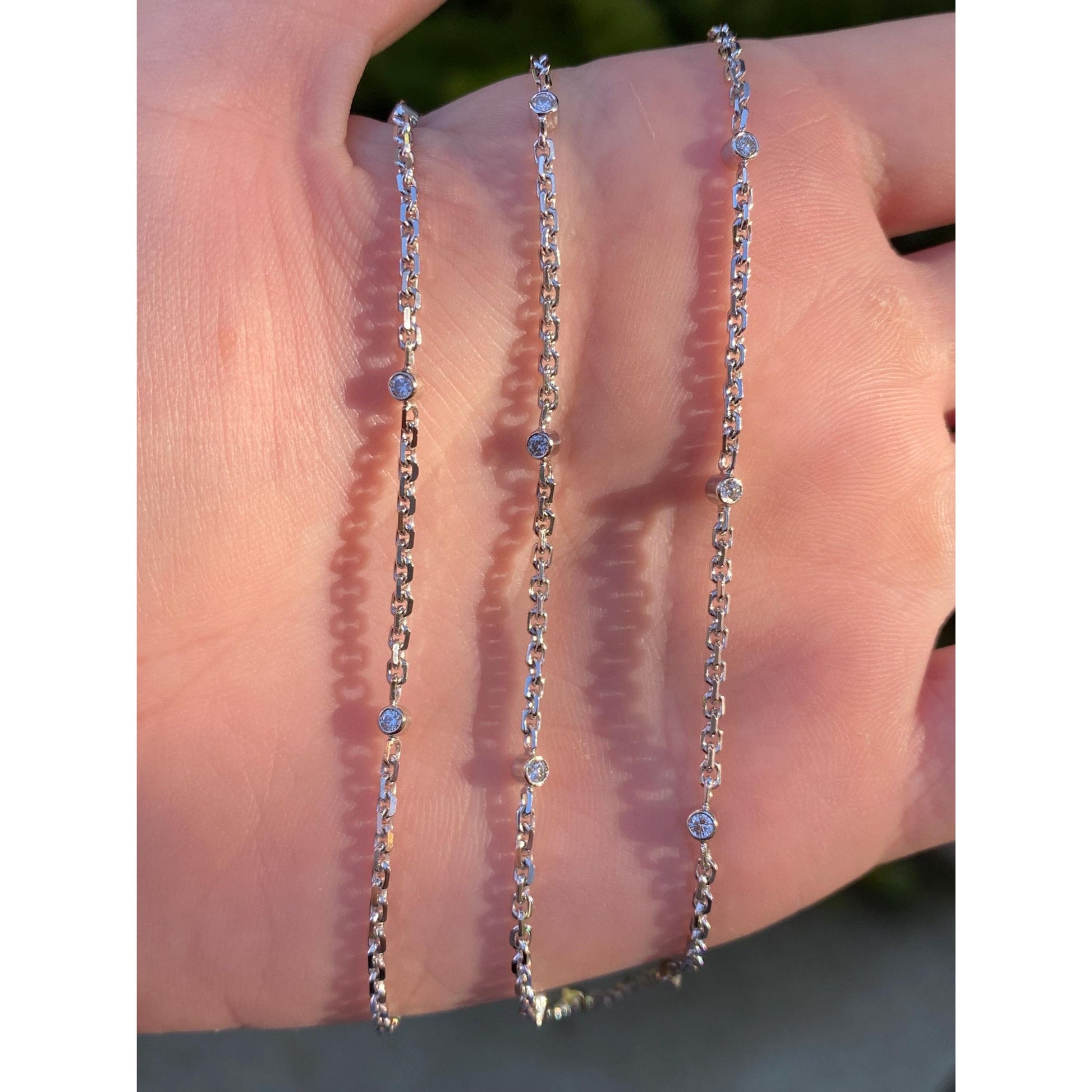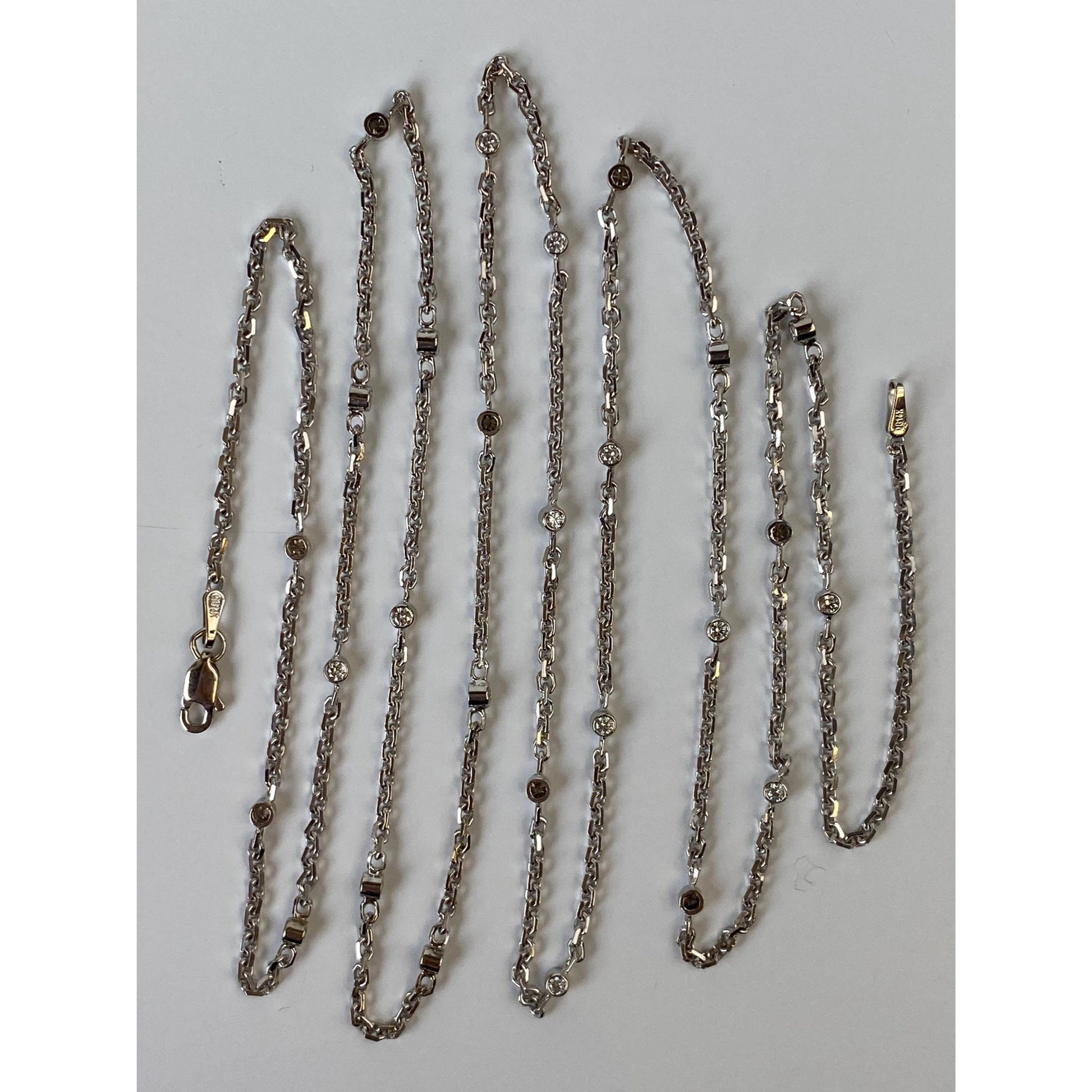 Vintage Solid 14k White Gold Long Diamond Biker Link Chain Necklace - 34.75 inches