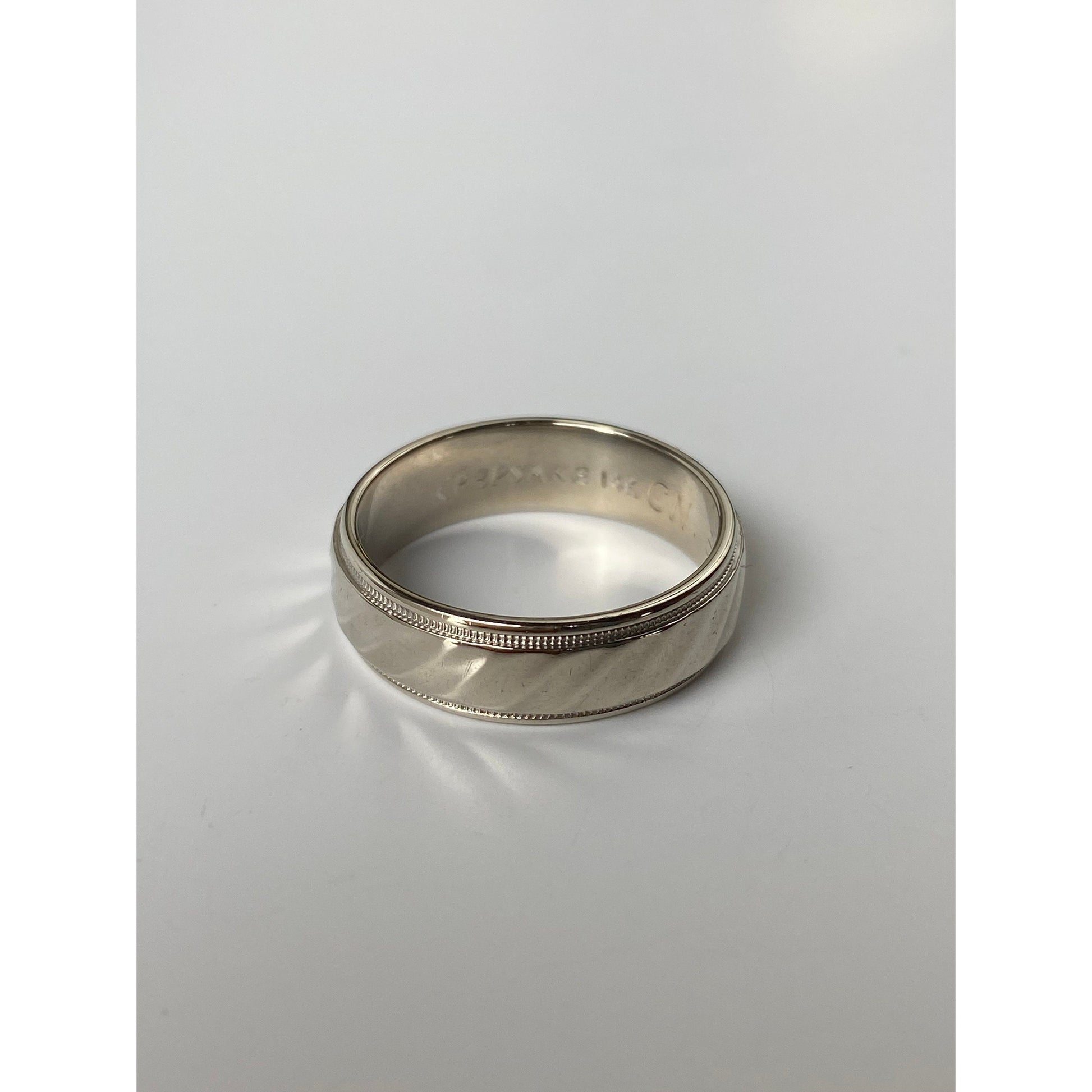 Vintage Solid 14k White Gold Milgrain Pattern Ring Band - Size 7.5