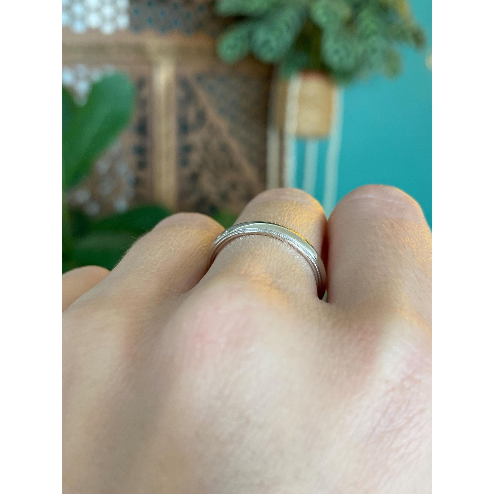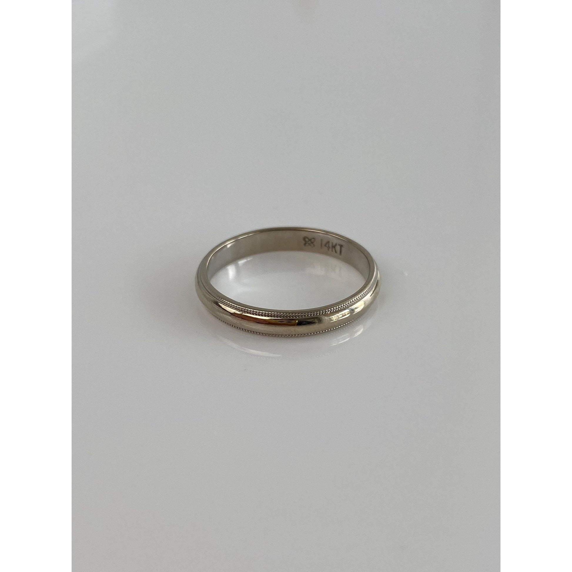 Vintage Solid 14k White Gold Milgrain Ring Band - Size 7.5