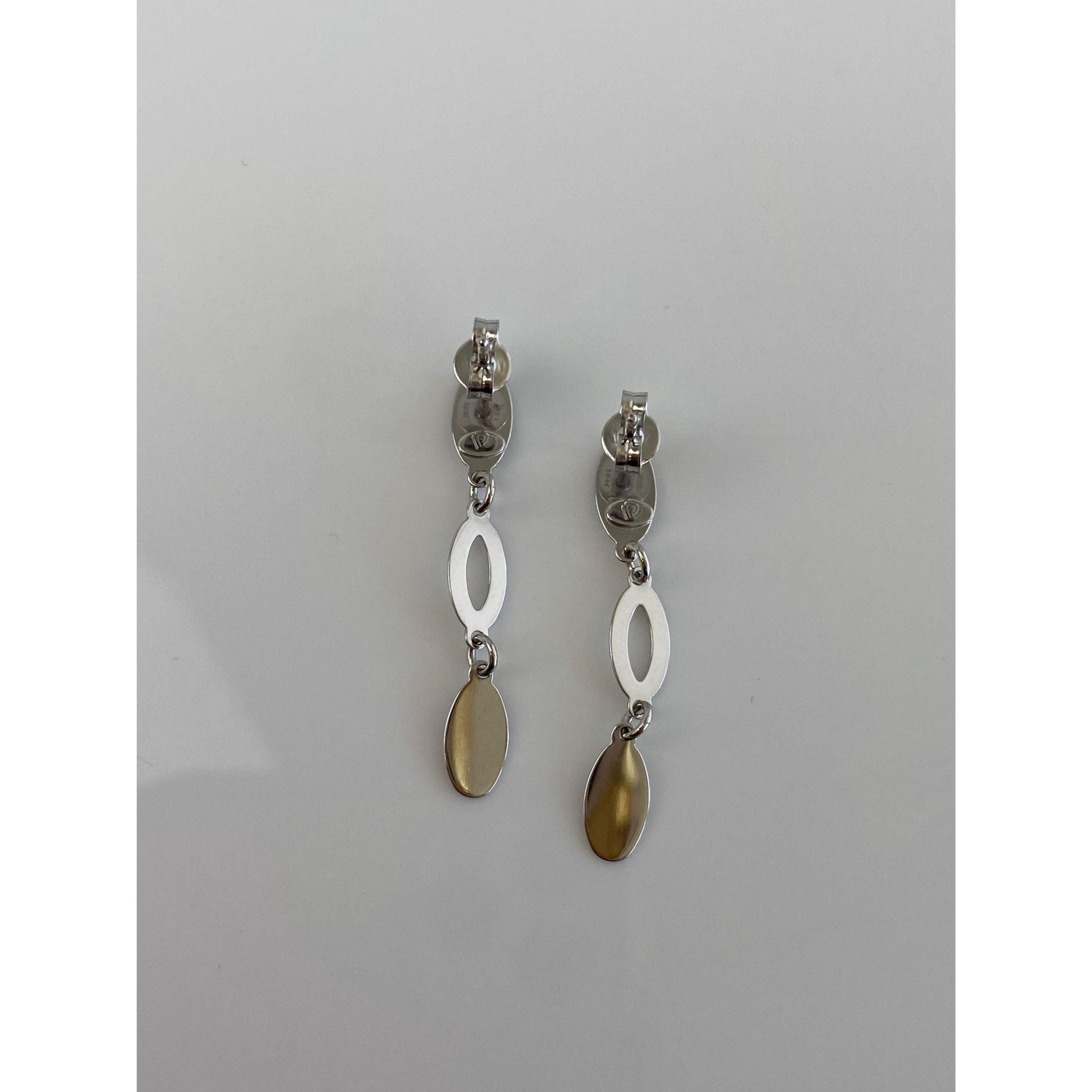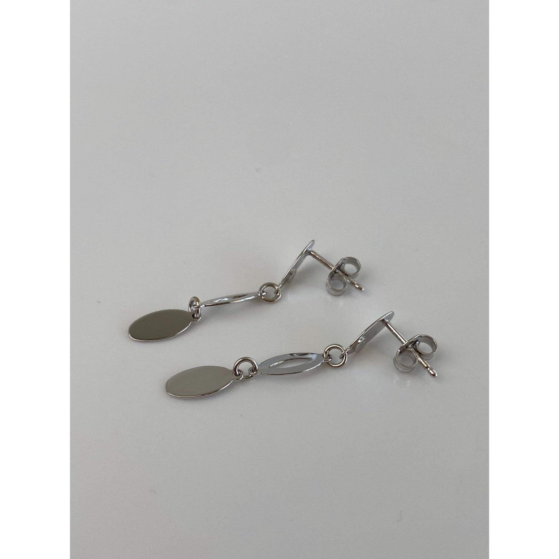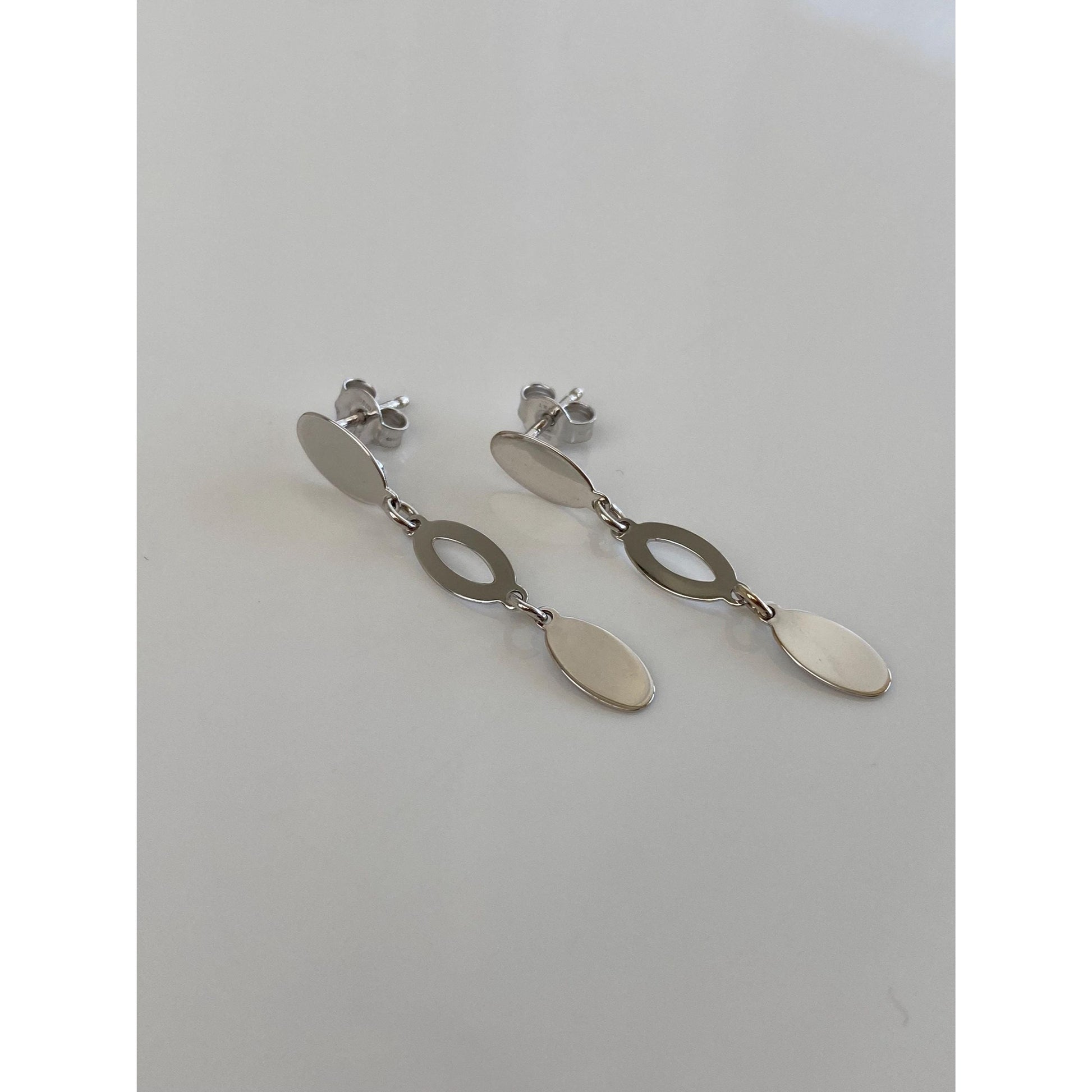 Vintage Solid 14k White Gold Oval Dangle Stud Earrings