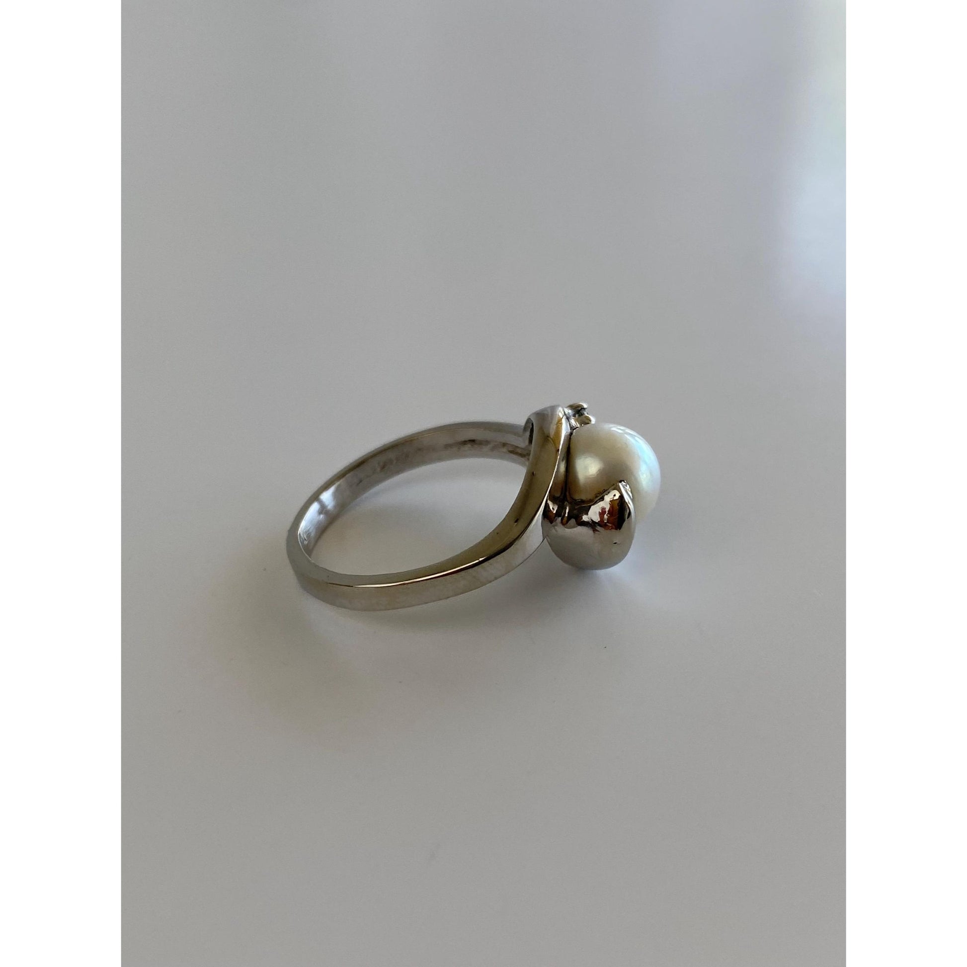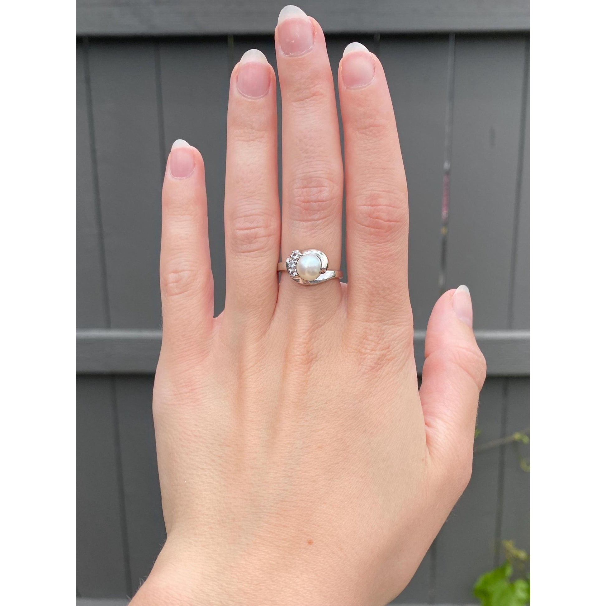 Vintage Solid 14k White Gold Pearl Clear Quartz Ring - Size 6