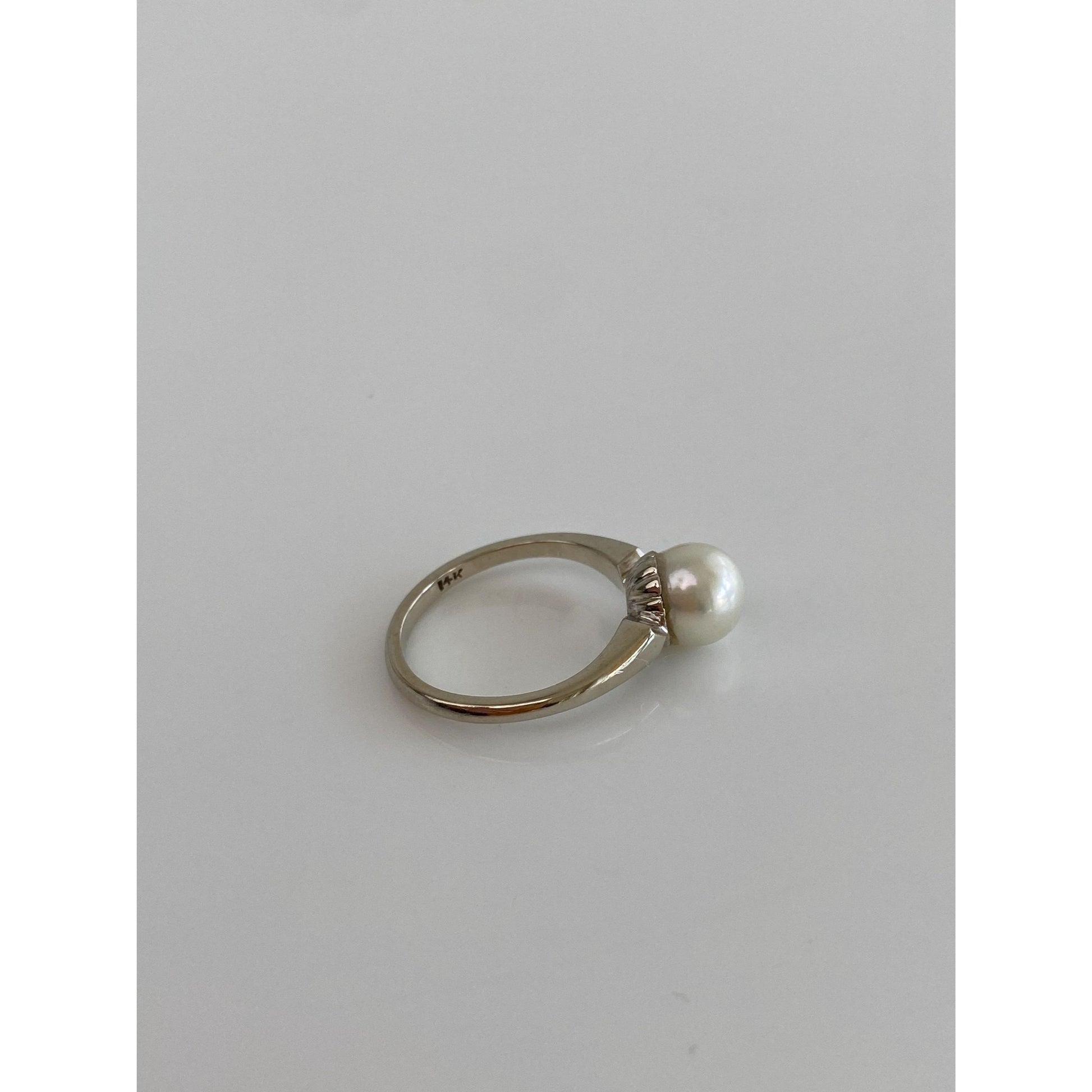 Vintage Solid 14k White Gold Pearl Ring - Size 4.75