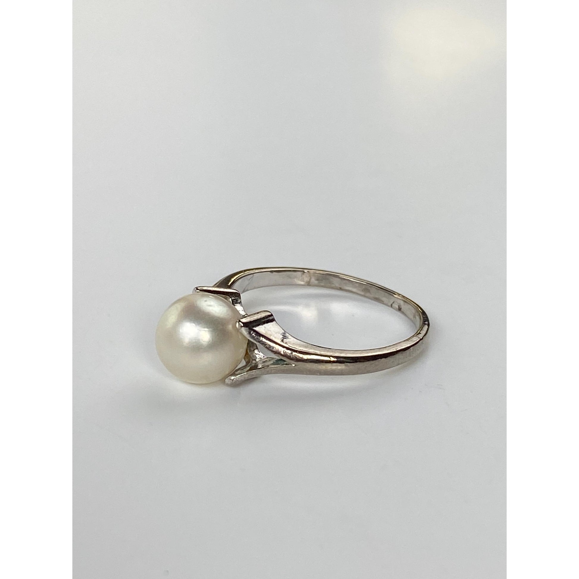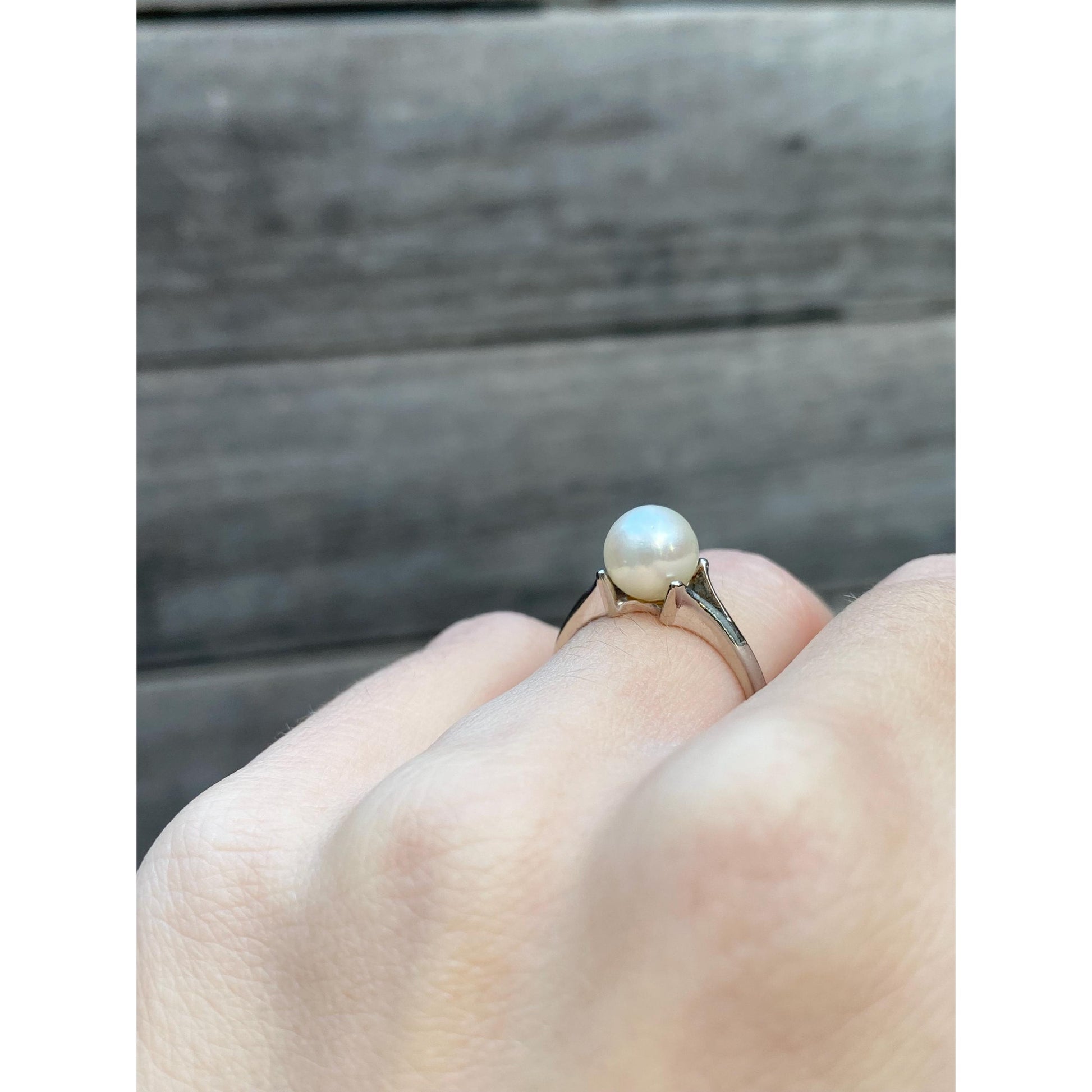 Vintage Solid 14k White Gold Pearl Ring - Size 5.25