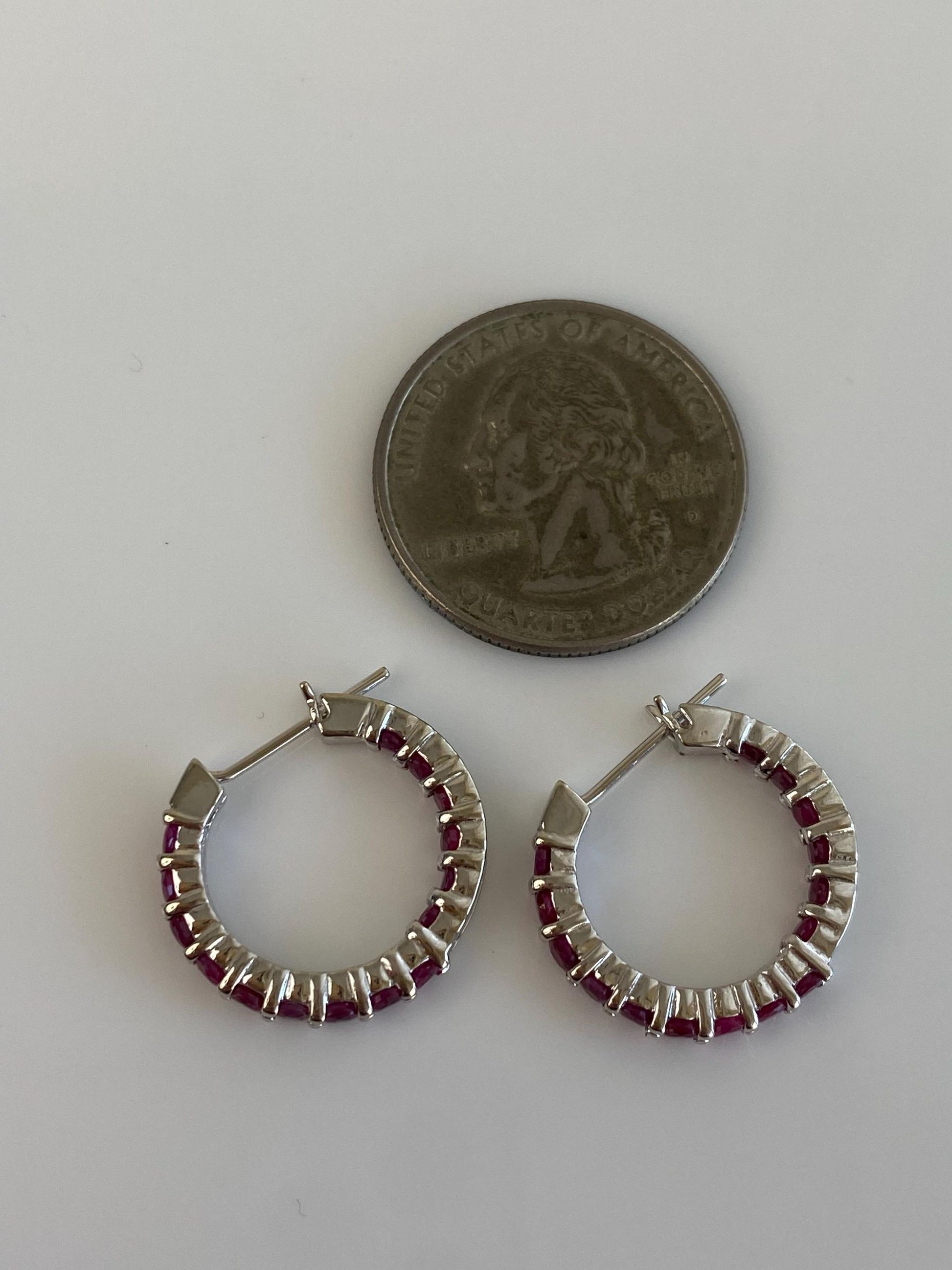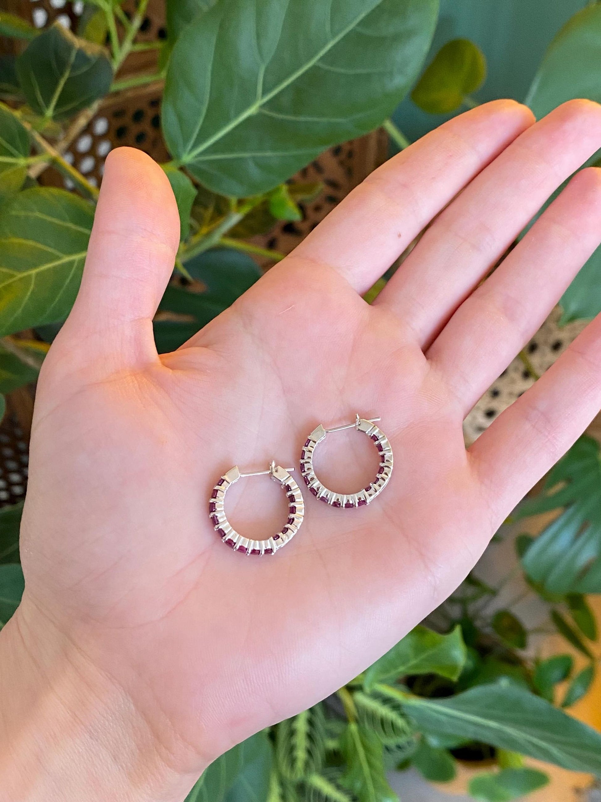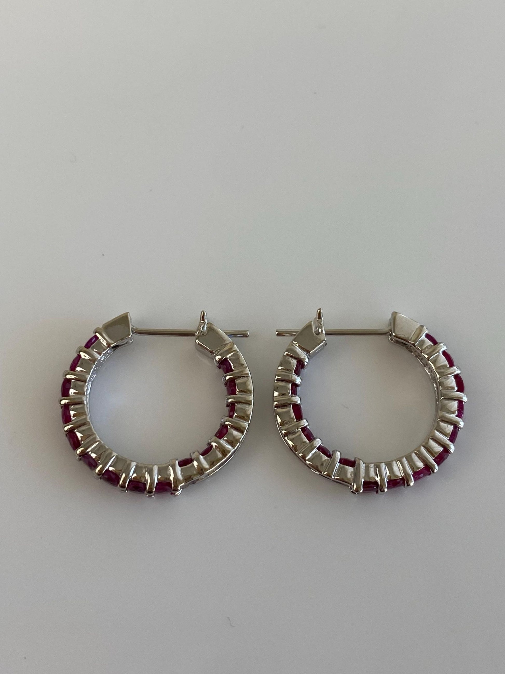 Vintage Solid 14k White Gold Pink Sapphire Hoop Earrings